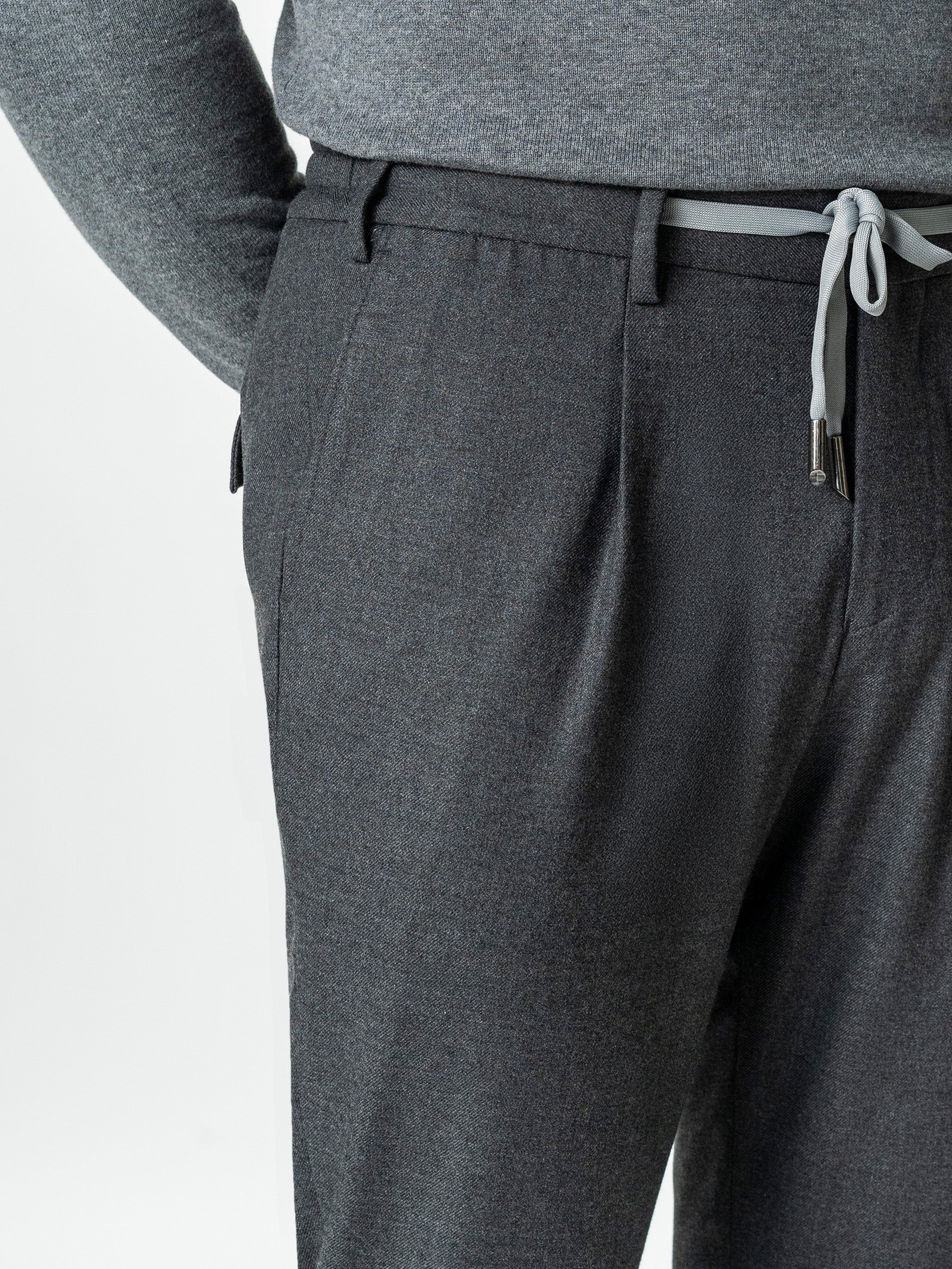 Croiala Comfort Fit se aseaza natural pe picior, iar talia cu snur reglabil ofera un balans perfect intre stil si relaxare. Pot fi purtati atat cu pantofi sport pentru un look casual rafinat, cat si cu incaltaminte eleganta pentru o interpretare smart leisure.