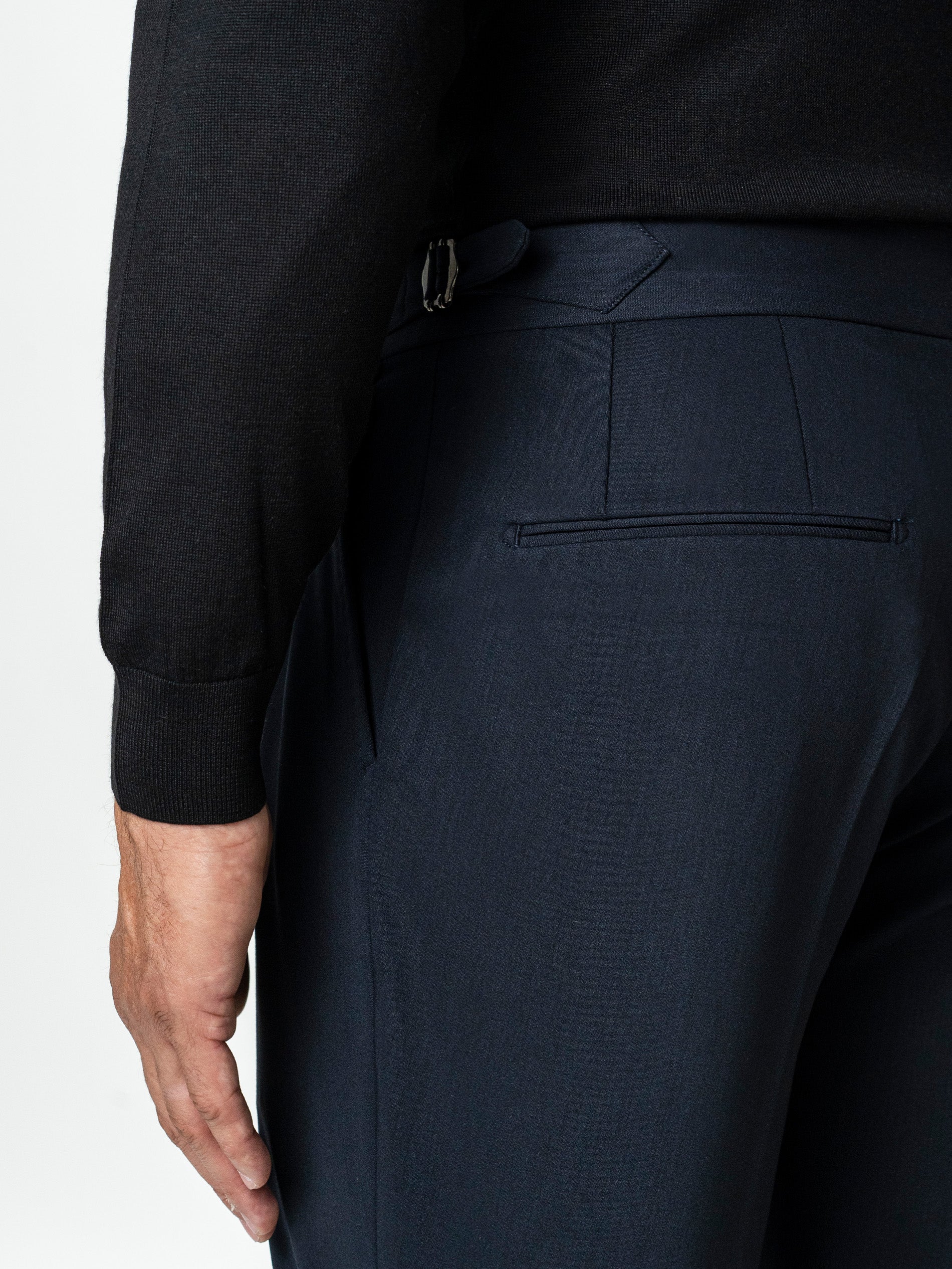 Pantaloni Barbati Albastru Bleumarin Model De Toamna Gurkha, sunt confectionati dintr-o stofa cu textura mai densa, usor elastica, perfecta pentru zilele racoroase de toamna. De asemenea, pantalonii sunt deosebit de versatili, putand fi asortati tinutelor elegante cat si cele smart casual. Constructia este pentru purtare cu dunga dreapta, avand o linie centrala, eleganta, inspirand atentie la detalii. Modalitatea de inchidere este foarte practica dar si eleganta datorita accesorizarii ce nu mai necesita o curea clasica.