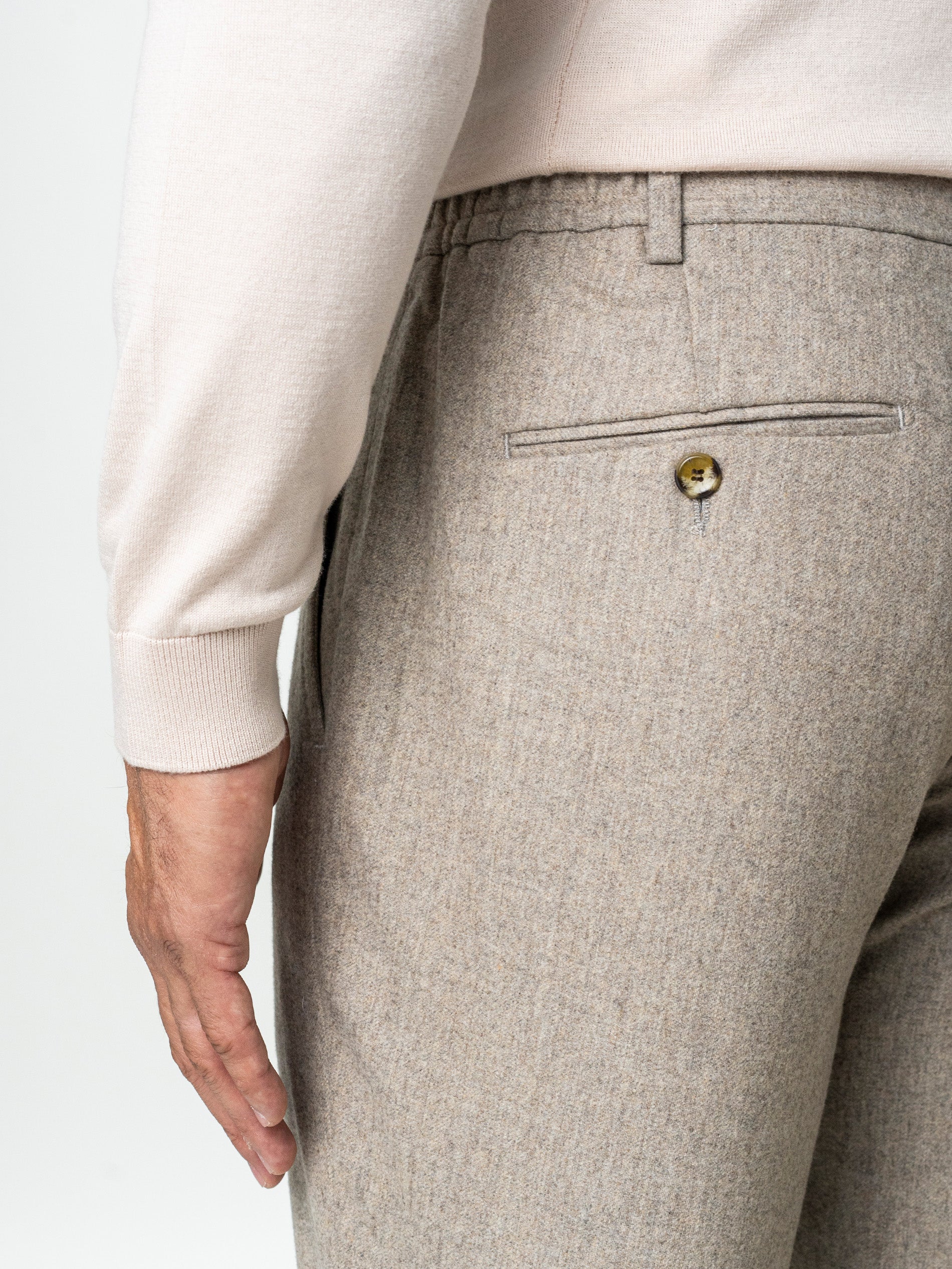 Pantalonii Barbati Cappuccino Din Lana Cu Snur Office BMan0015 sunt conceputi pentru barbatul care apreciaza eleganta functionala. Realizati dintr-un material plin, potrivit pentru sezonul de toamna, imbina aspectul rafinat al unui pantalon clasic cu versatilitatea unui jogger modern.