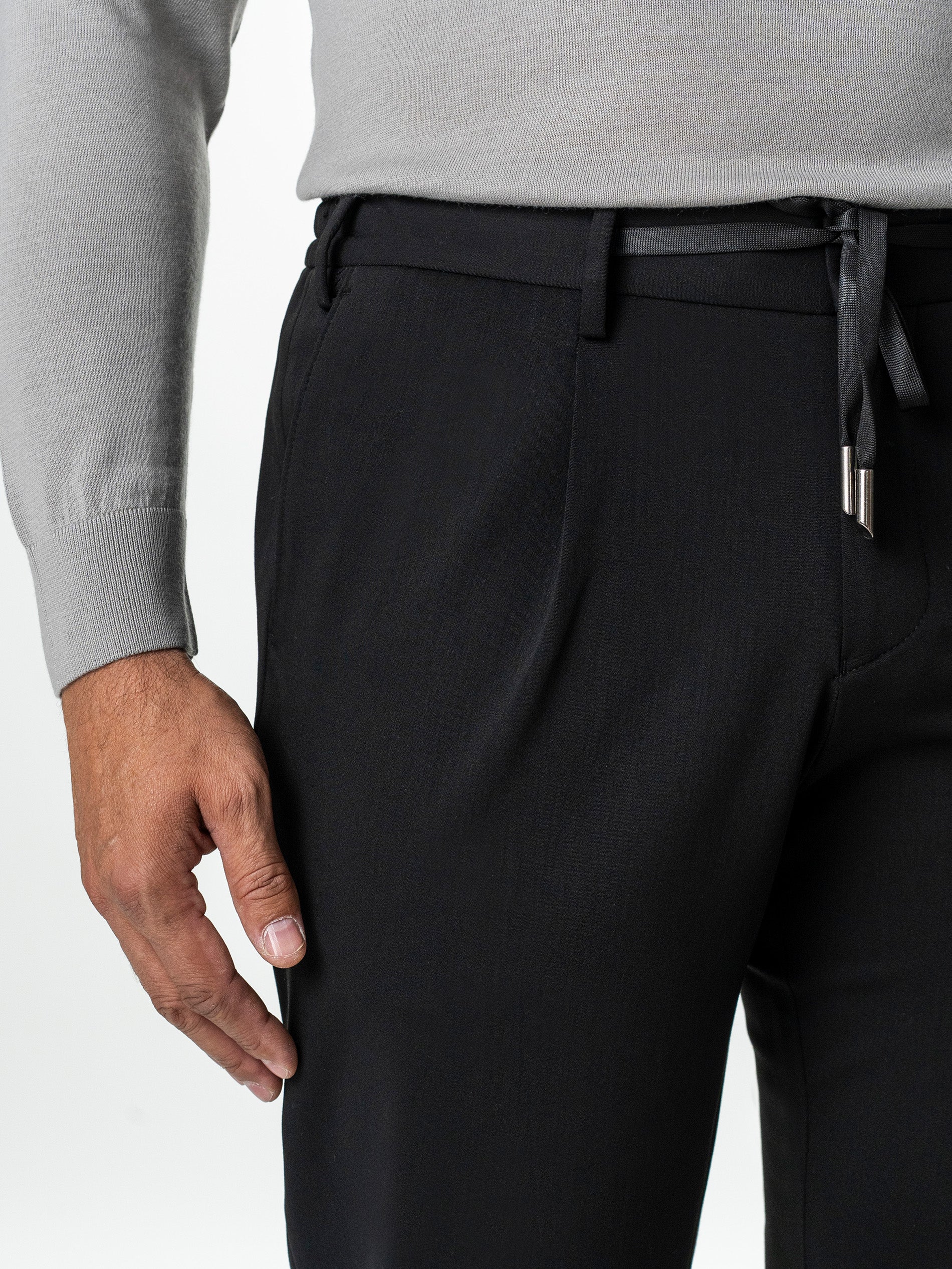 Pantaloni Barbati Casual Negri Din Lana BMan0101 sunt conceputi pentru barbatul care apreciaza eleganta functionala. Realizati dintr-un material plin, potrivit pentru sezonul de toamna, imbina aspectul rafinat al unui pantalon clasic cu versatilitatea unui jogger modern.