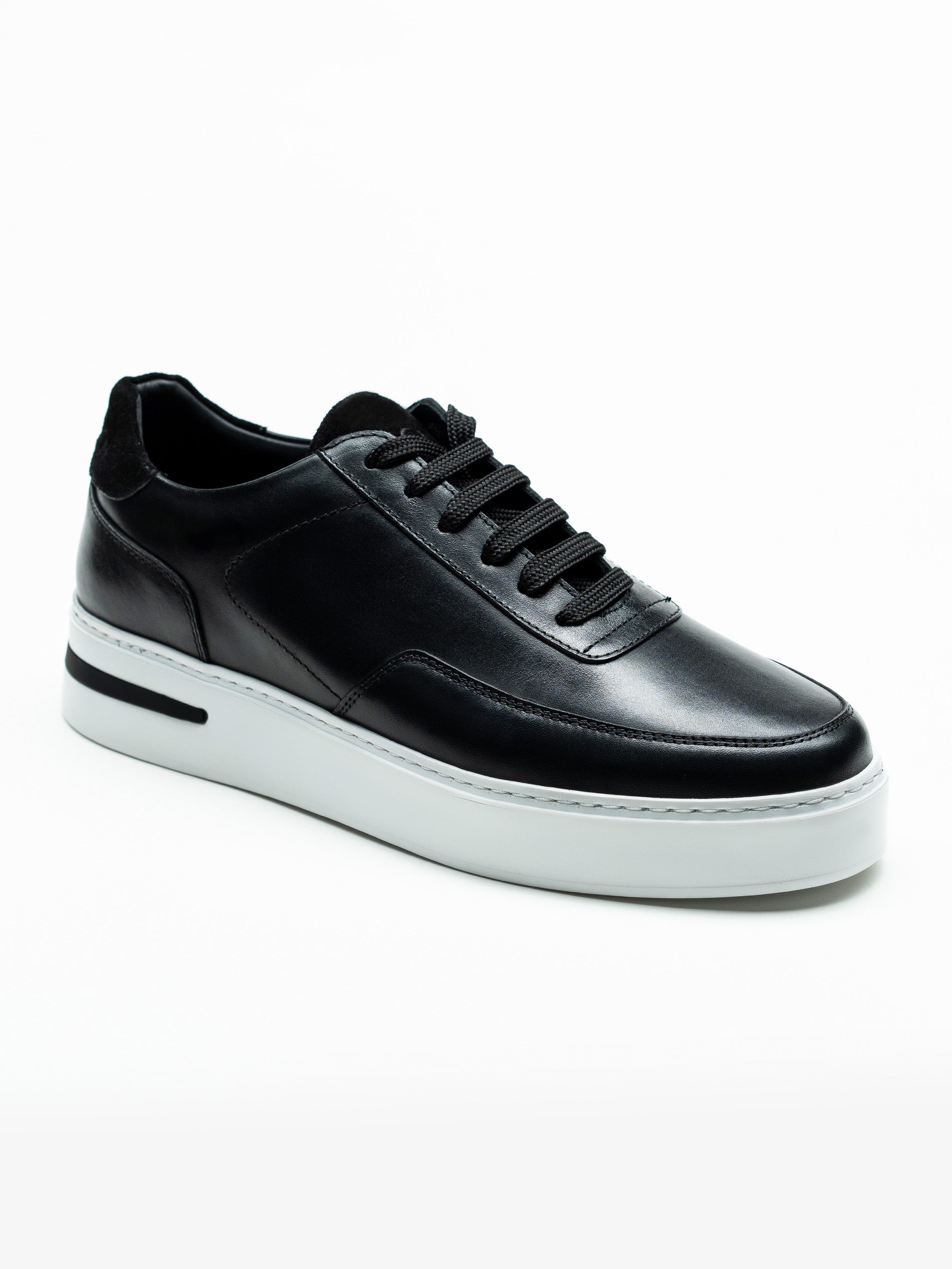 Pantofi Casual Barbati Negri Sneakers 100% Piele Naturala BMan0357, sunt confectionati din 100% piele naturală de vitel atat la interior cat si la exterior. Sireturi asortate negre, iar talpa din spuma comfort one Eva lipita si cusuta, ce prezinta un confort ridicat in purtarea zilnica. Greutatea acestui model de pantof este de 345Gr.