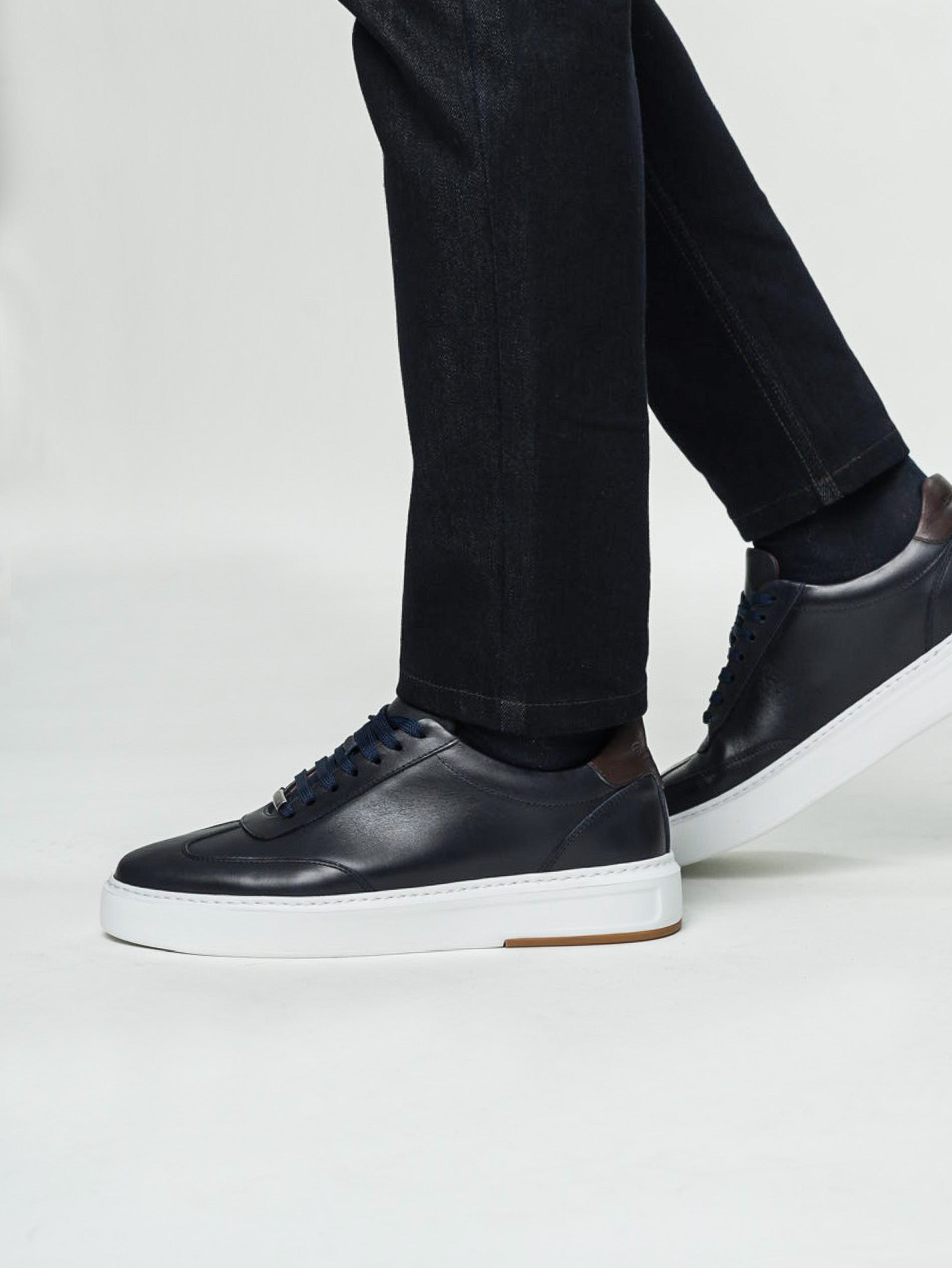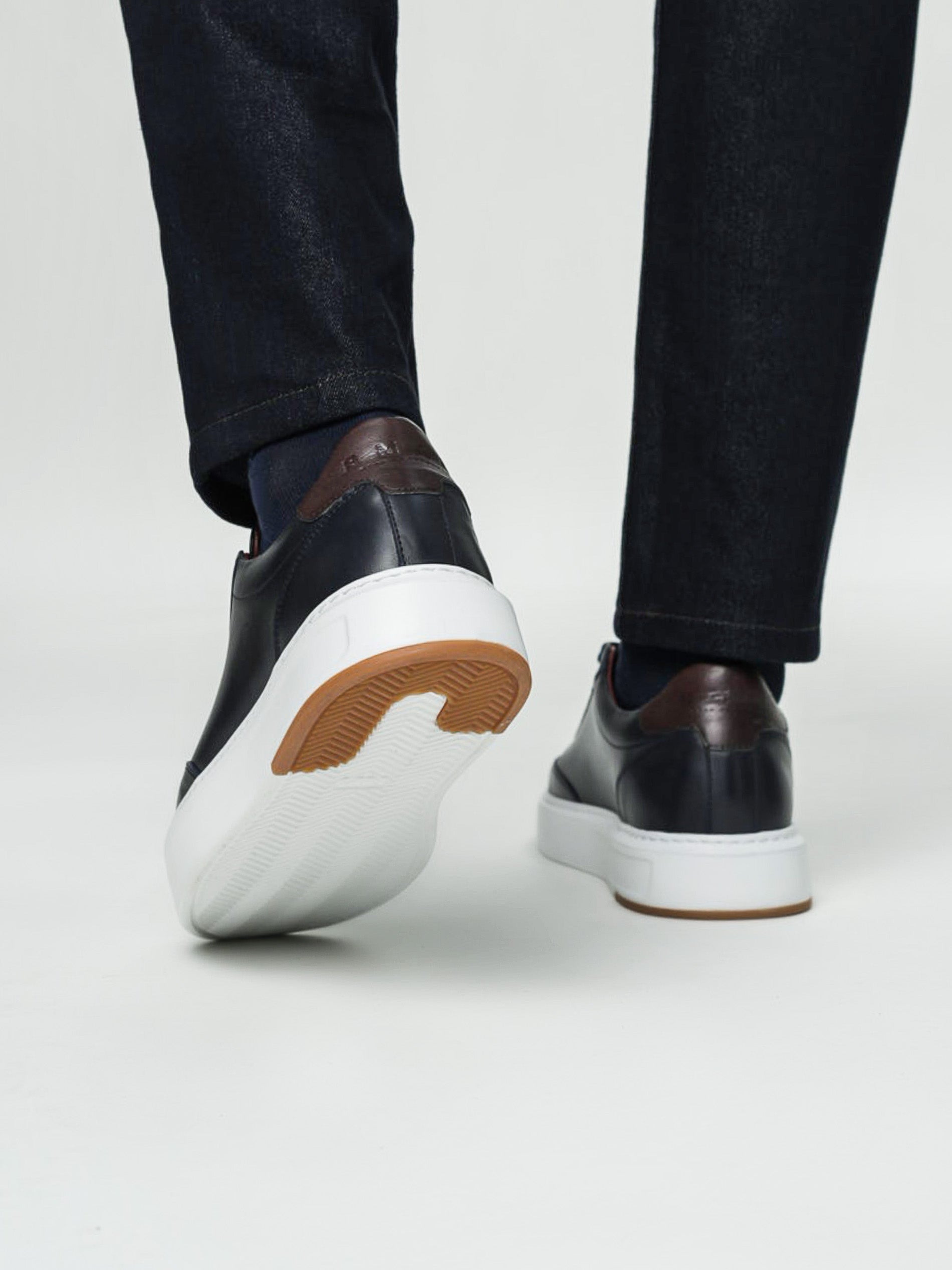 Pantofi Casual Barbati Sneakers Bleumarin 100% Piele Naturala BMan0397, confectionati la exterior din 100% Piele Naturala de bovine captusiti pe interior cu 100% piele naturala de vitel, talpa din spuma eva prezinta un confort ridicat in purtarea zilnica. Usor de accesorizat tinutelor casual si smart-casual.