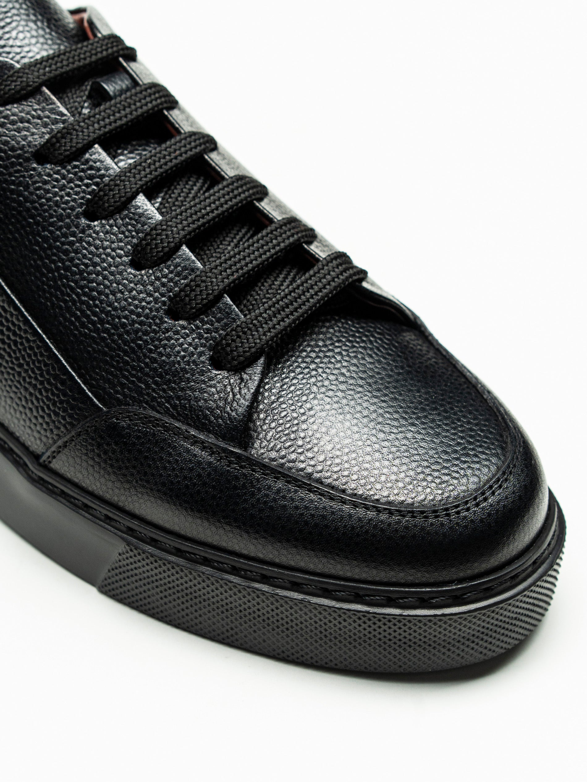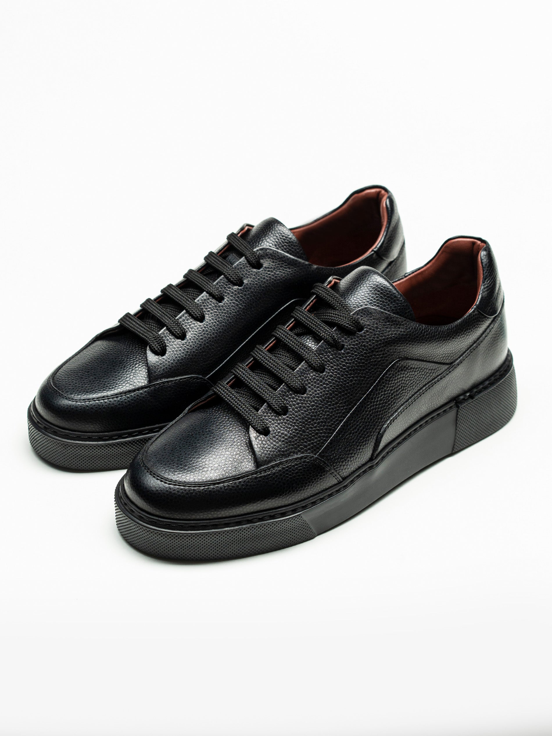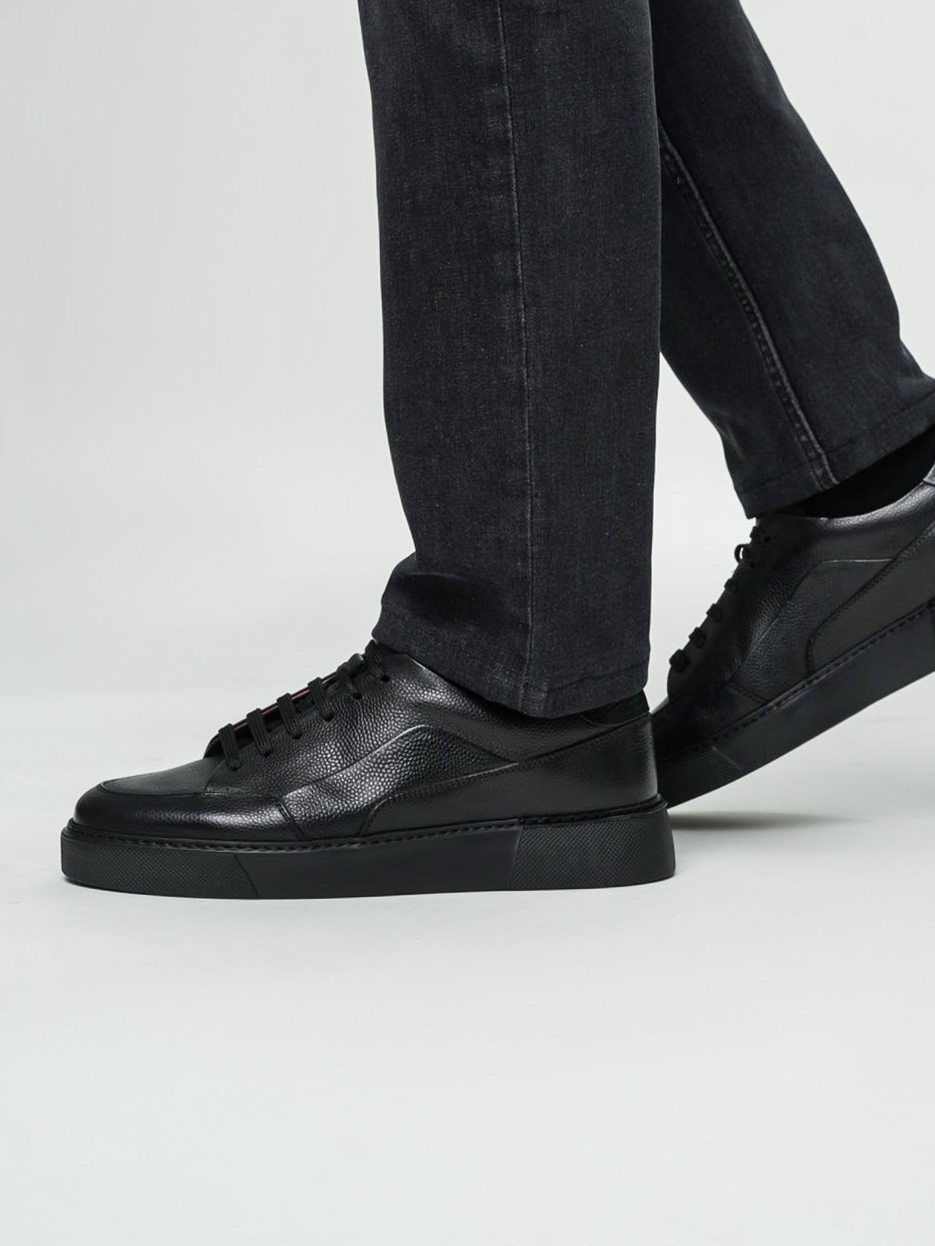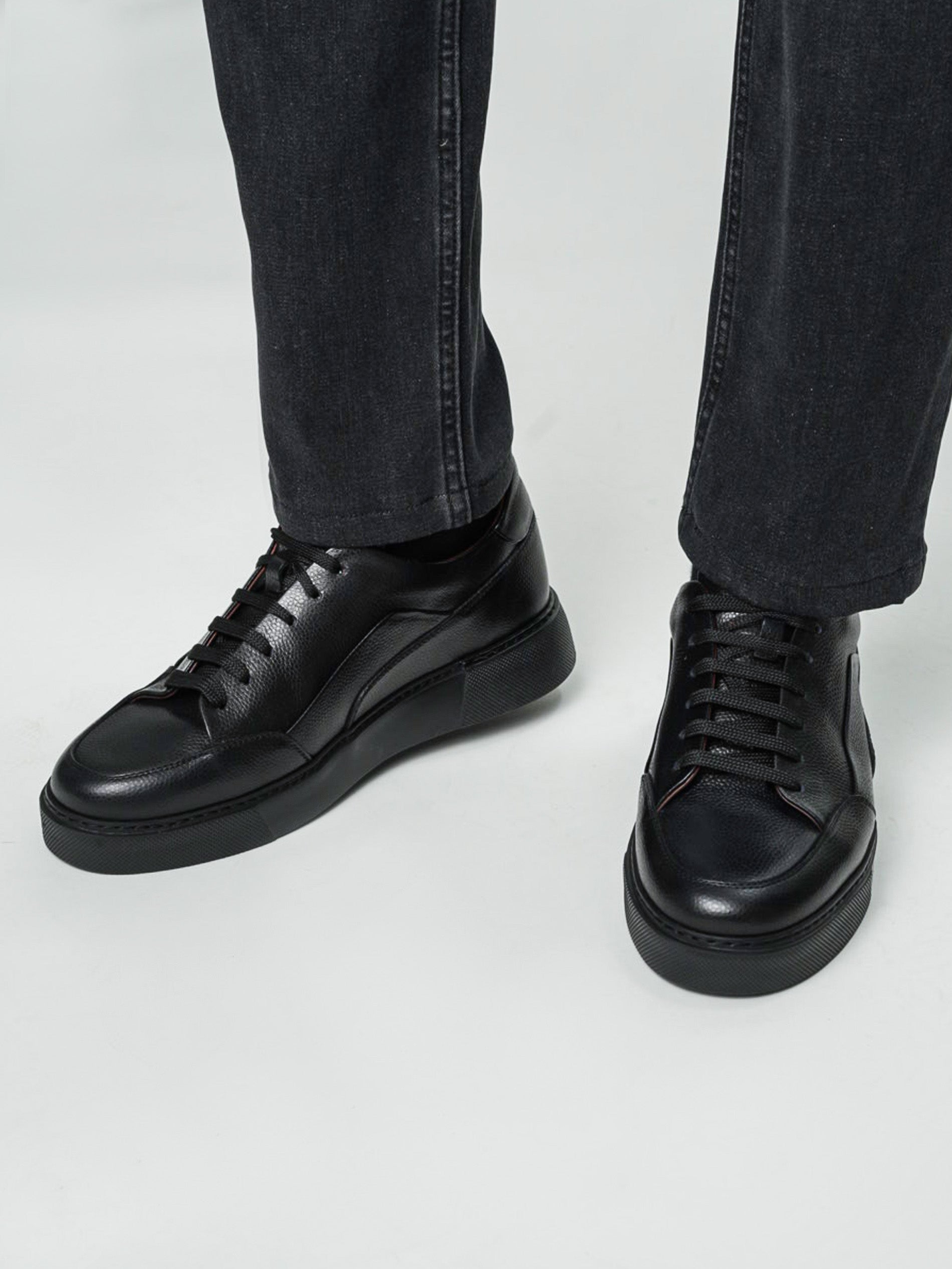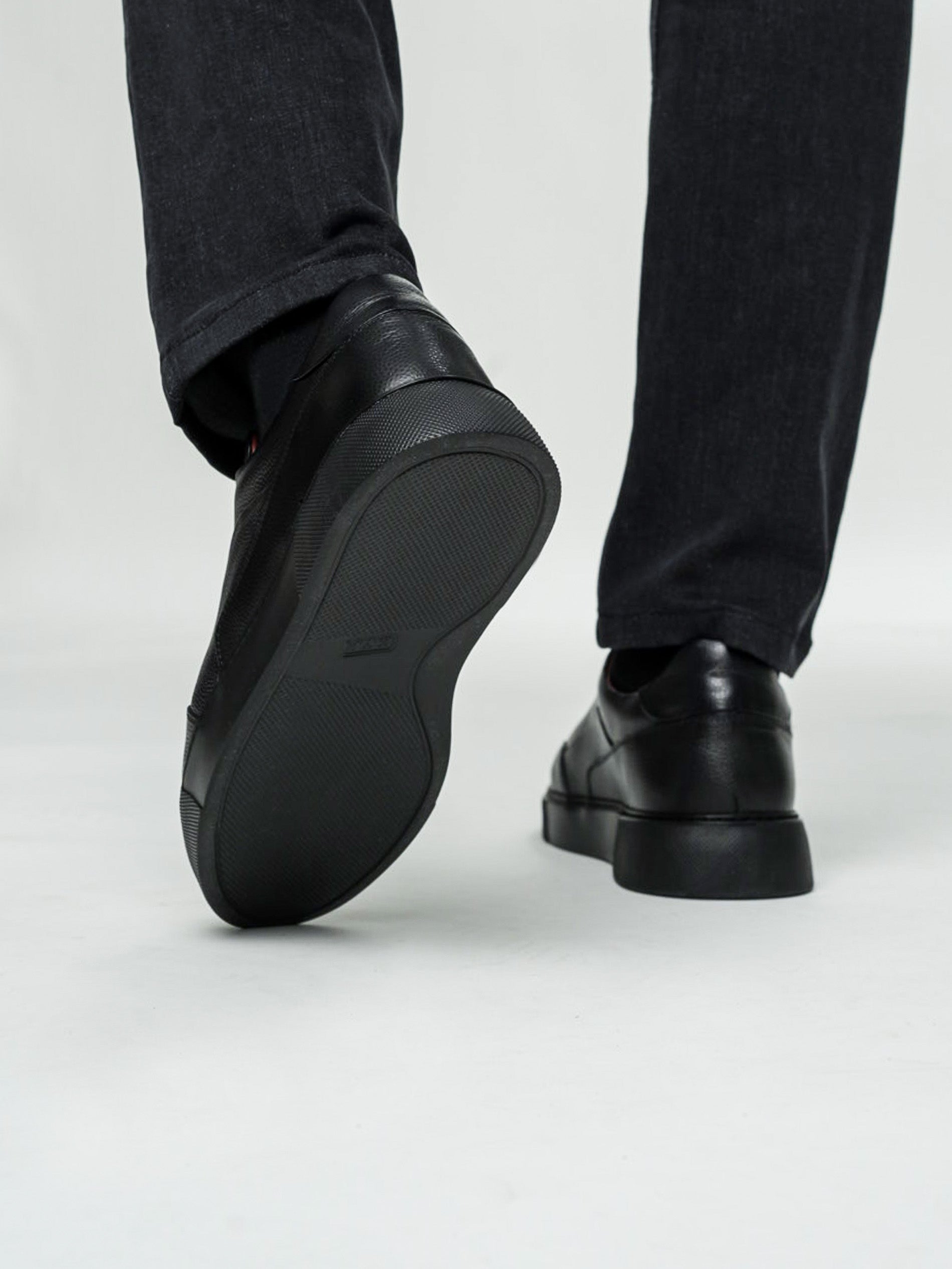 Pantofi Casual Barbati Negri Tip Sneakers Din Piele Naturala BMan0398, sunt confectionati din 100% piele naturală de vitel atat la interior cat si la exterior. Sireturi asortate negre, iar talpa din spuma comfort one Eva lipita si cusuta, ce prezinta un confort ridicat in purtarea zilnica. Greutatea acestui model de pantof este de 345Gr.
