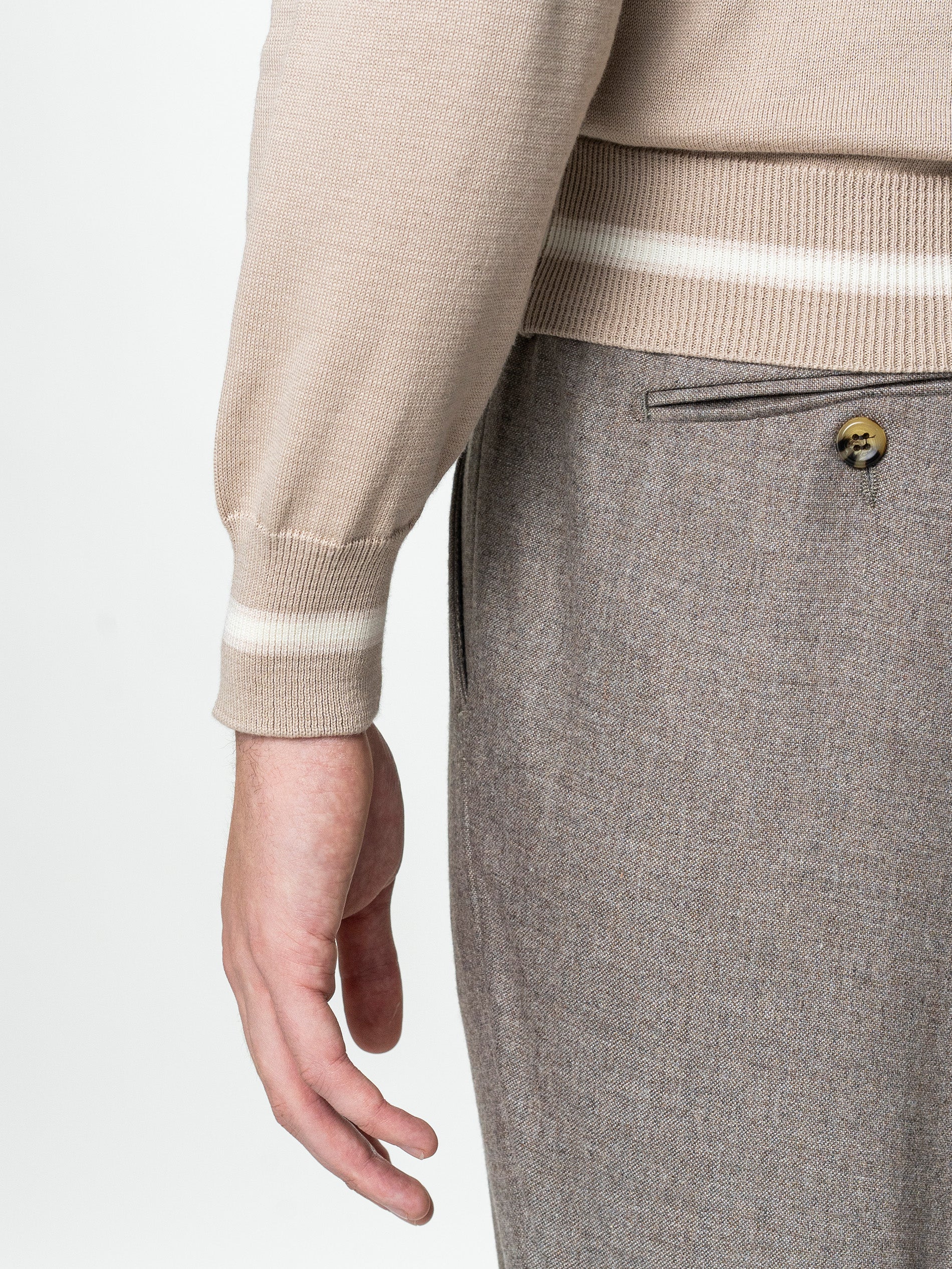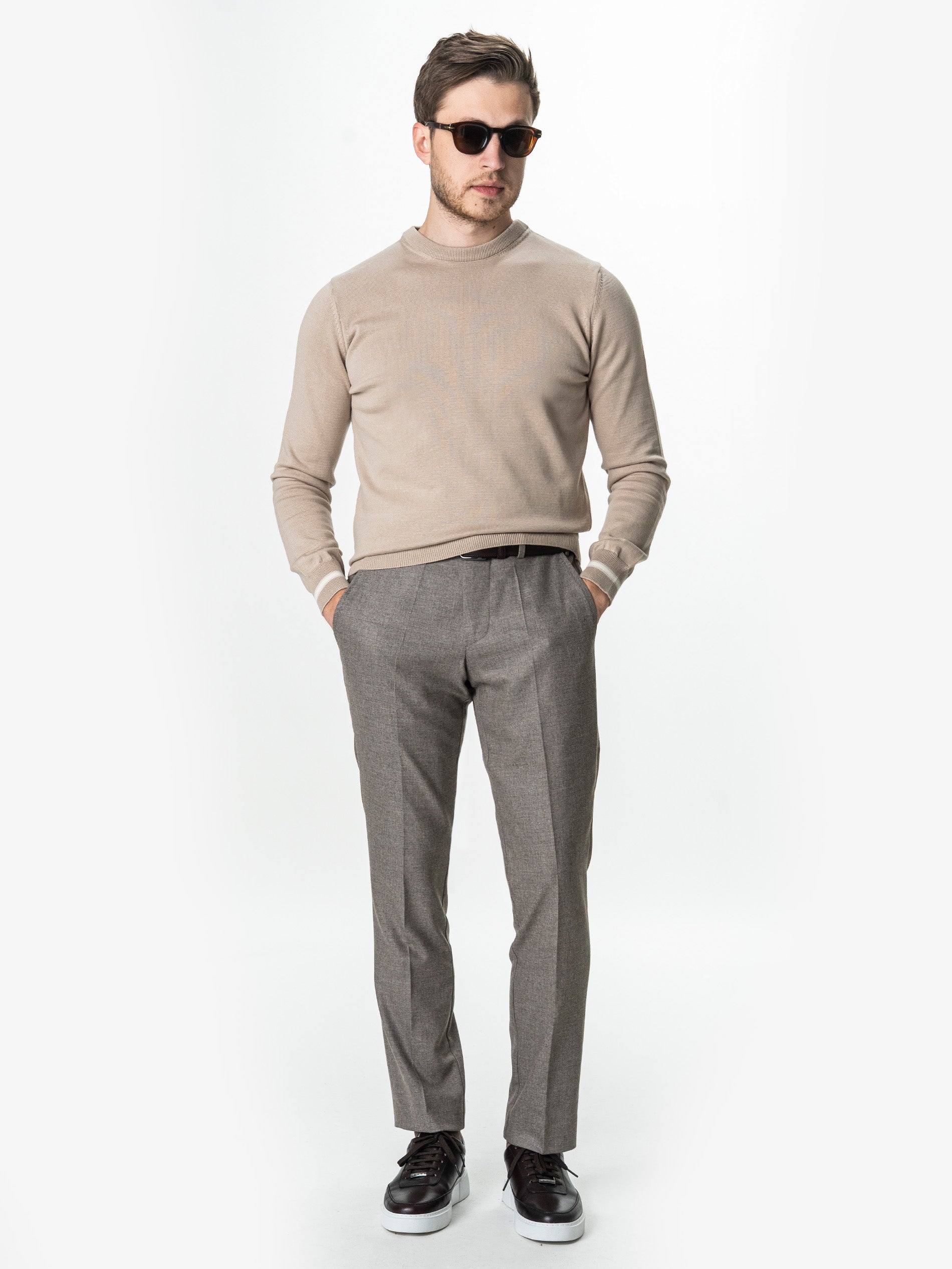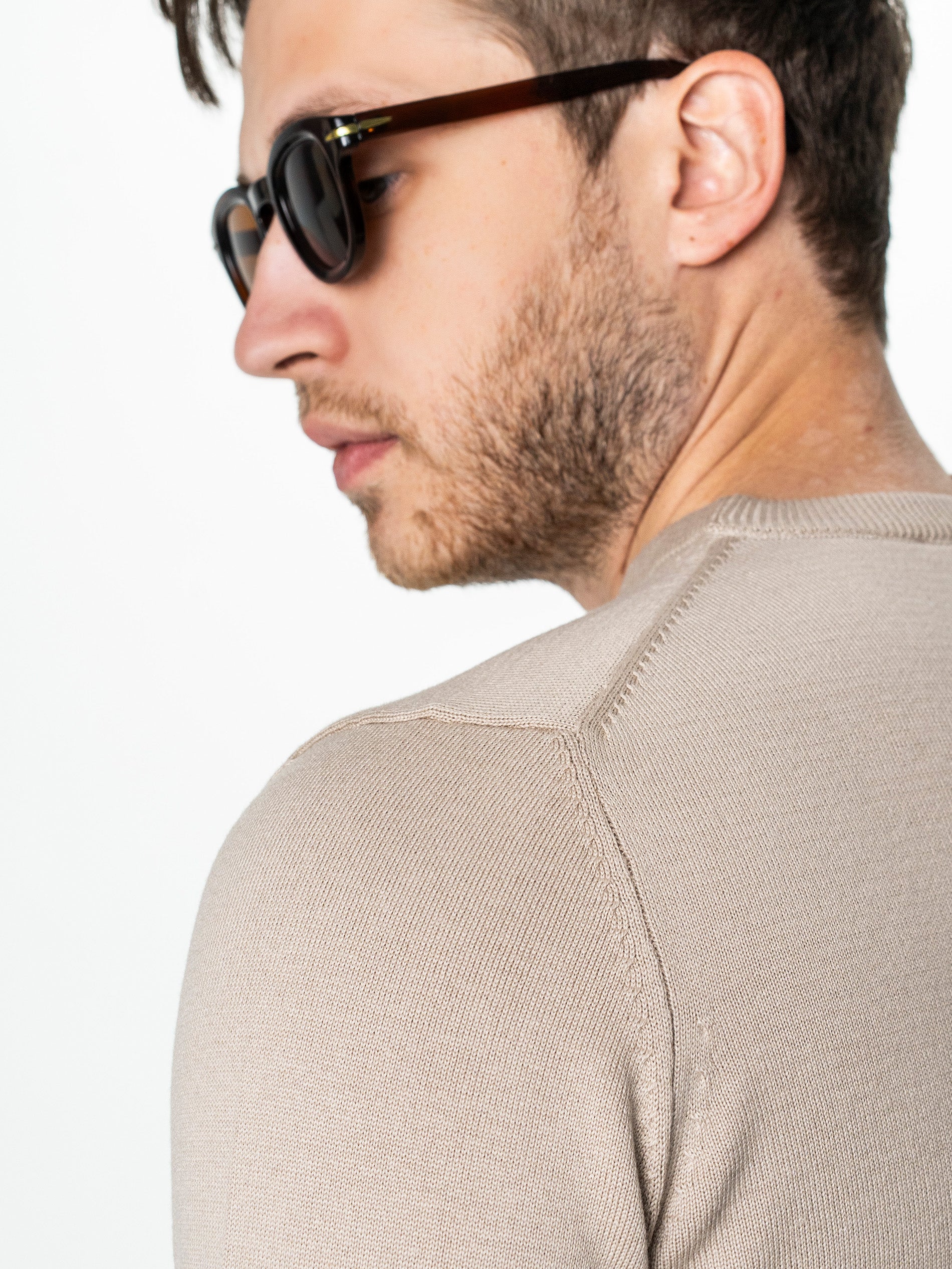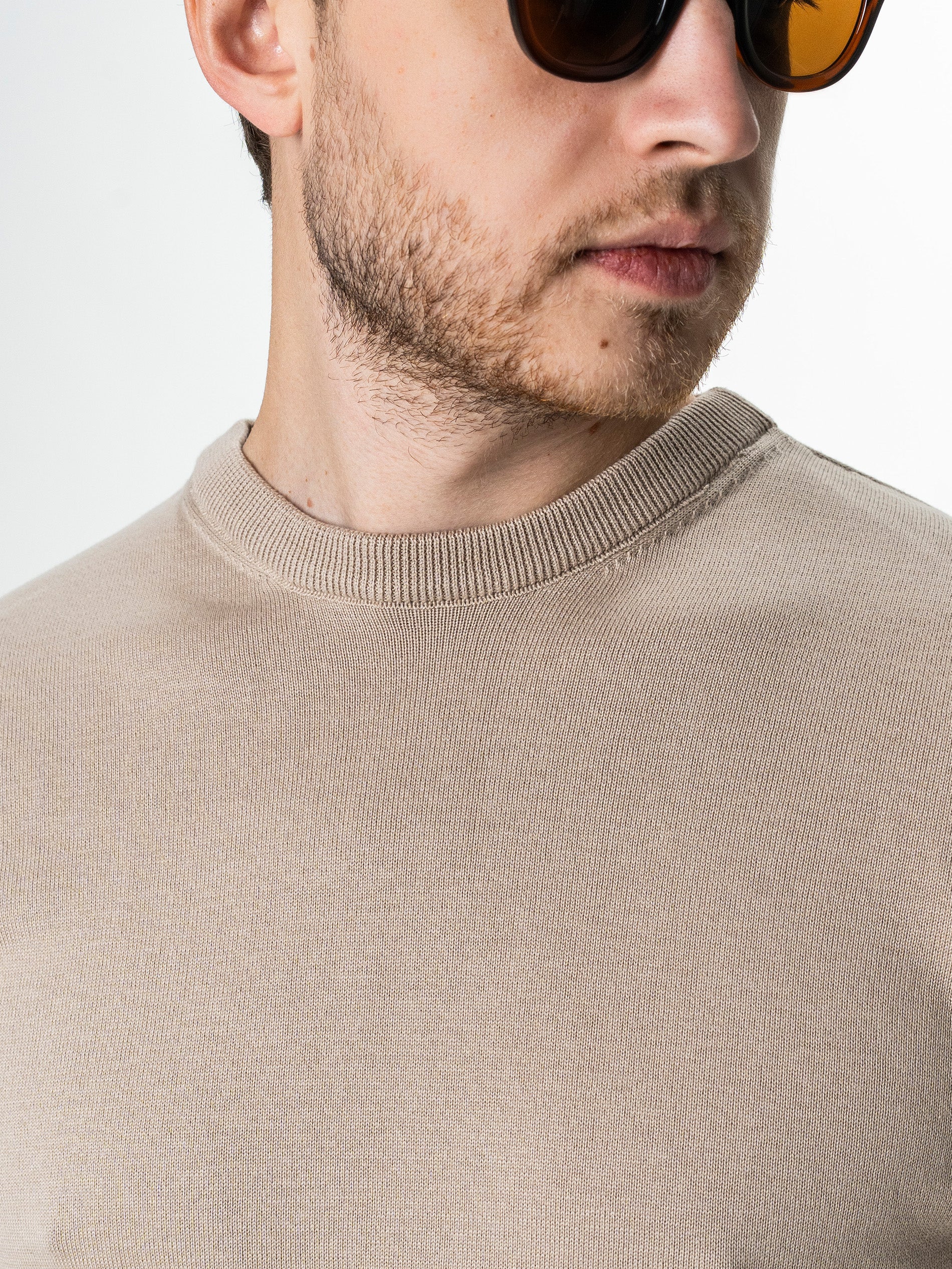 Pulover Barbati Guler Rotund Bej 100% Bumbac BMan0028