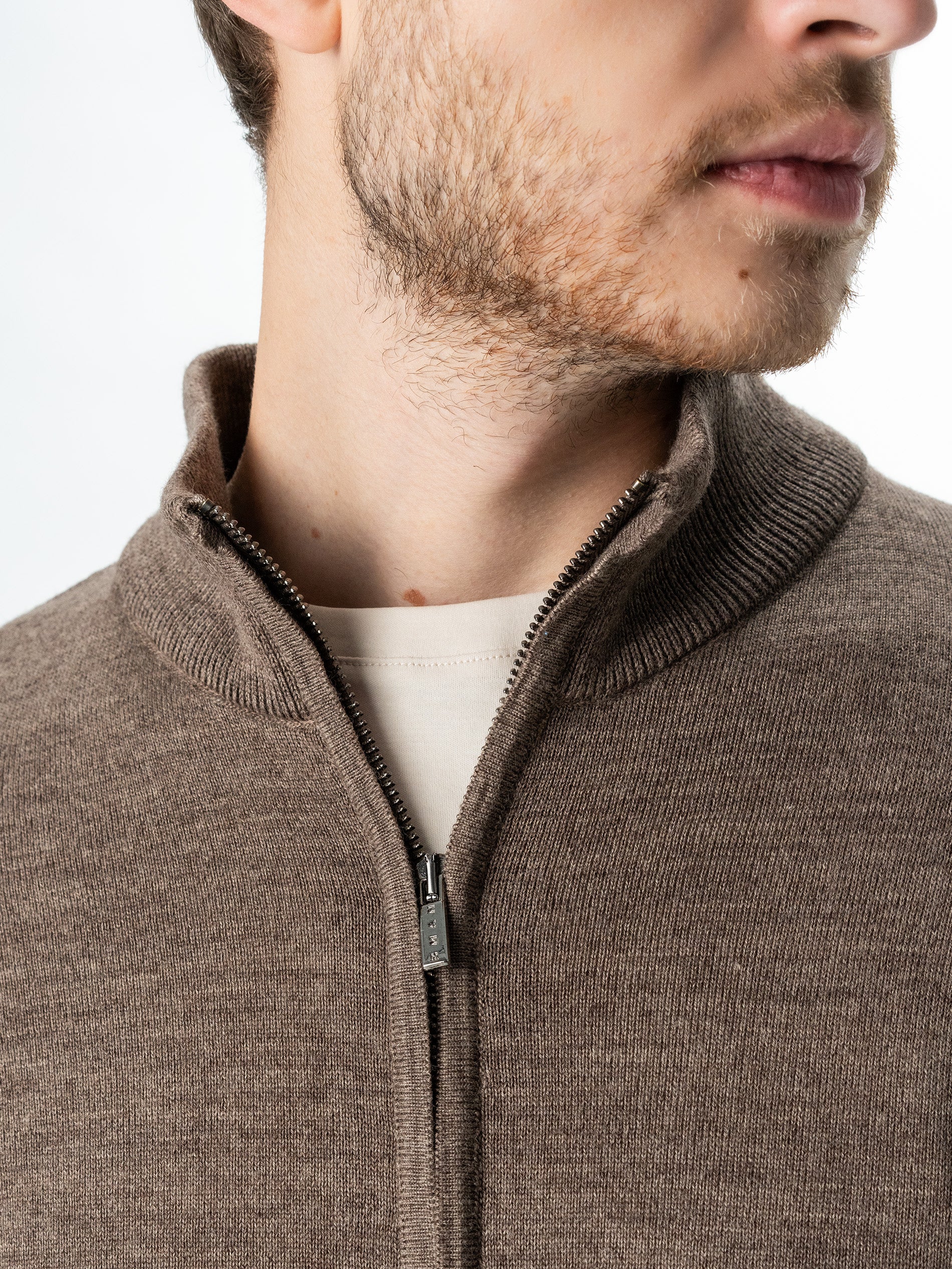 Guler elegant / confortabil, cu terminație până în barbie: Când fermoarul este închis, gulerul puloverului oferă o terminație elegantă, ajungând până în zona bărbiei. Această atenție la detalii conferă nu doar un look sofisticat, ci și un confort sporit în timpul sezonului rece.