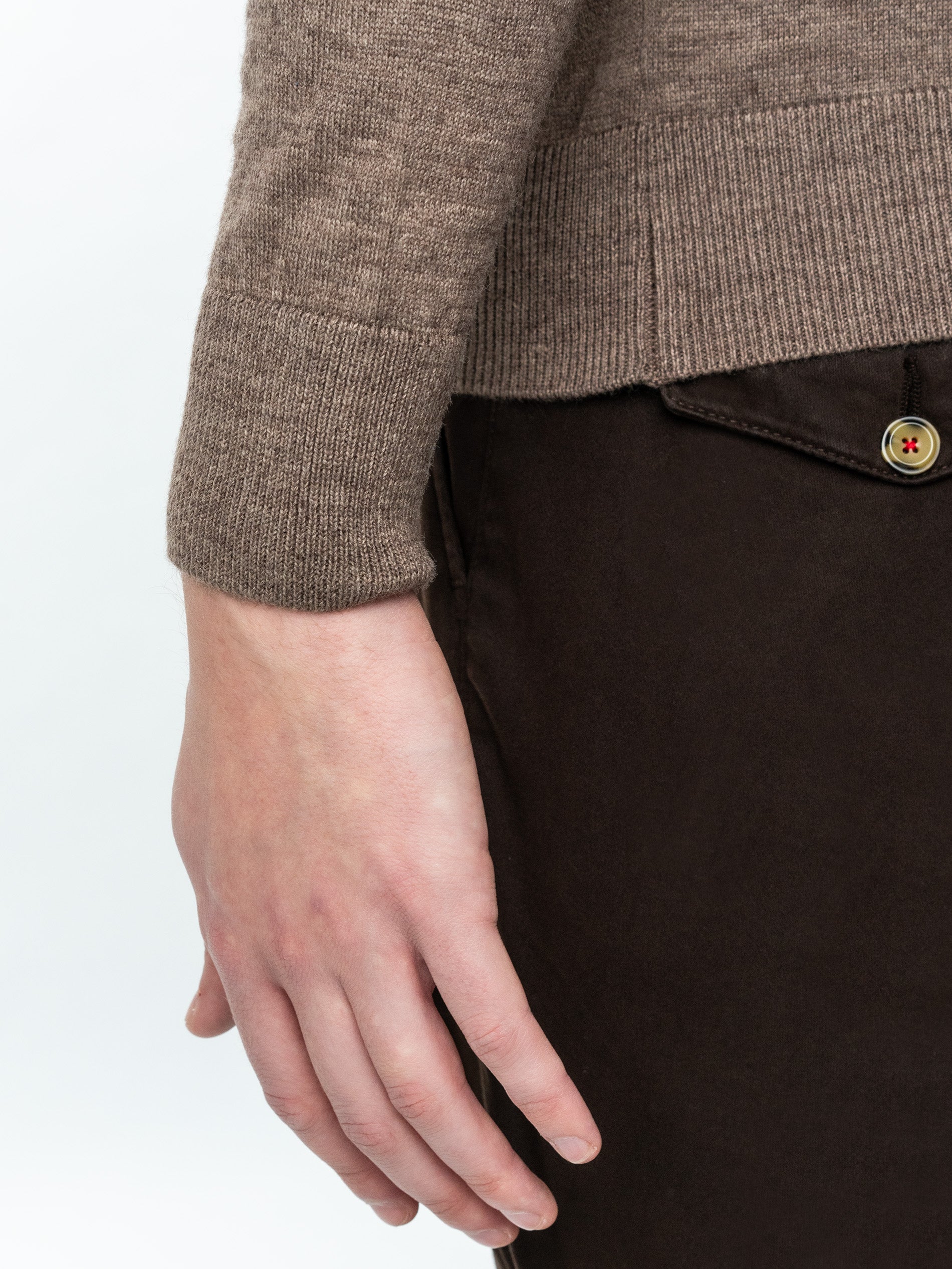 Tesătură de calitate superioară: Fabricat dintr-un amestec de 72% lână merinos și 28% PC Bralon Acry, Brand Falco (Lana Italiana), puloverul îmbină calitatea excepțională a lânii cu durabilitatea și ușurința de întreținere a acrilonului. Această combinație oferă un material subțire, dar termoizolant, perfect pentru zilele reci de toamnă și iarnă.
