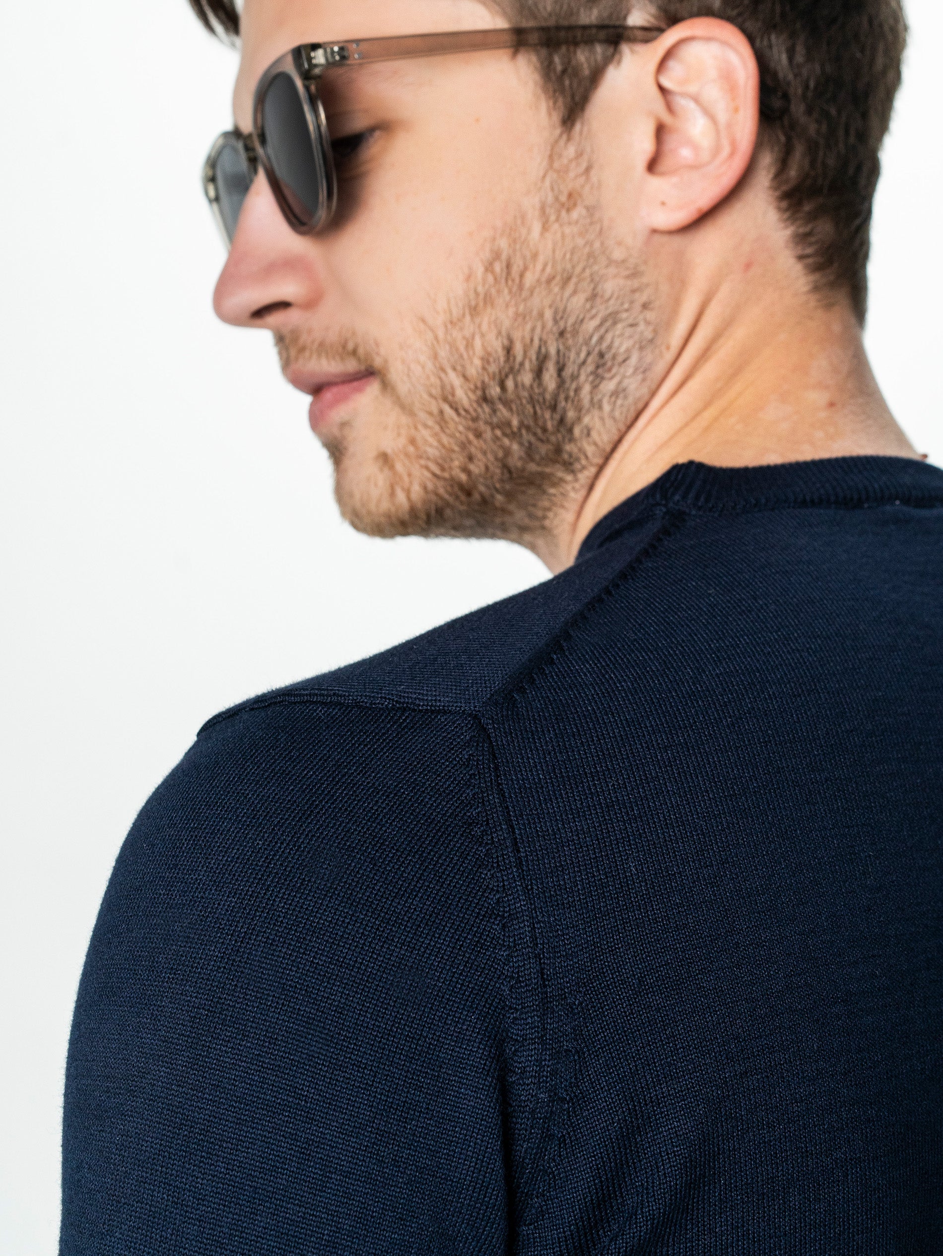 Pulover Barbati Guler Rotund Bleumarin 100% Bumbac BMan0028