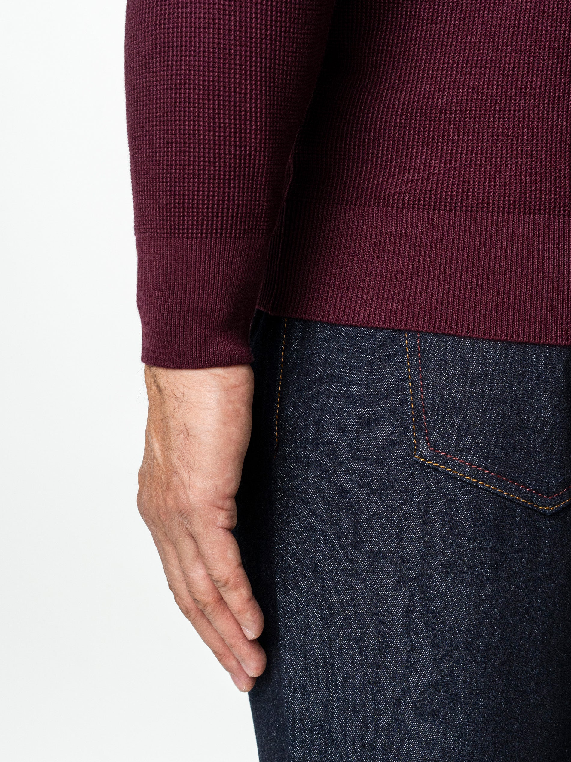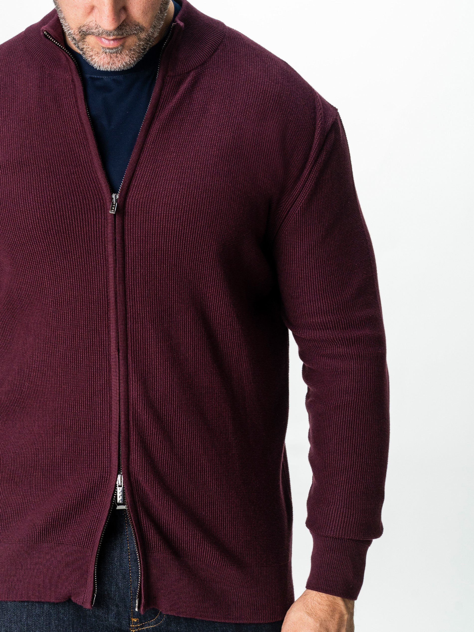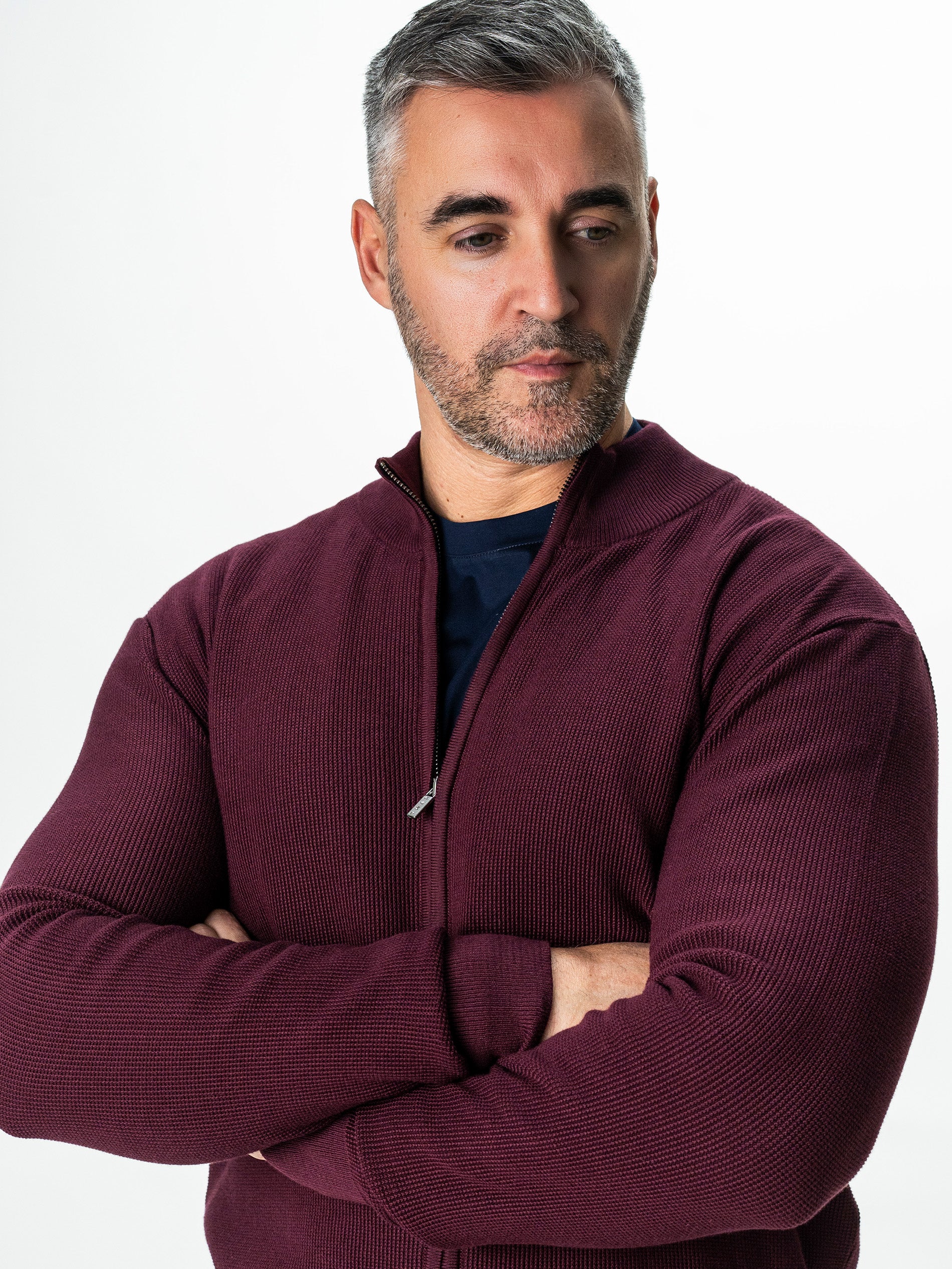 Pulover Barbati Bordo Cu Fermoar 100% Bumbac BMan0029 este definitia confortului rafinat: tricotajul fin din bumbac 100% are o textura discreta, cu nervuri subtile care contureaza o silueta eleganta si moderna. Gulerul scurt si fermoarul dublu-sens permit variante de purtare versatile — inchis pana la gat pentru protectie sau deschis pentru layering. Croiala comfort fit urmeaza linia corpului fara a strange, iar finisajele minimaliste transforma piesa intr-un element esential pentru tinute smart-casual si office-relaxed.