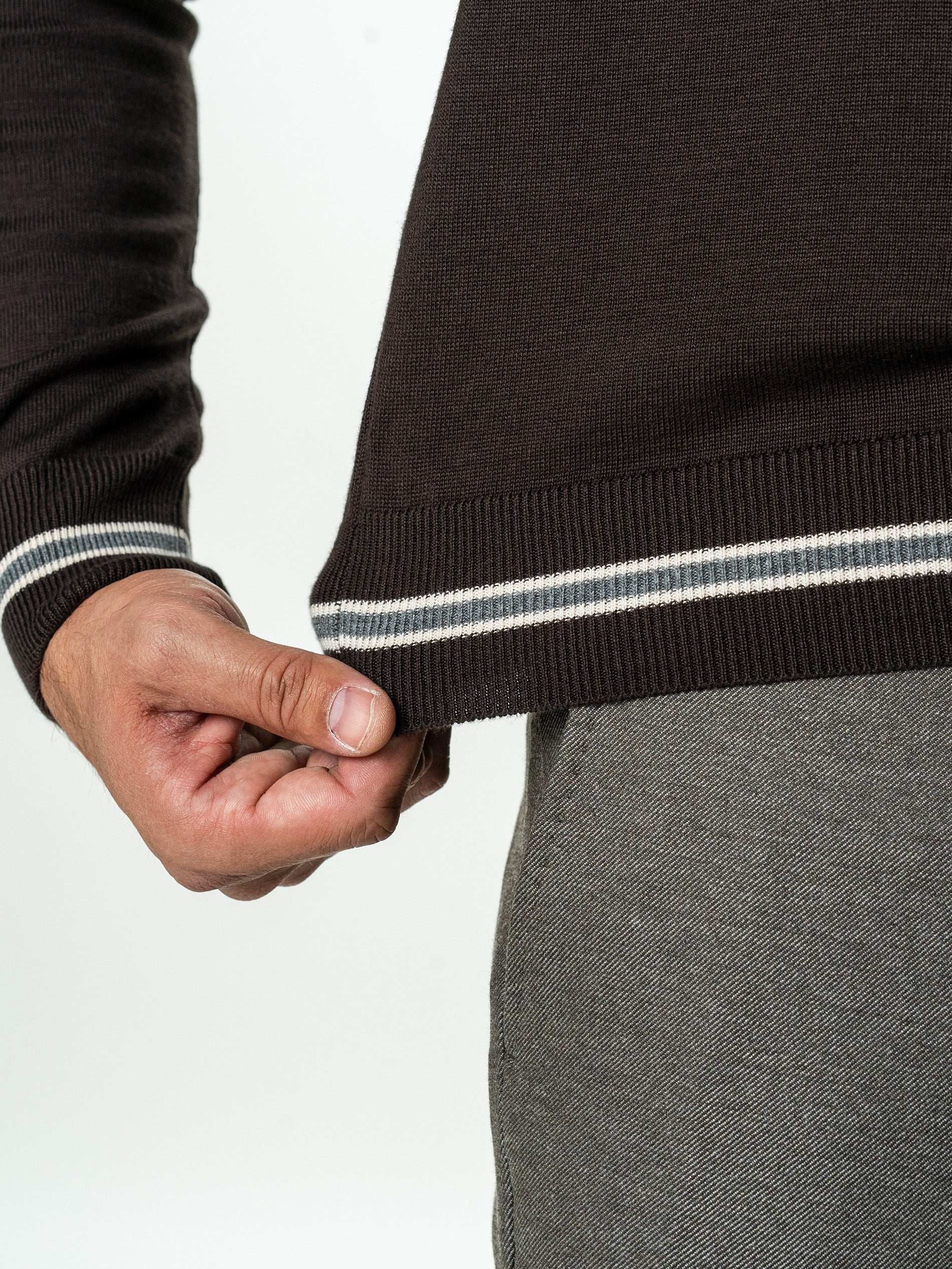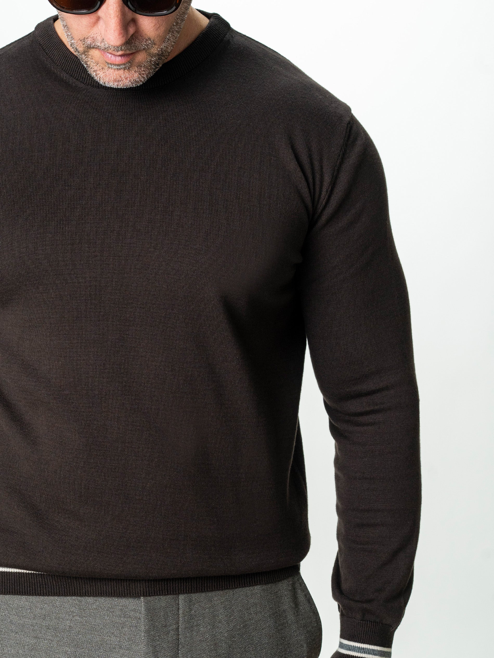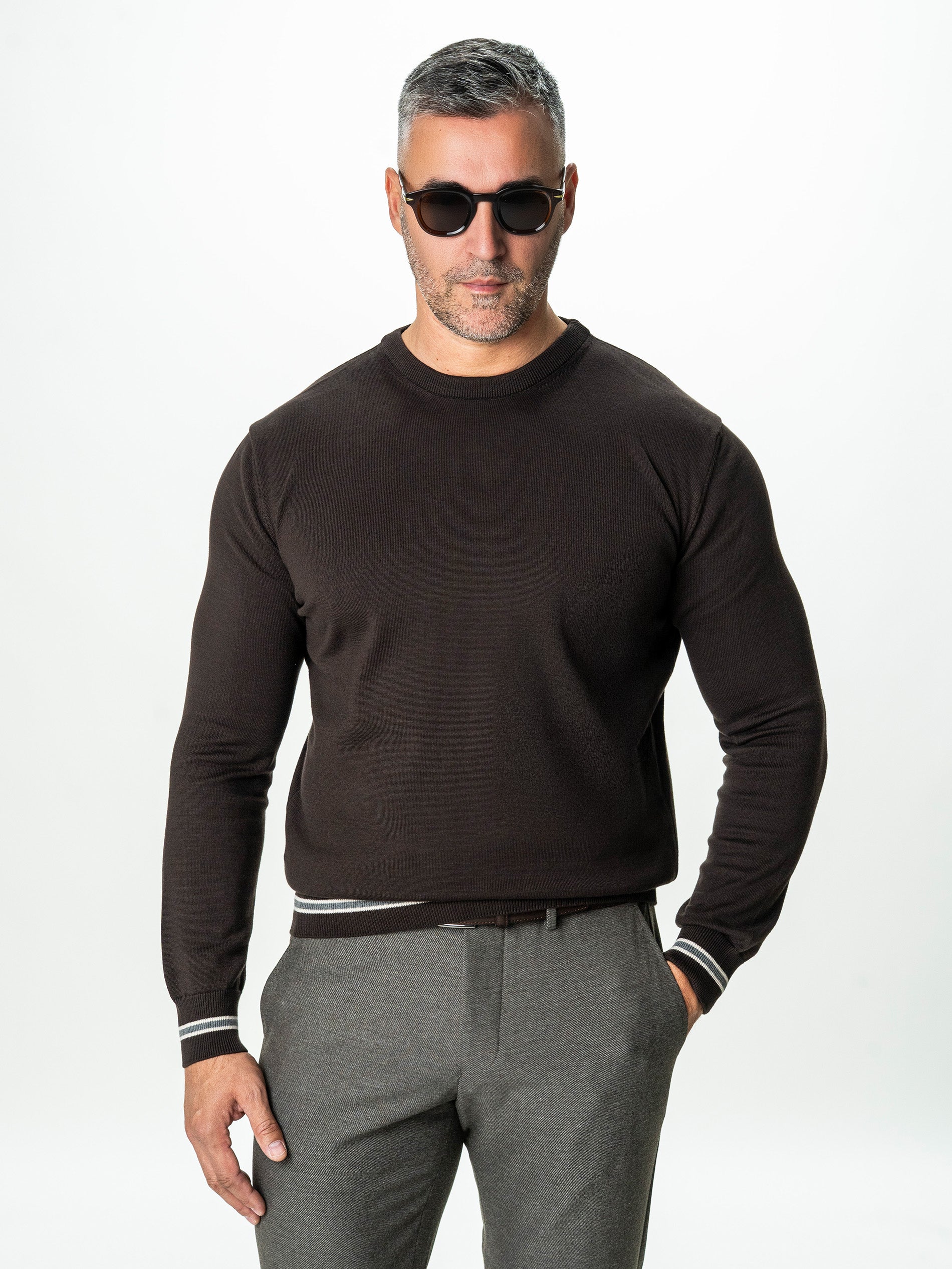 Pulover Barbati Guler Rotund Maro Inchis 100% Bumbac BMan0028 ofera o senzatie naturala la purtare si un aspect rafinat, ideal pentru tinutele de zi cu zi sau combinatii smart-casual. Croiul lejer urmareste linia corpului fara sa stranga, iar textura fina tricotata asigura confort termic optim in sezonul rece. Linie contrastanta subtila la mansete si la baza pentru un accent discret, dar modern.