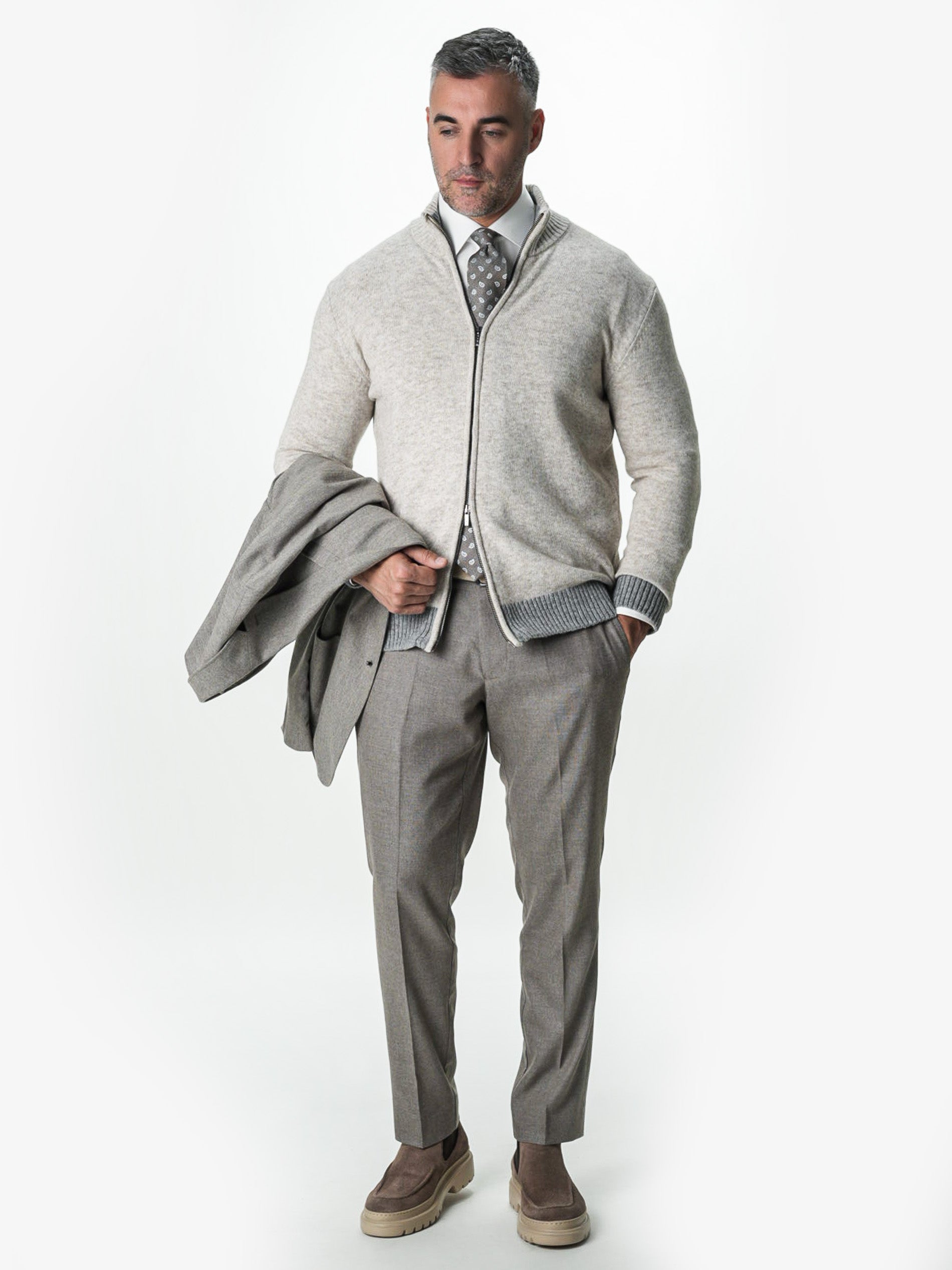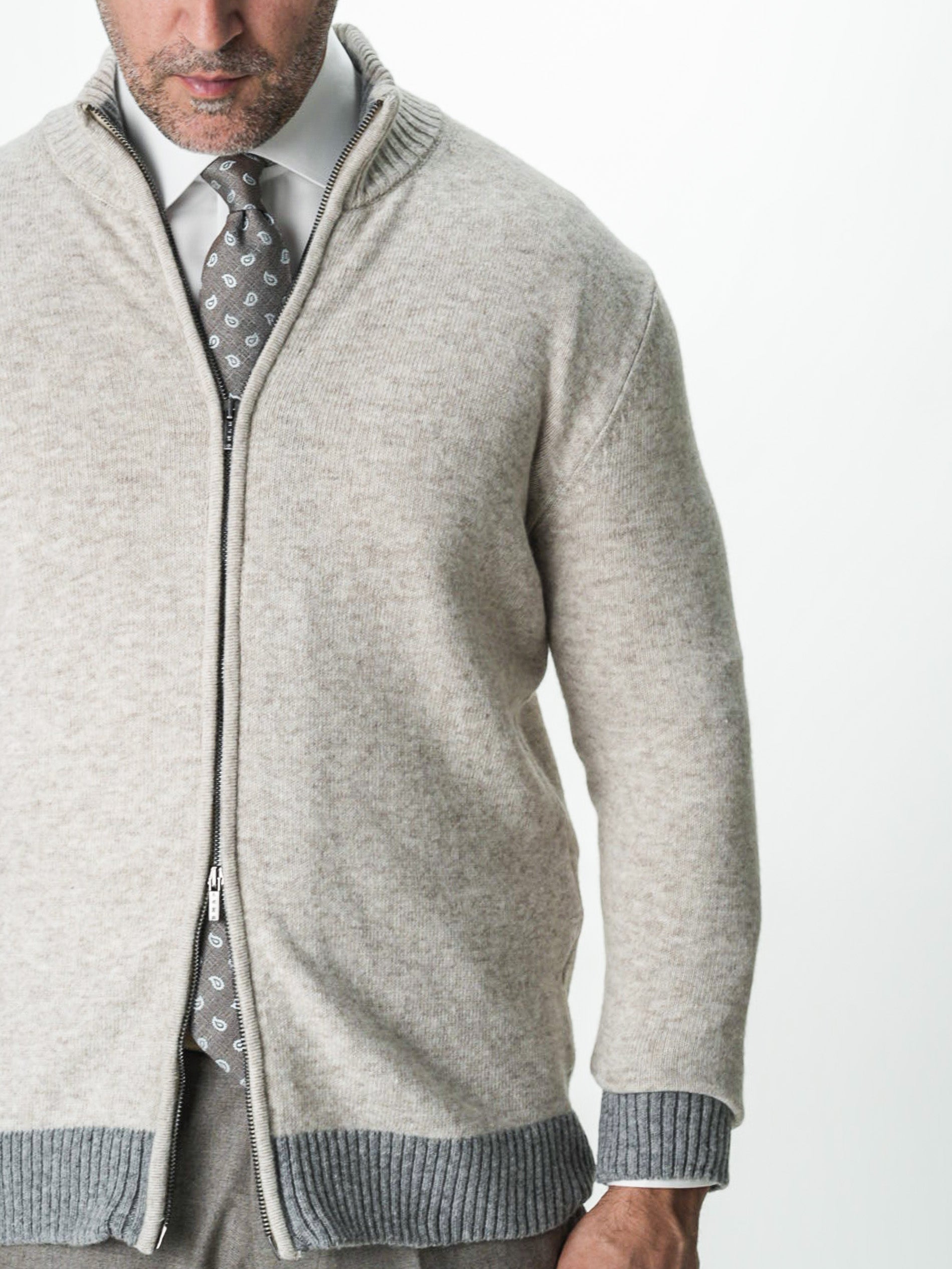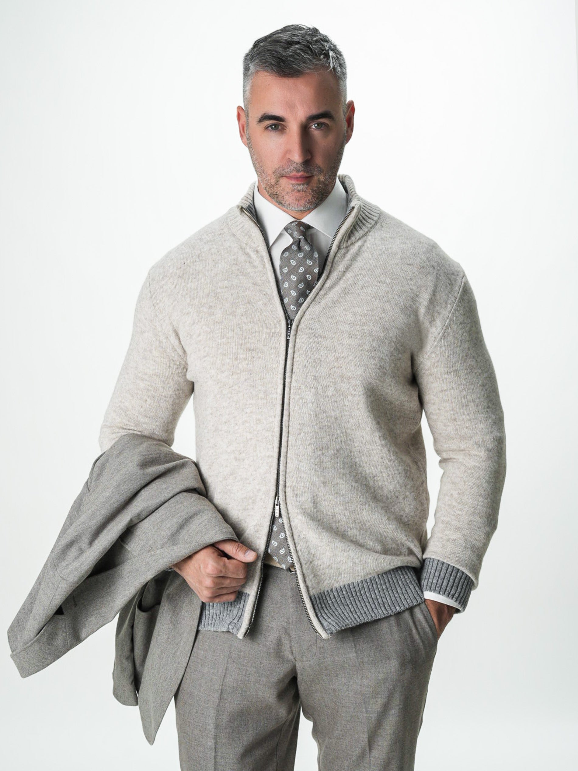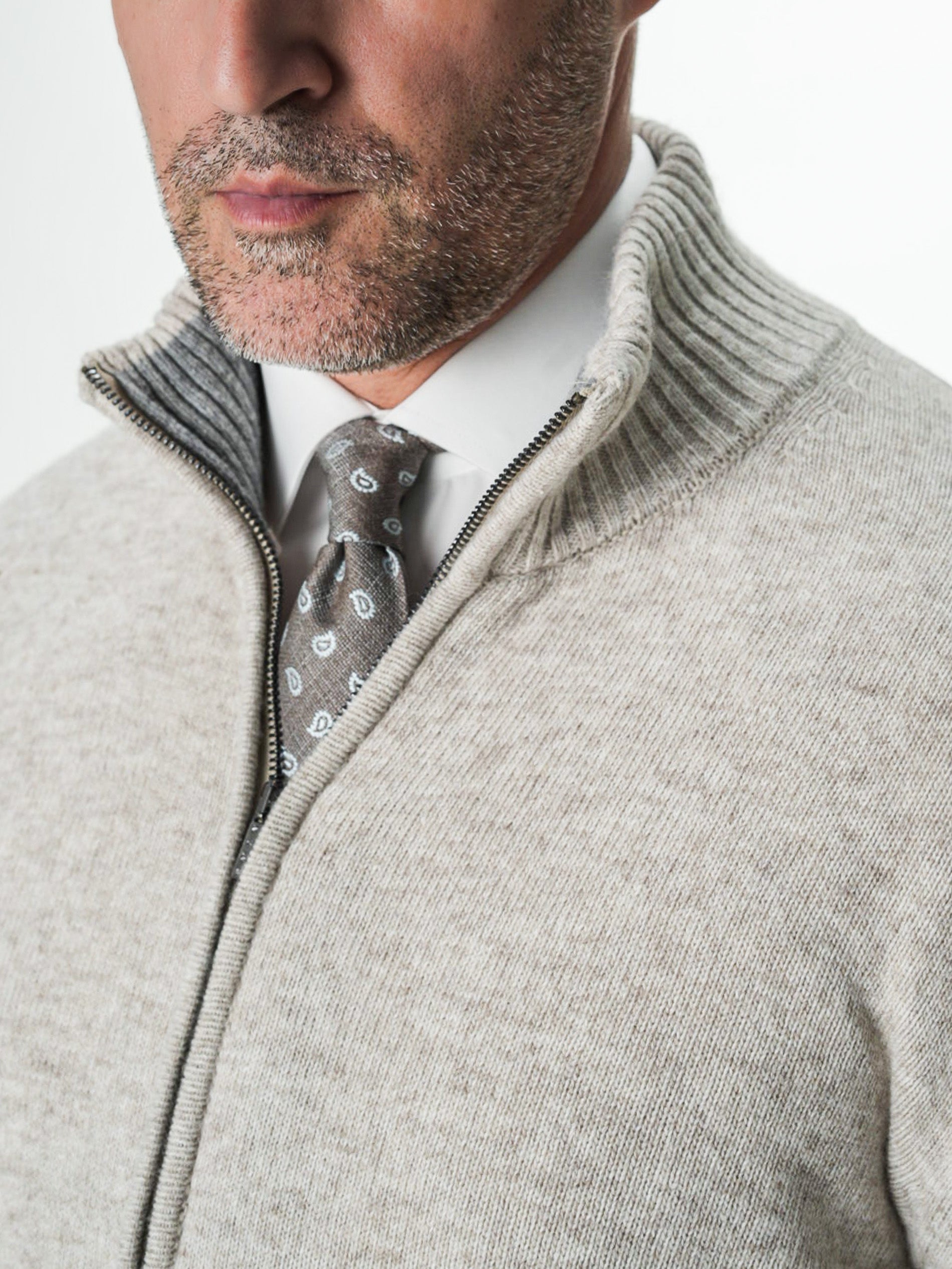 Pulover Barbati Crem Cu Fermoar 100% Lana Lambswool BMan0035, gandit pentru confort autentic si un aspect curat, modern. Textura fina a tricotului creeaza o senzatie placuta la purtare, iar contrastul discret al mansetelor si al tivului aduce un plus de rafinament. Este o piesa versatila, perfecta atat pentru tinute lejere, cat si pentru un look polisat in zilele mai reci. Silueta ramane naturala, iar fermoarul frontal permite libertate in stilizare, de la complet inchis la purtare relaxata.