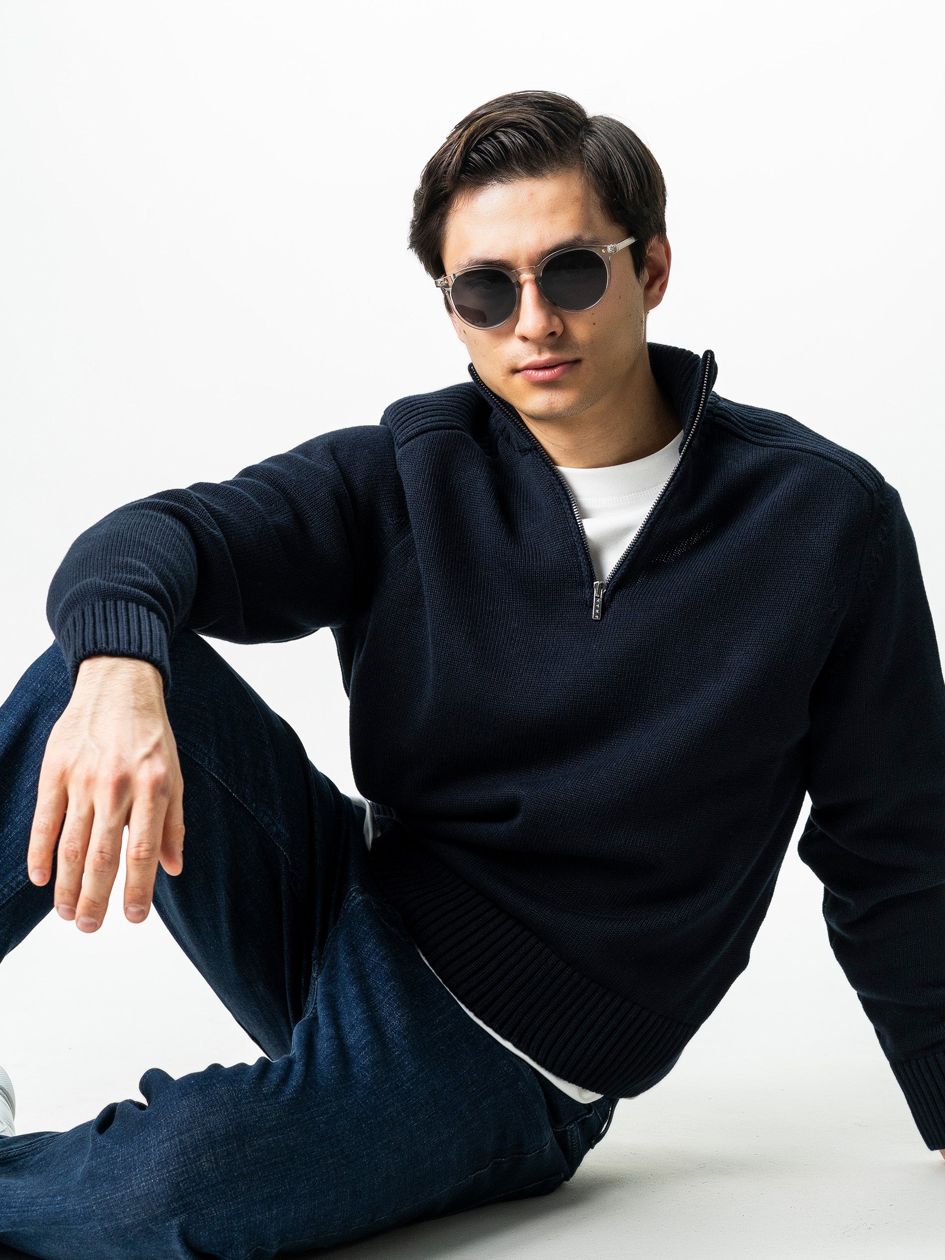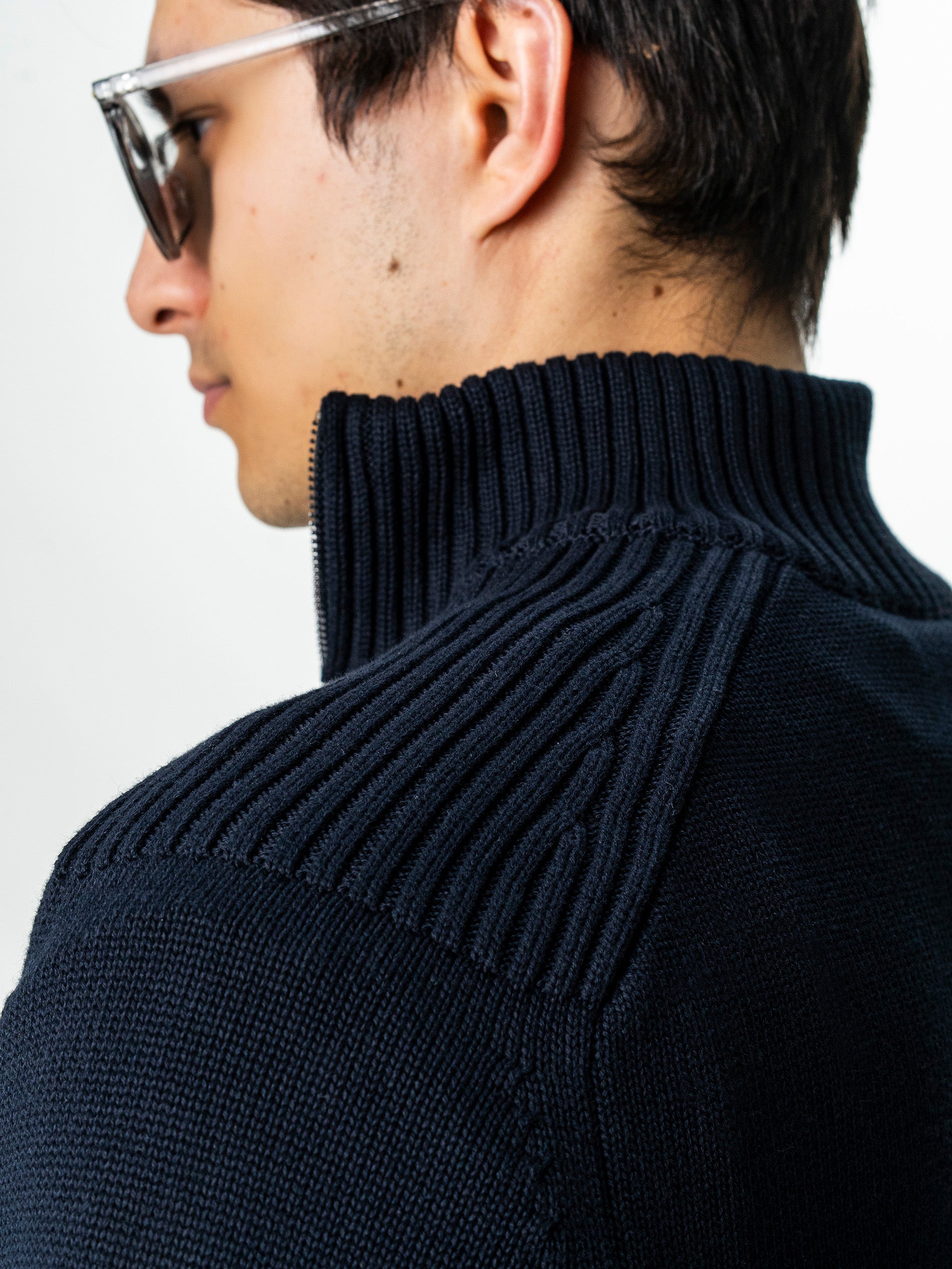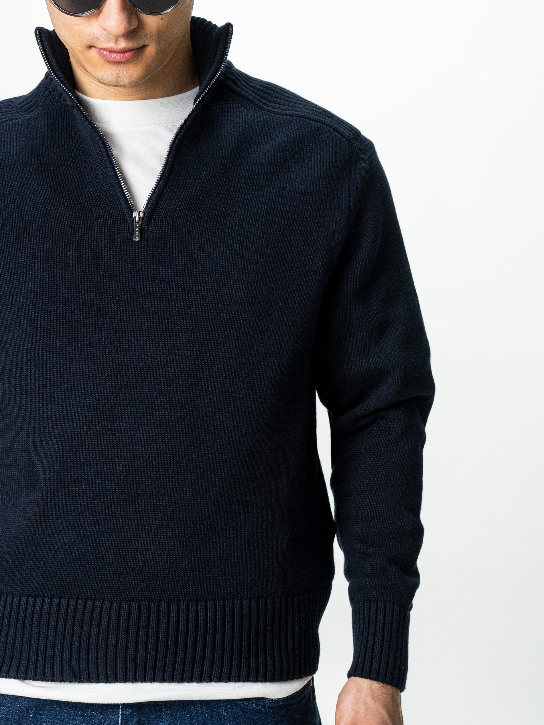 Pulover Barbati Bleumarin Oversize 100% Bumbac Cu Fermoar BMan0037