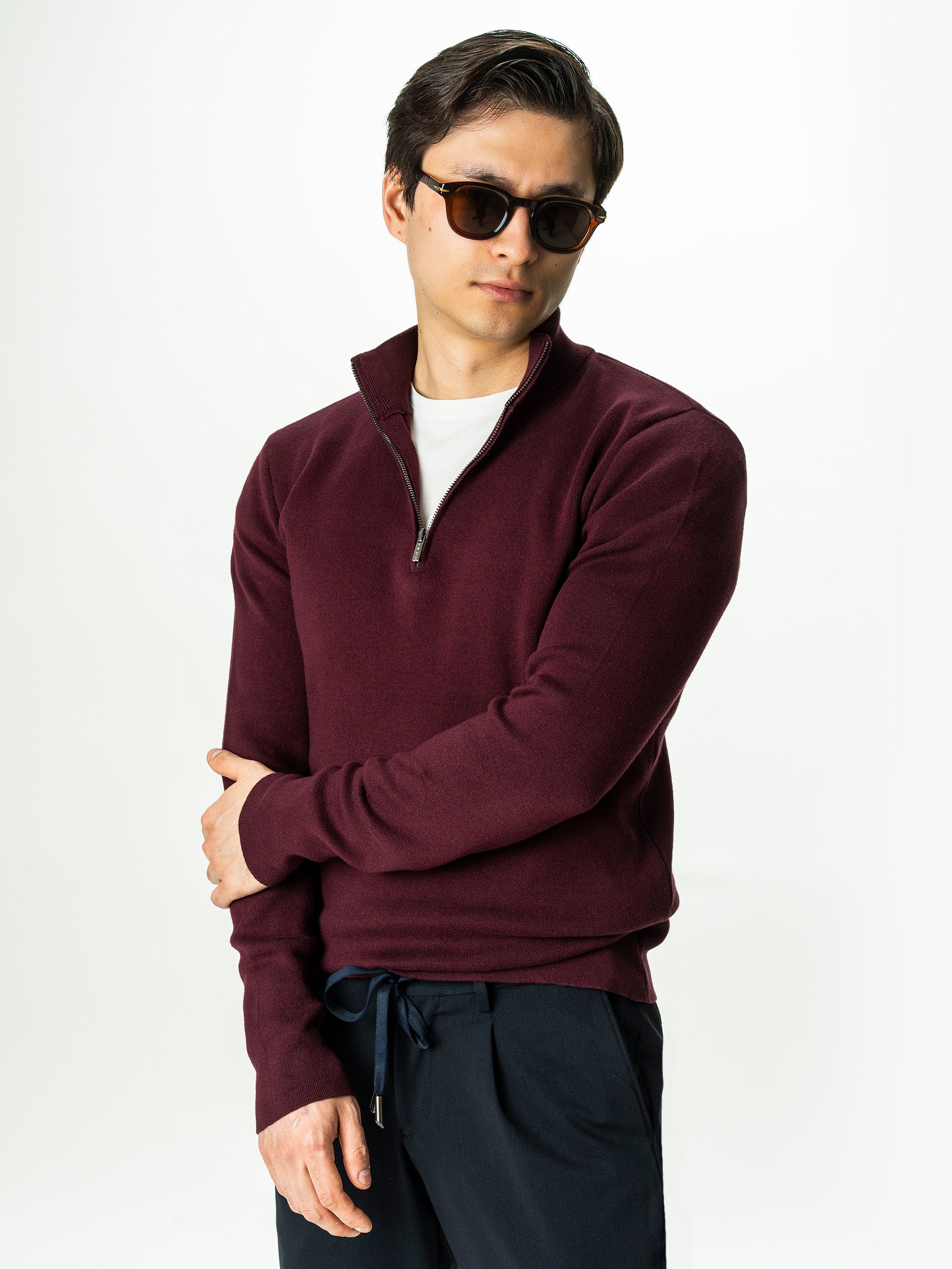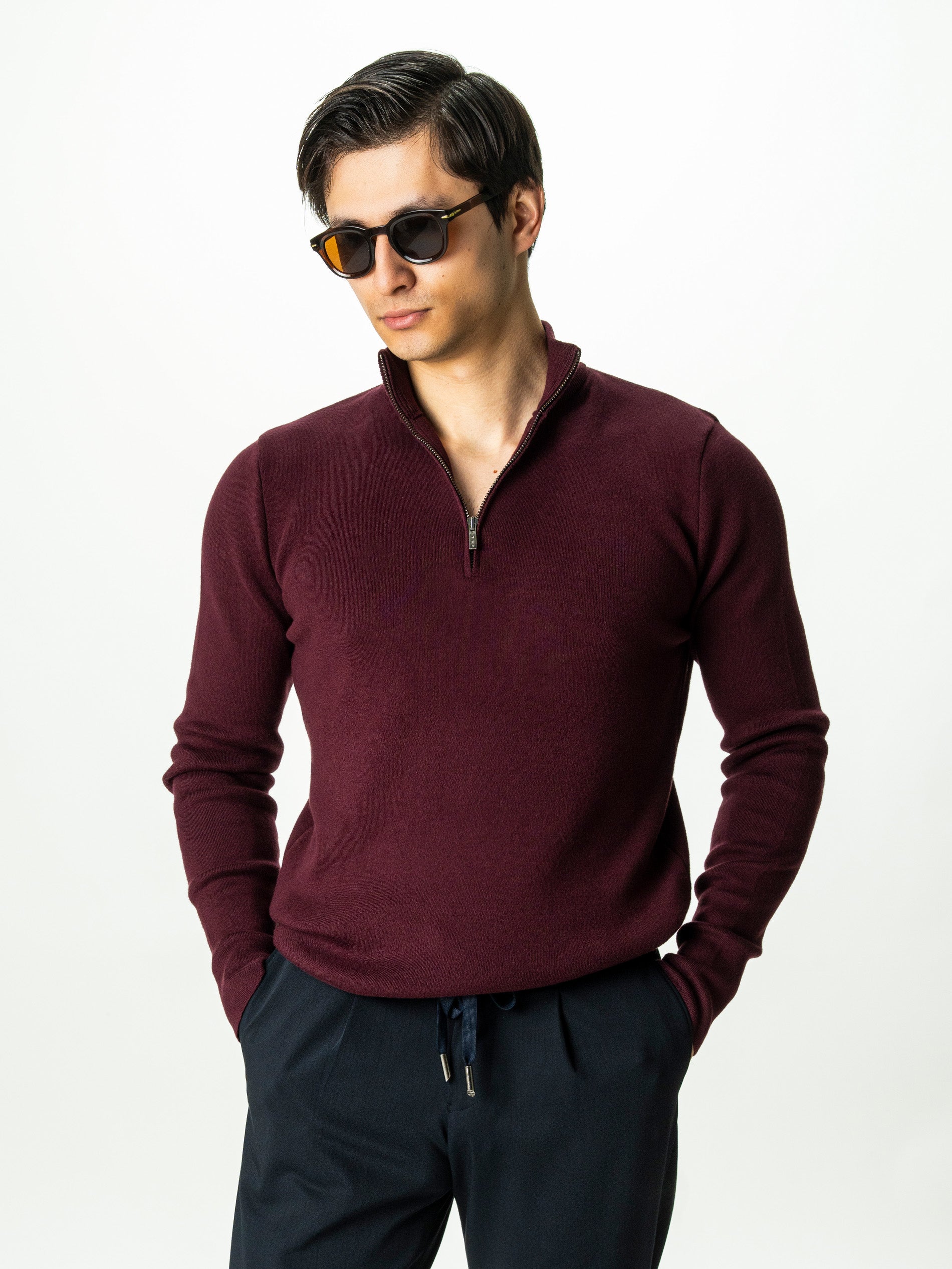 Pulover Barbati Bordo Cu Fermoar 100% Bumbac BMan0002 reinterpreteaza clasicul stil casual printr-o simplitate rafinata. Realizat din 100% bumbac, se aseaza pe corp ca o miscare fluida, cu o textura fina ce lasa senzatia de caldura discreta si confort natural. Culoarea sa calda, un bordo cu accente de visina putreda, transforma piesa intr-un element vestimentar matur, profund, aproape ca o raza de lumina filtrata printr-o dupa-amiaza de toamna.Detaliul esential: terminatiile curate, fara rib clasic la maneca sau tiv, oferind un look modern, minimalist, cu linii curate.