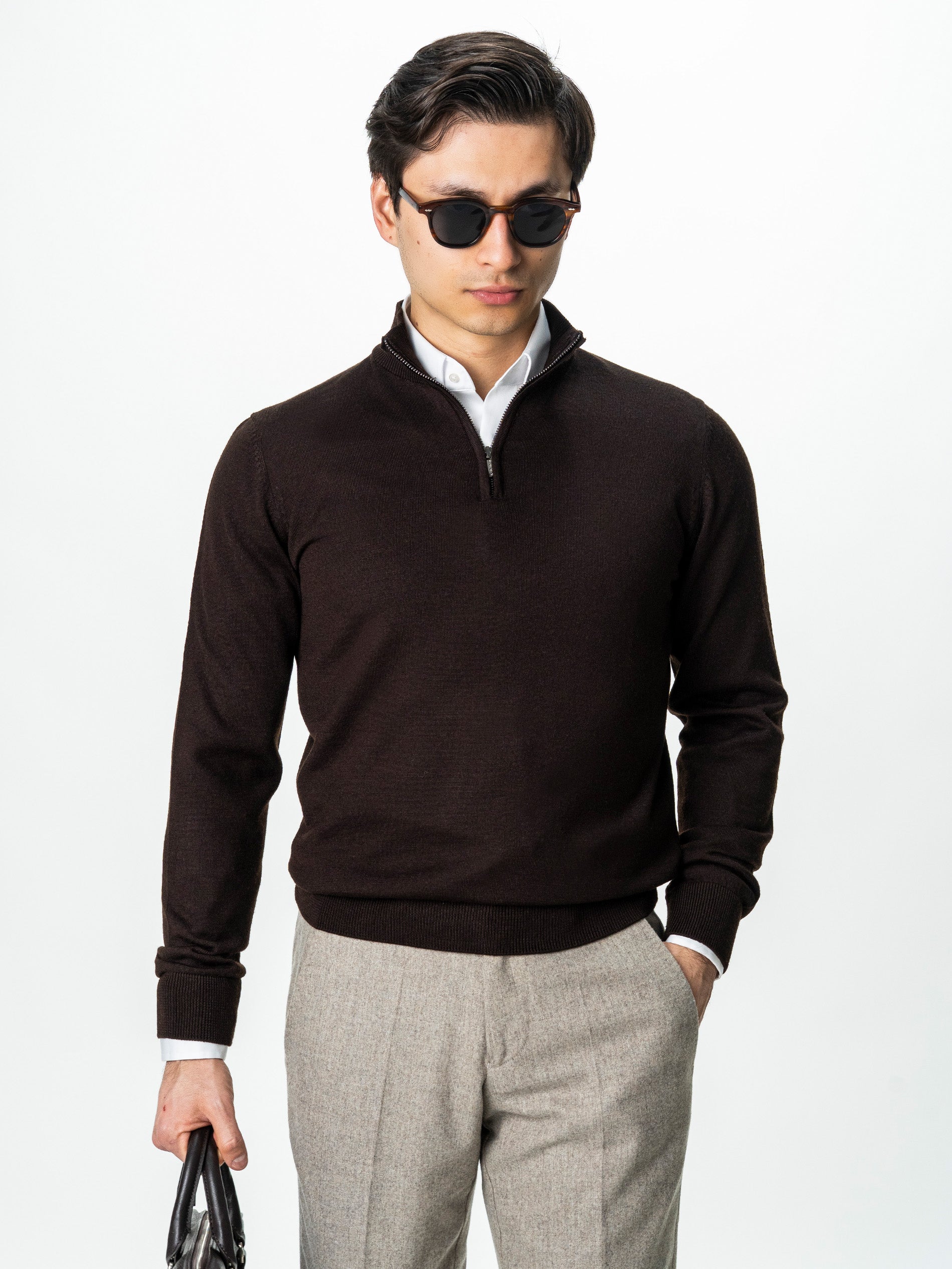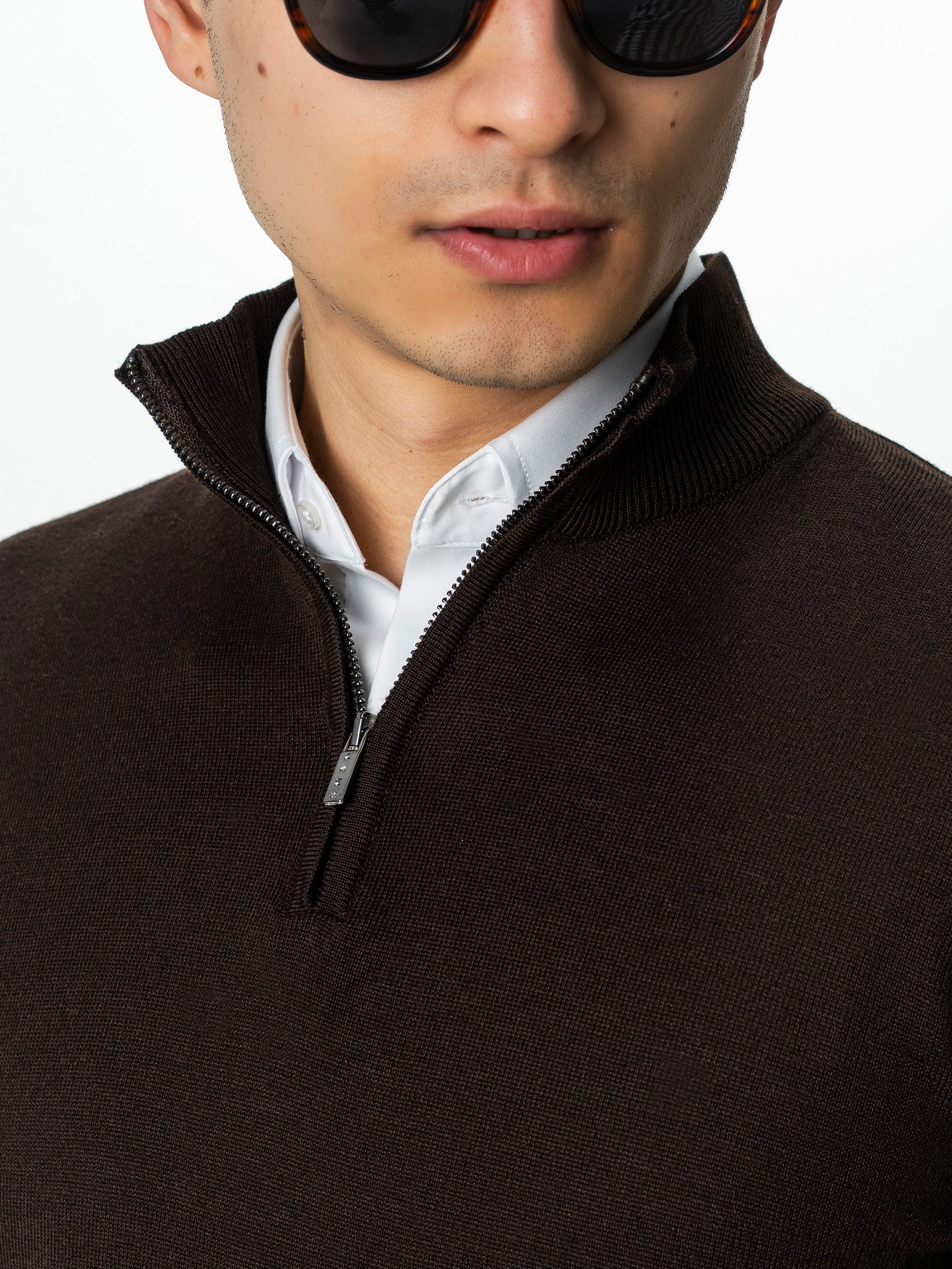 Pulover Cu Fermoar Office Barbati Maro Inchis Lana Merinos Falco BMan0003, un esențial pentru sezonul racoros de toamnă și iarnă, perfect adaptat pentru mediul de birou, business, și nu numai. Cu o croială modernă și o combinație de materiale de cea mai înaltă calitate, acest pulover reprezintă alegerea ideală pentru bărbații ce apreciază eleganța și confortul în fiecare detaliu.