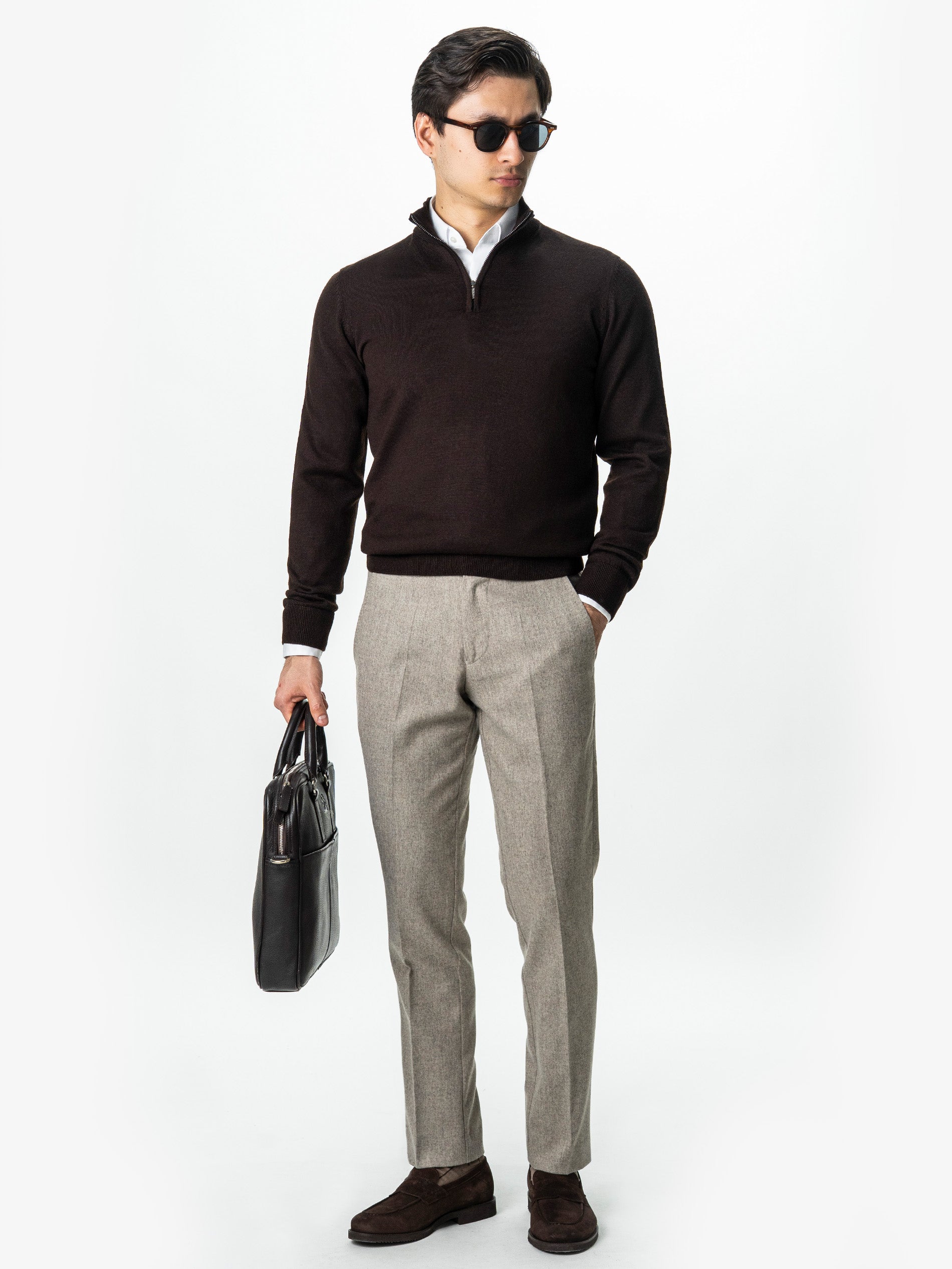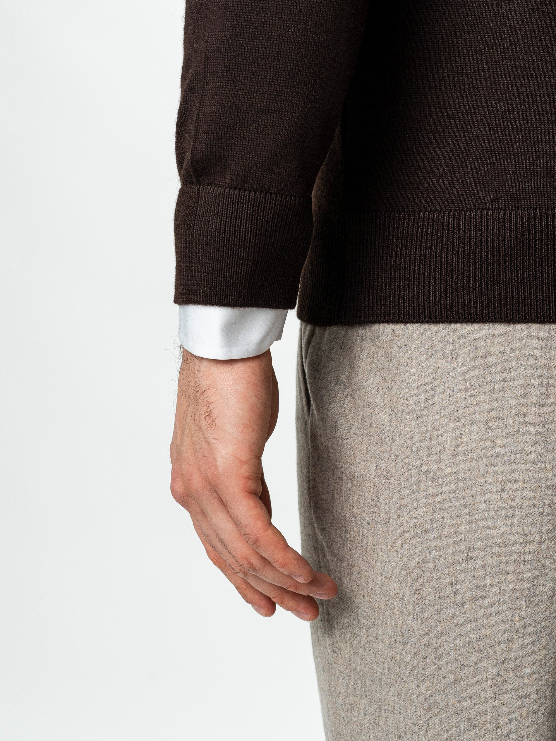 Tesătură de calitate superioară: Fabricat dintr-un amestec de 72% lână merinos și 28% PC Bralon Acry, Brand Falco (Lana Italiana), puloverul îmbină calitatea excepțională a lânii cu durabilitatea și ușurința de întreținere a acrilonului. Această combinație oferă un material subțire, dar termoizolant, perfect pentru zilele reci de toamnă și iarnă.