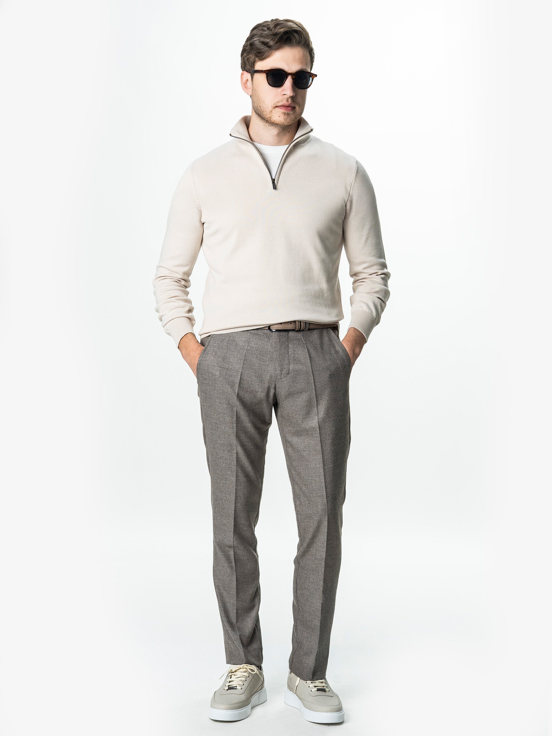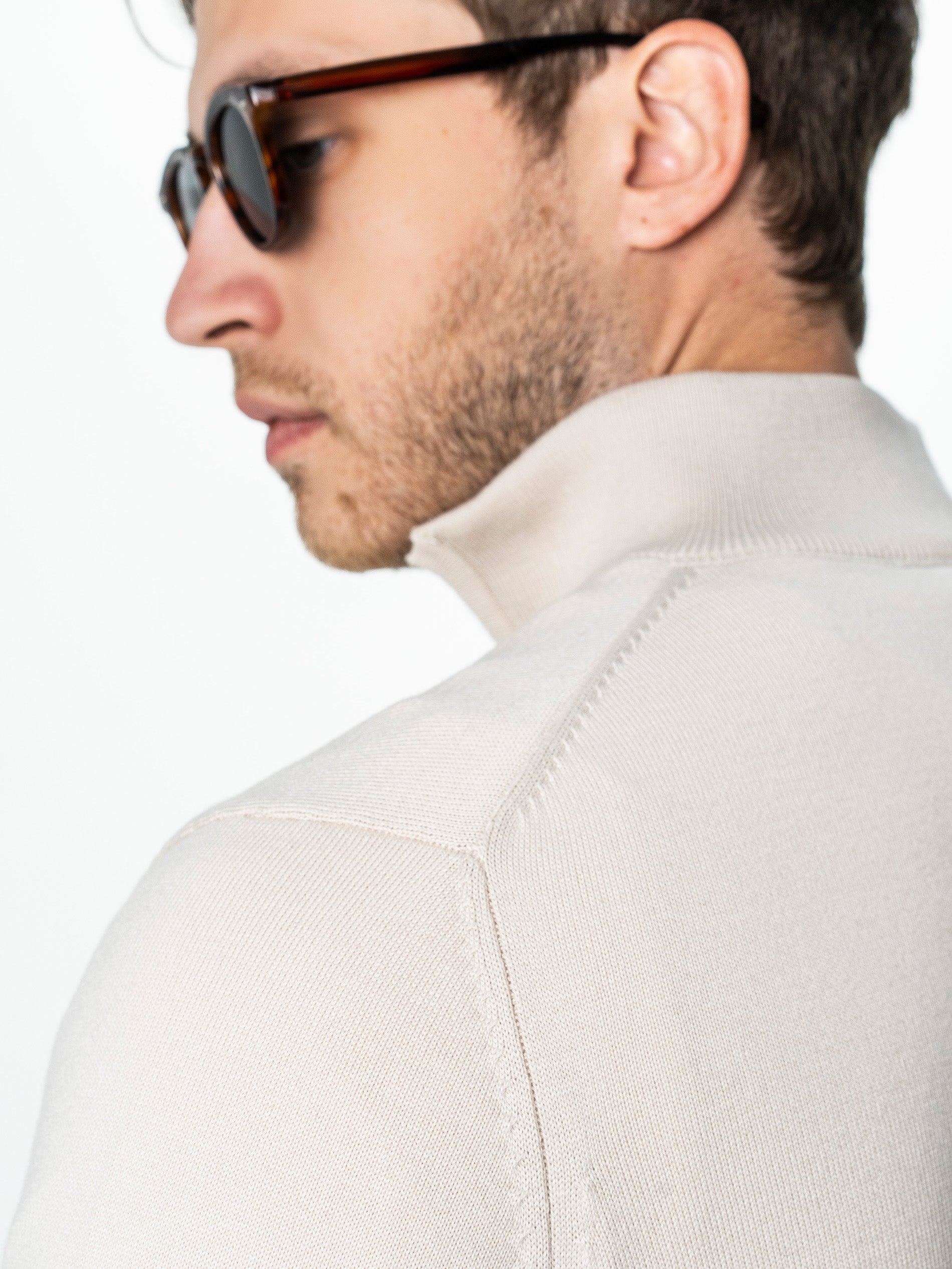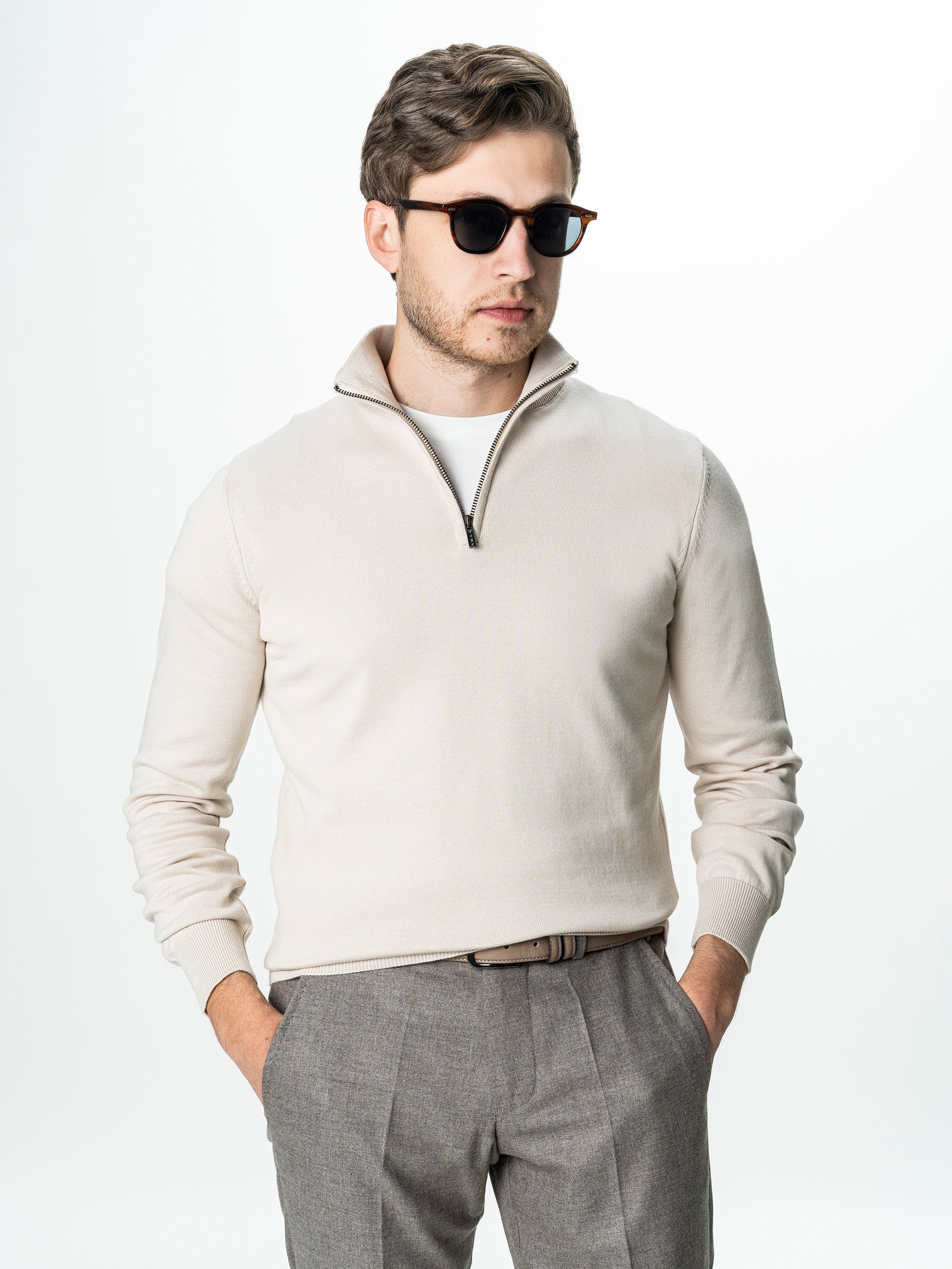 Pulover Barbati Crem Cu Fermoar Office Din Bumbac Levent BMan0001, redefinește confortul și stilul în modul cel mai sofisticat. Fabricat din 100% Bumbac tricotat natural, marca Levent Cottone (tricot spaniol) acest pulover cu fermoar îmbină calitatea spaniolă cu rafinamentul tradiției. Cu o versatilitate deosebită, acest pulover poate fi purtat cu încredere în contextul biroului, business casual sau în zilele relaxante de weekend.