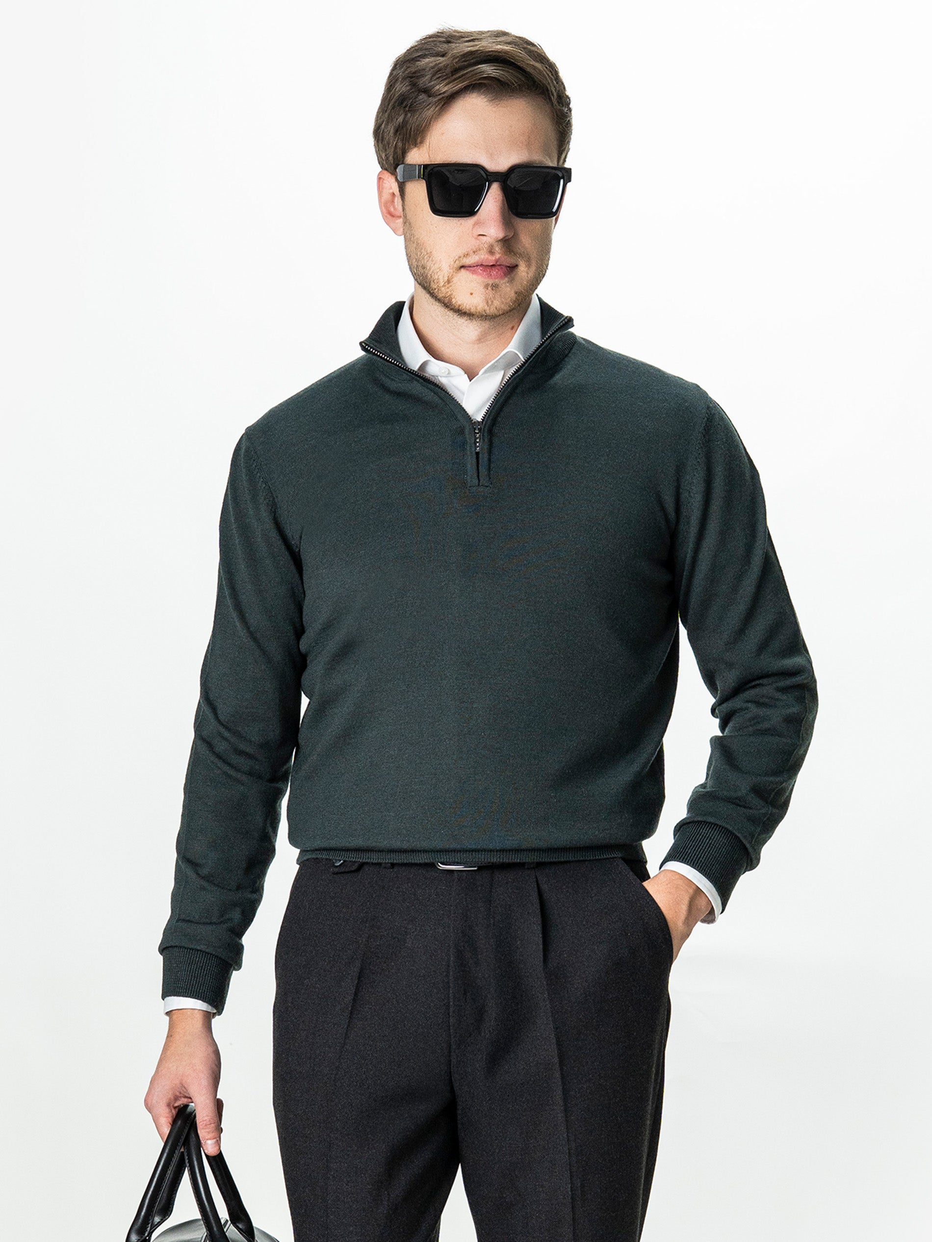 Guler elegant / confortabil, cu terminație până în barbie: Când fermoarul este închis, gulerul puloverului oferă o terminație elegantă, ajungând până în zona bărbiei. Această atenție la detalii conferă nu doar un look sofisticat, ci și un confort sporit în timpul sezonului rece.