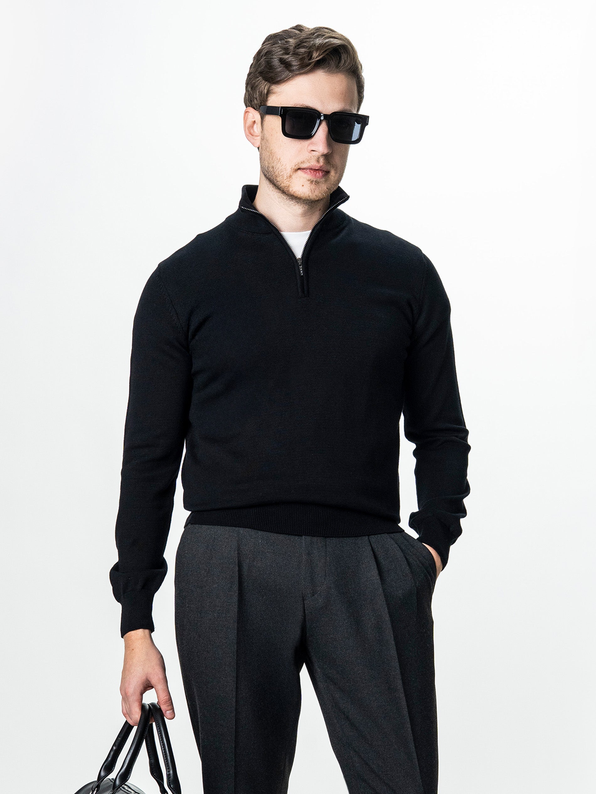 Pulover Cu Fermoar Office Barbati Negru Bumbac Levent Cottone BMan0001, redefinește confortul și stilul în modul cel mai sofisticat. Fabricat din 100% Bumbac tricotat natural, marca Levent Cottone (tricot spaniol) acest pulover cu fermoar îmbină calitatea spaniolă cu rafinamentul tradiției. Cu o versatilitate deosebită, acest pulover poate fi purtat cu încredere în contextul biroului, business casual sau în zilele relaxante de weekend.