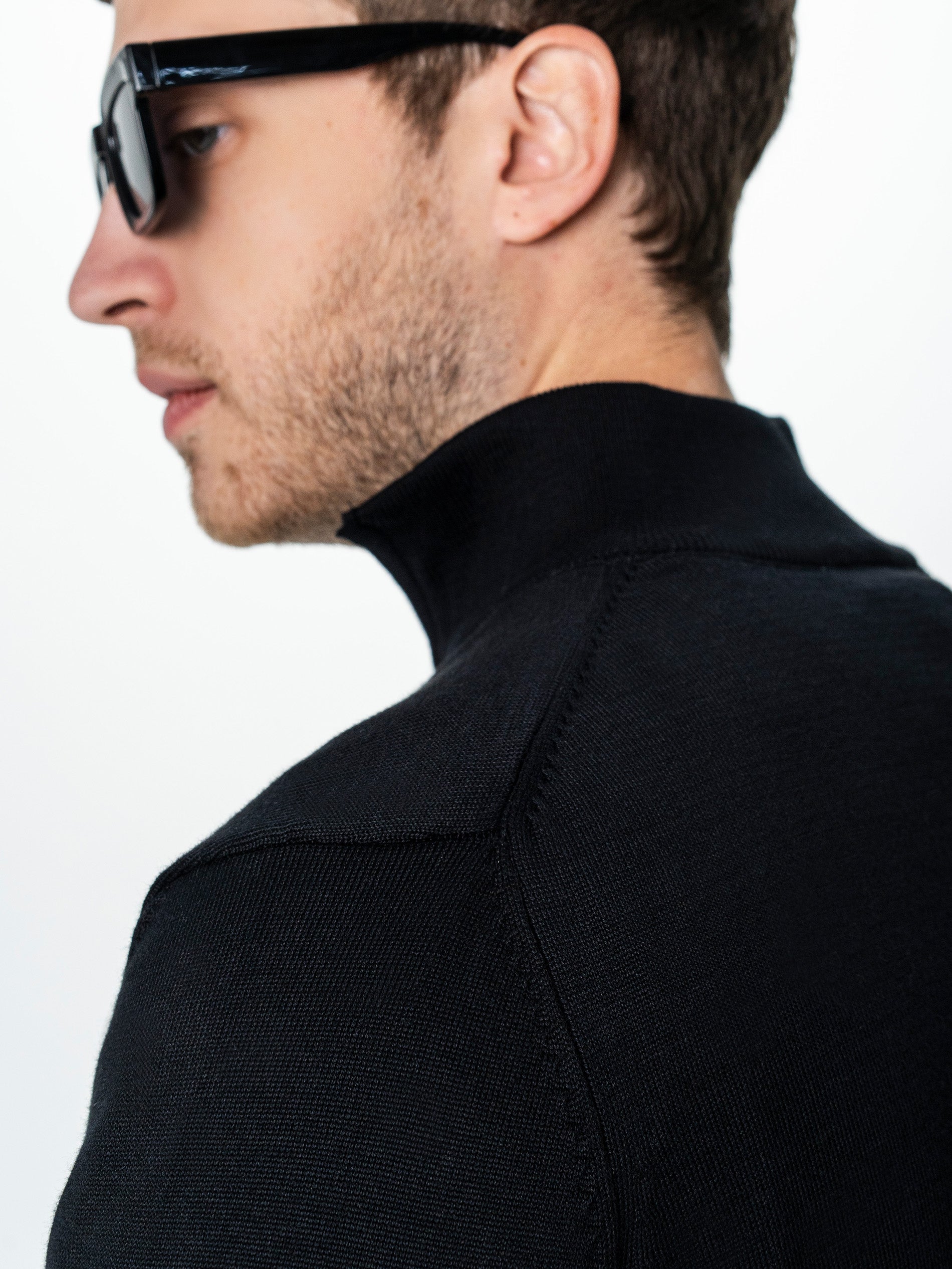 Guler elegant până în barbie: Gulerul puloverului se închide cu eleganță până în zona bărbiei, oferind un aspect rafinat și asigurând confortul dorit în sezonul rece.