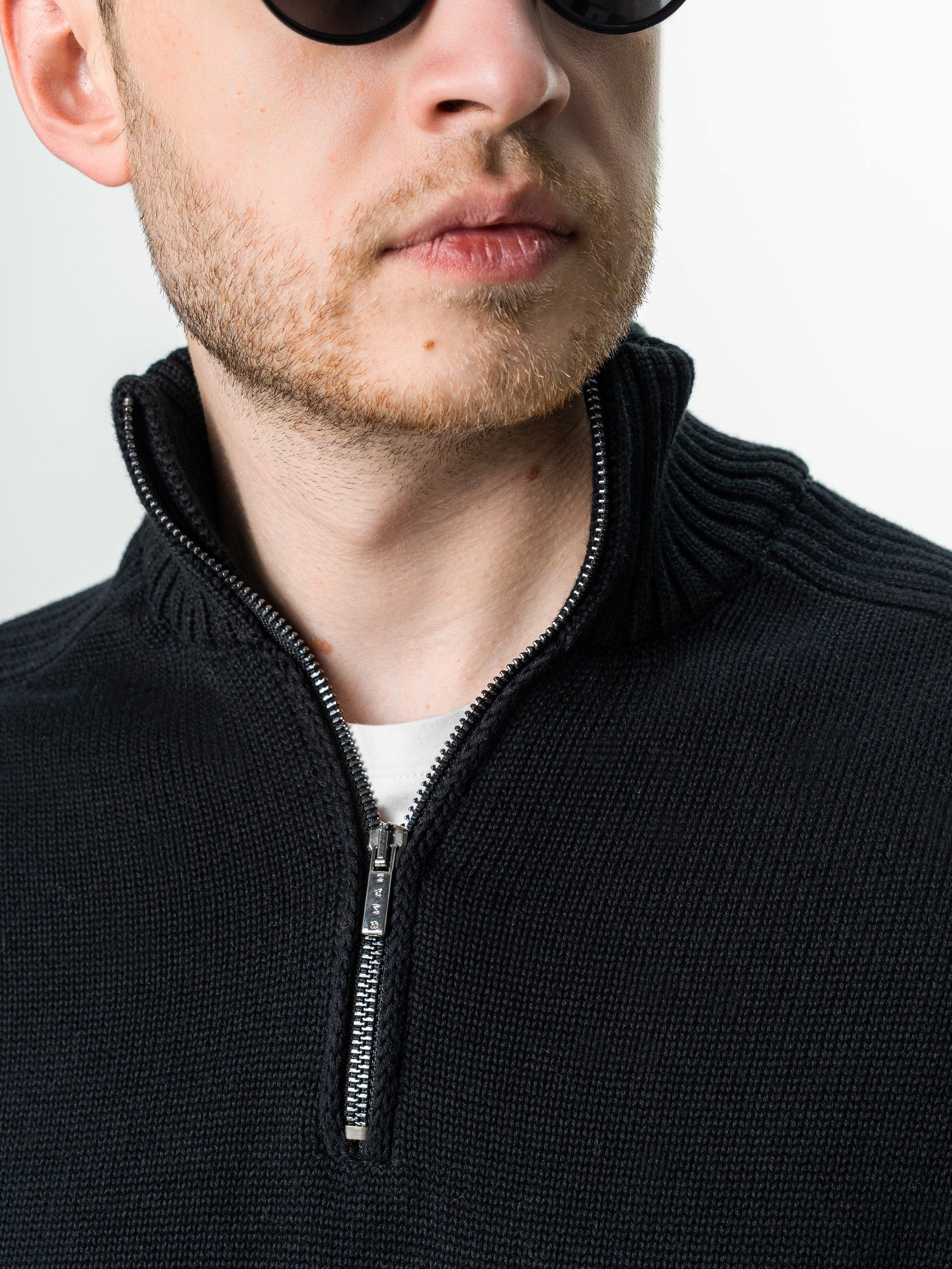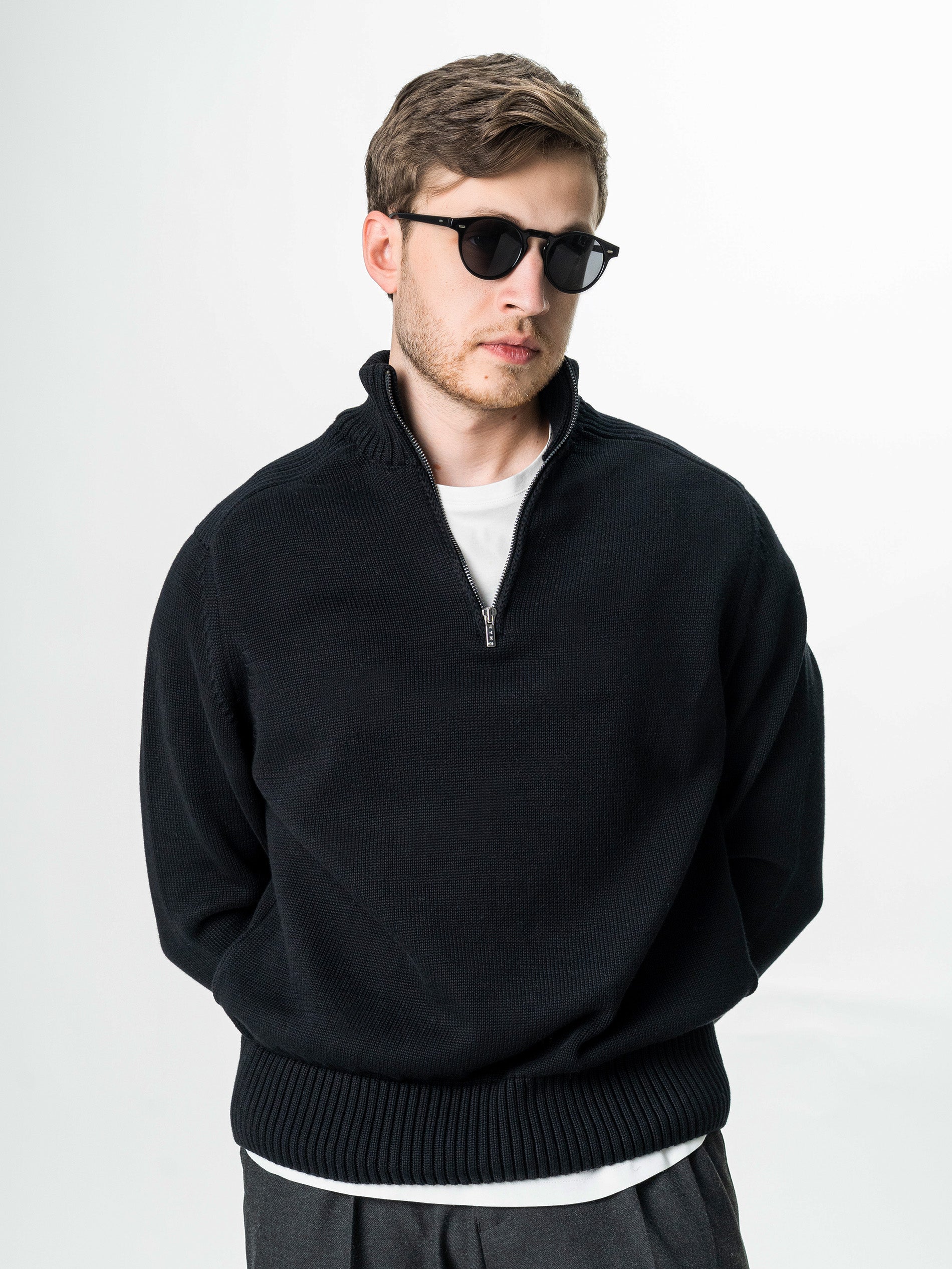 Pulover Barbati Negru Oversize 100% Bumbac Cu Fermoar BMan0037