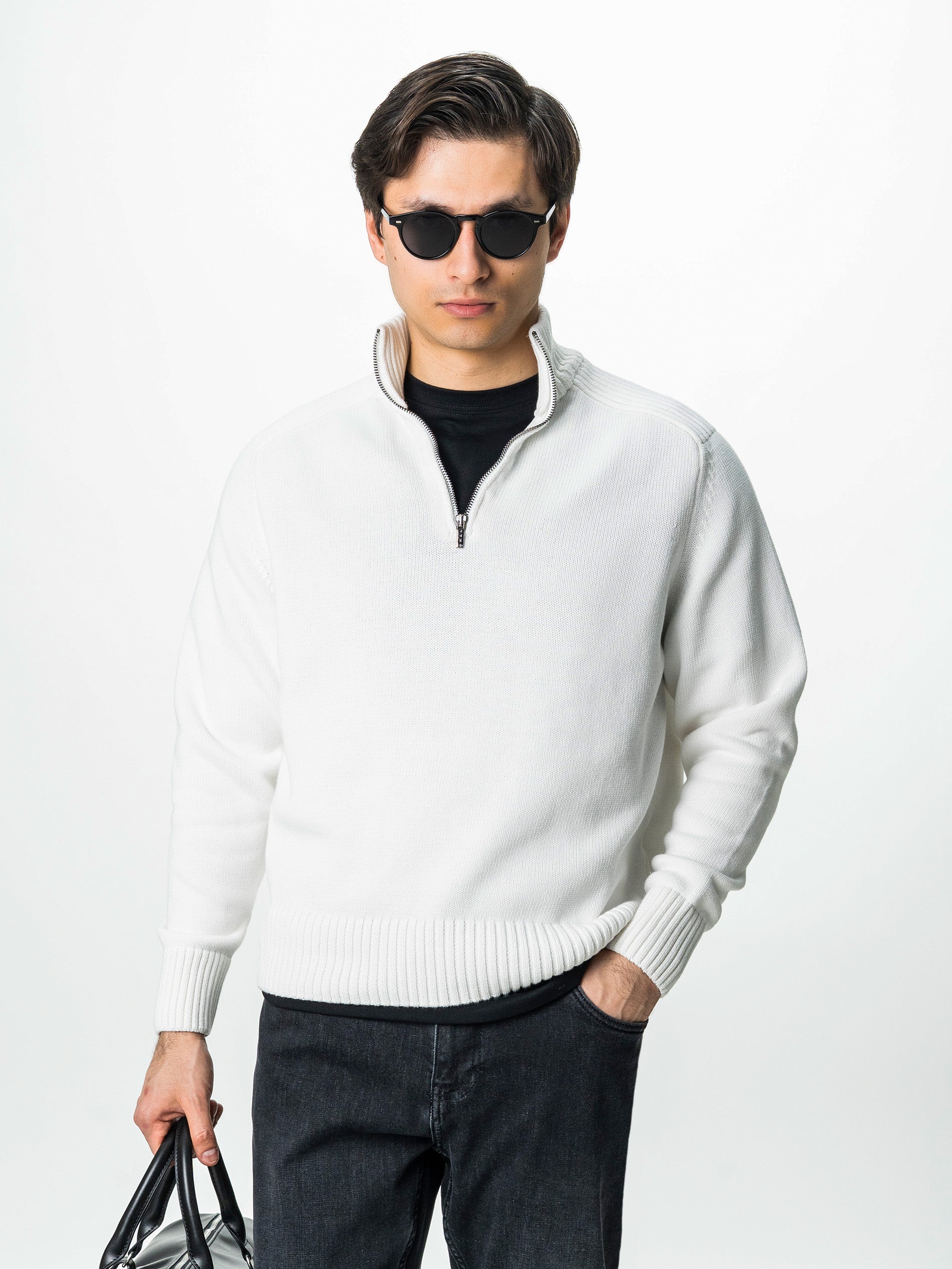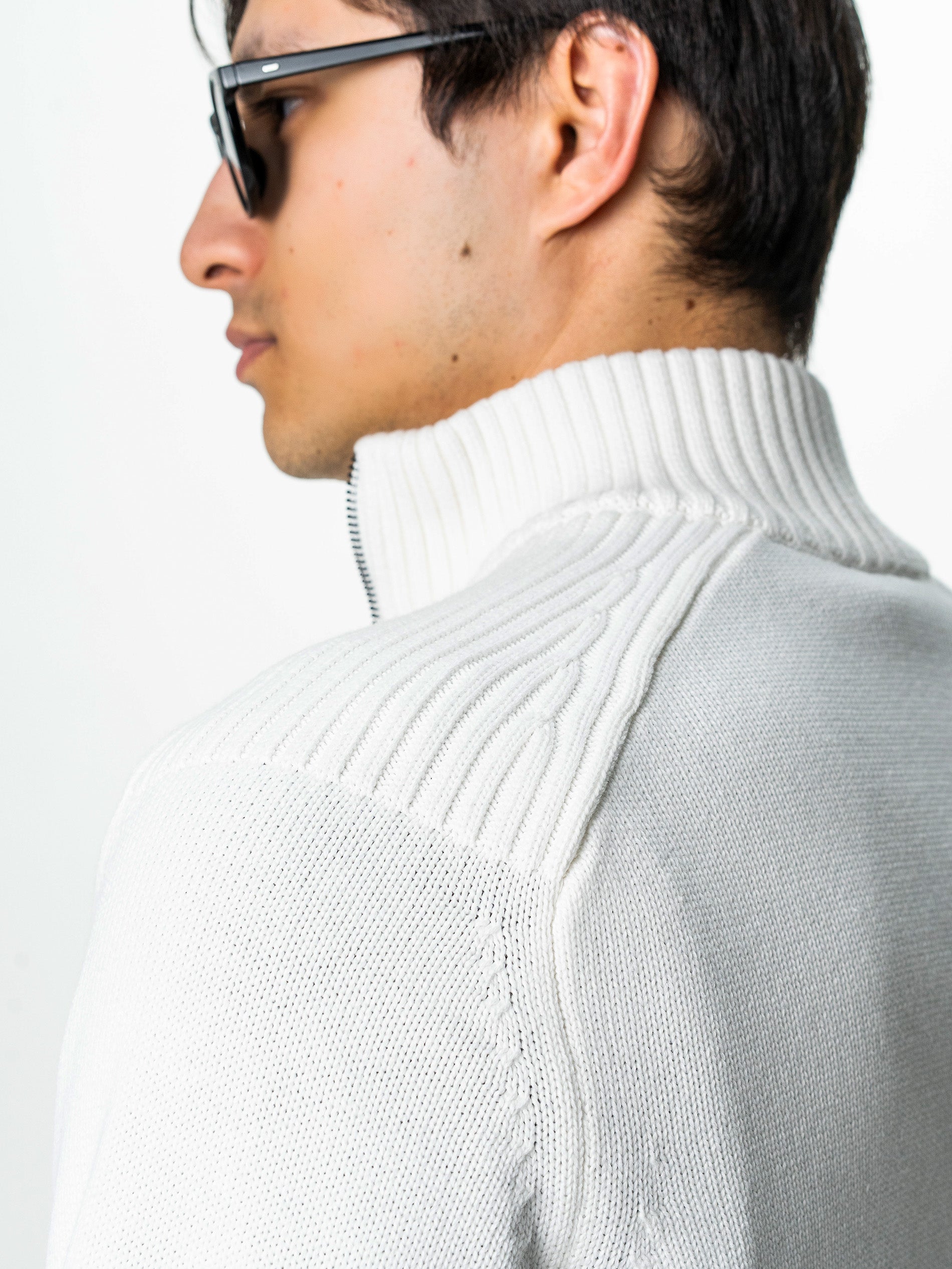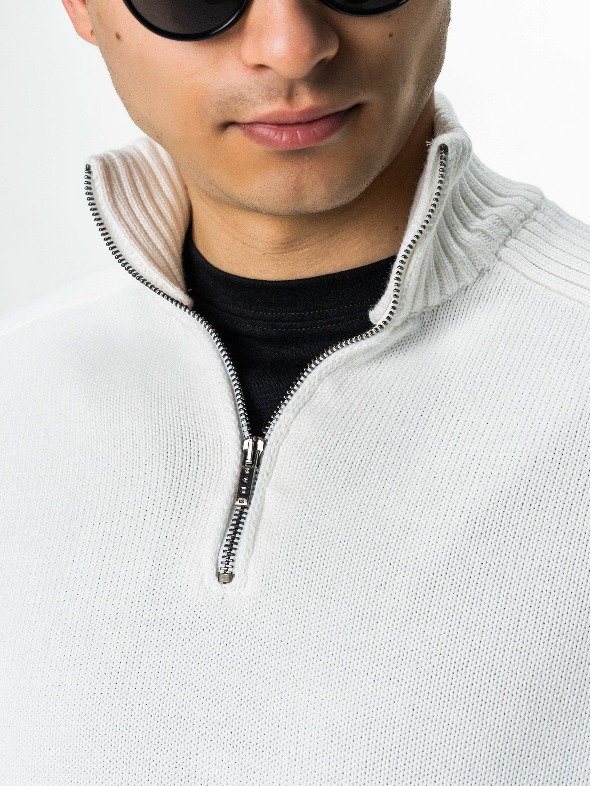 Pulover Barbati Alb Off White Oversize 100% Bumbac Cu Fermoar BMan0037