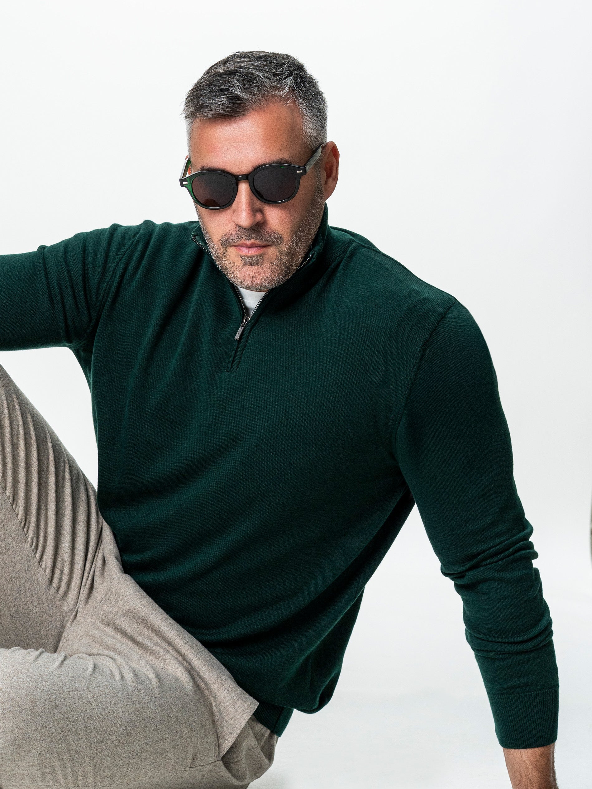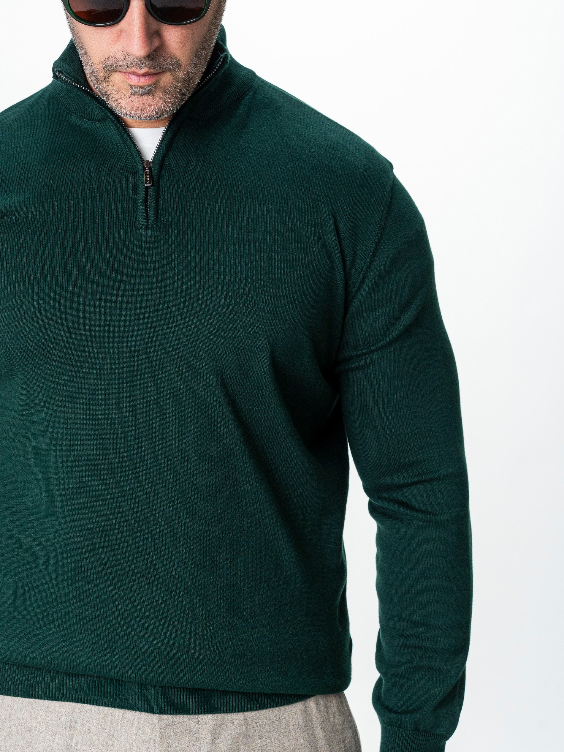 Traieste eleganța definită de un pulover ce redefinește confortul și stilul în modul cel mai sofisticat. Fabricat din 100% Bumbac tricotat natural, marca Levent Cottone (tricot spaniol) acest pulover cu fermoar îmbină calitatea spaniolă cu rafinamentul tradiției. Cu o versatilitate deosebită, acest pulover poate fi purtat cu încredere în contextul biroului, business casual sau în zilele relaxante de weekend.