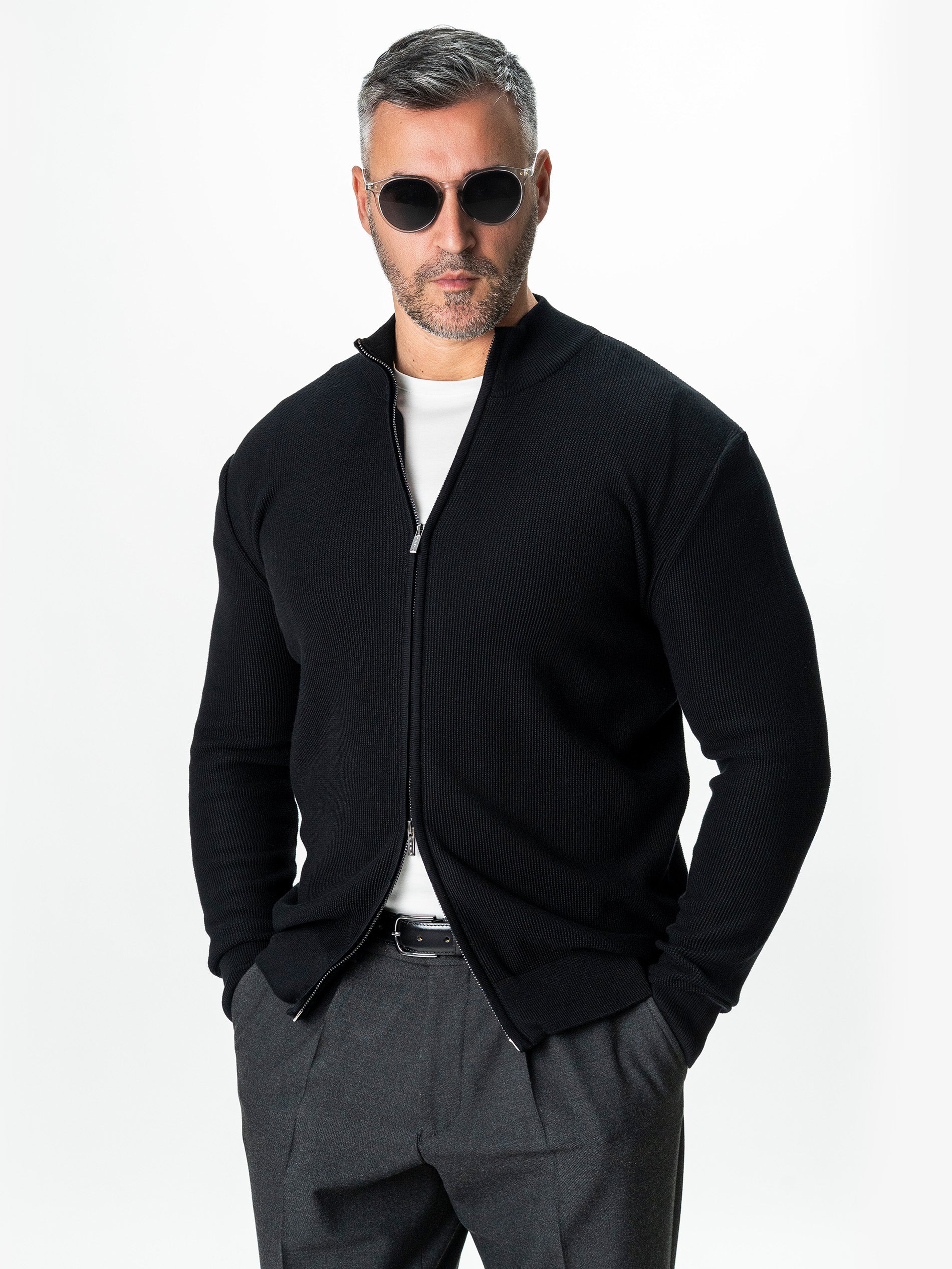 Pulover Barbati Negru Cu Fermoar 100% Bumbac BMan0029 este definitia confortului rafinat: tricotajul fin din bumbac 100% are o textura discreta, cu nervuri subtile care contureaza o silueta eleganta si moderna. Gulerul scurt si fermoarul dublu-sens permit variante de purtare versatile — inchis pana la gat pentru protectie sau deschis pentru layering. Croiala comfort fit urmeaza linia corpului fara a strange, iar finisajele minimaliste transforma piesa intr-un element esential pentru tinute smart-casual si office-relaxed.