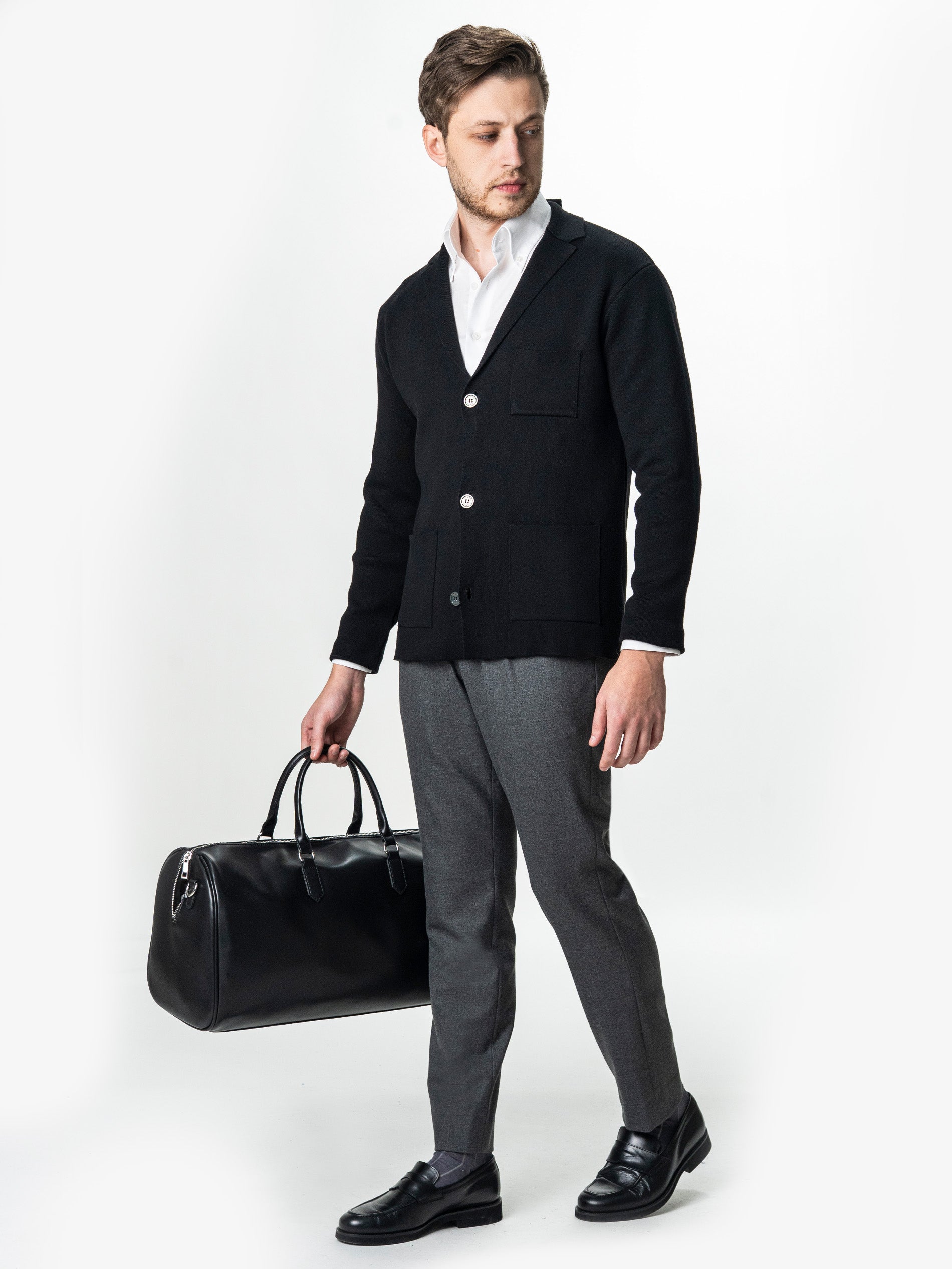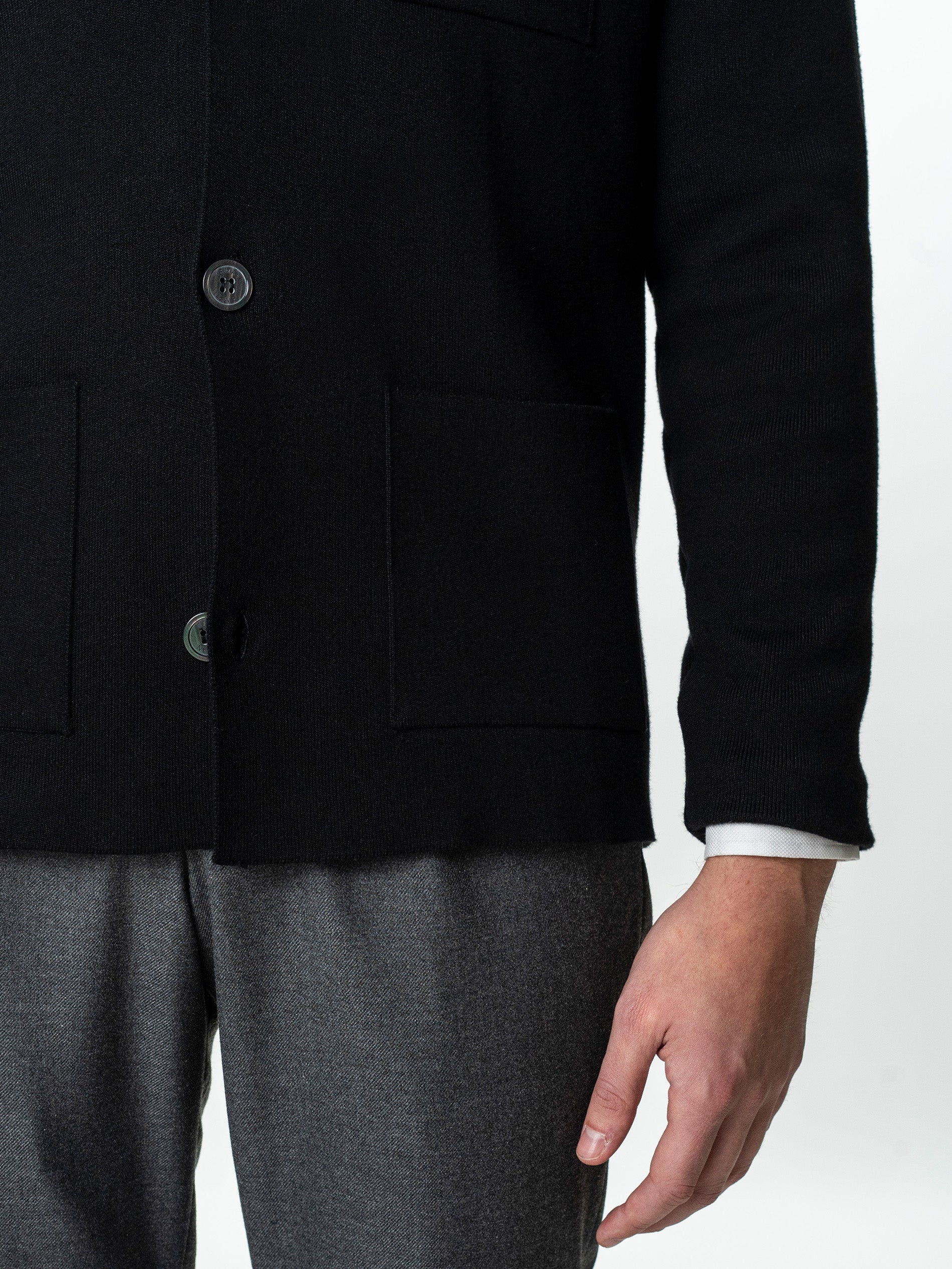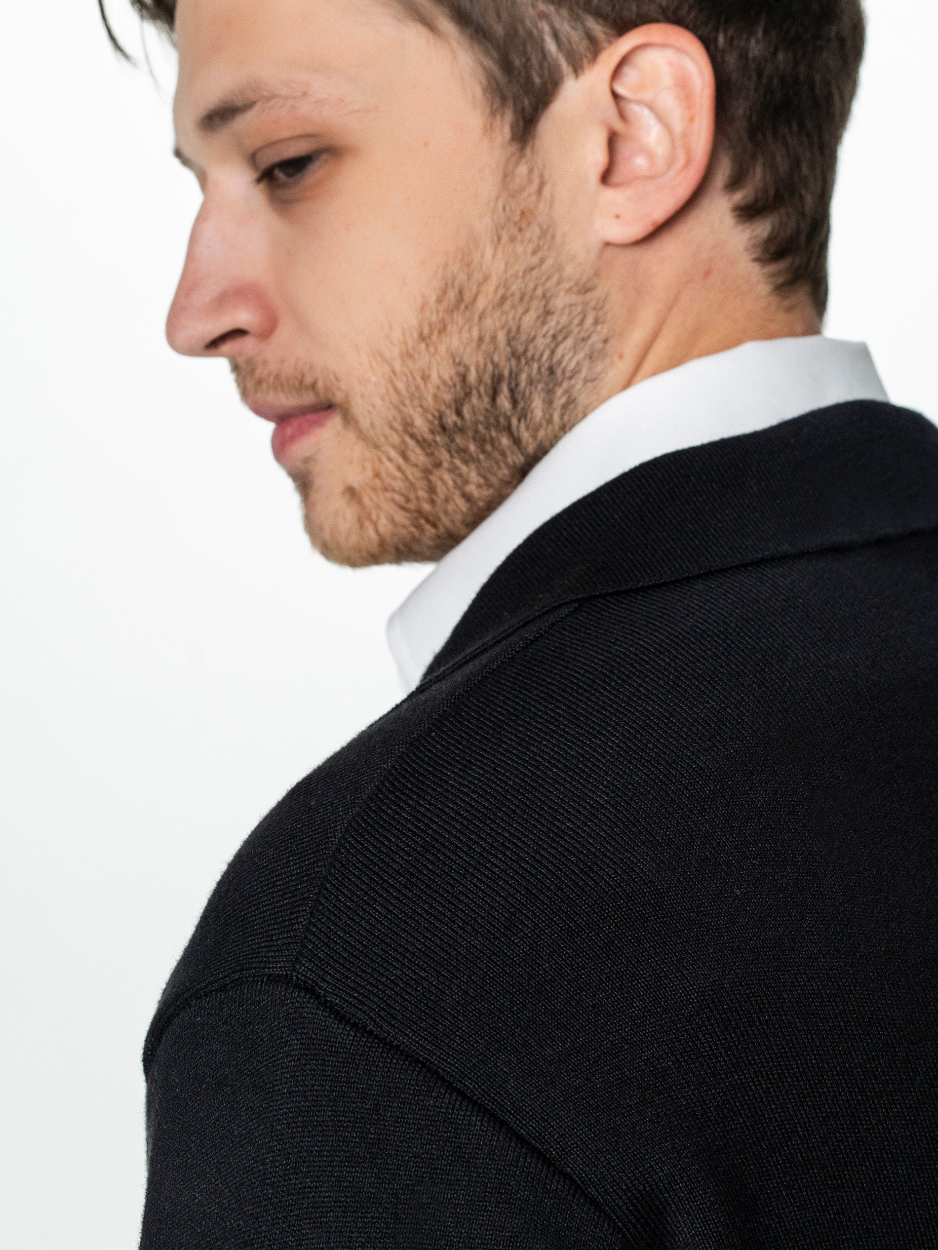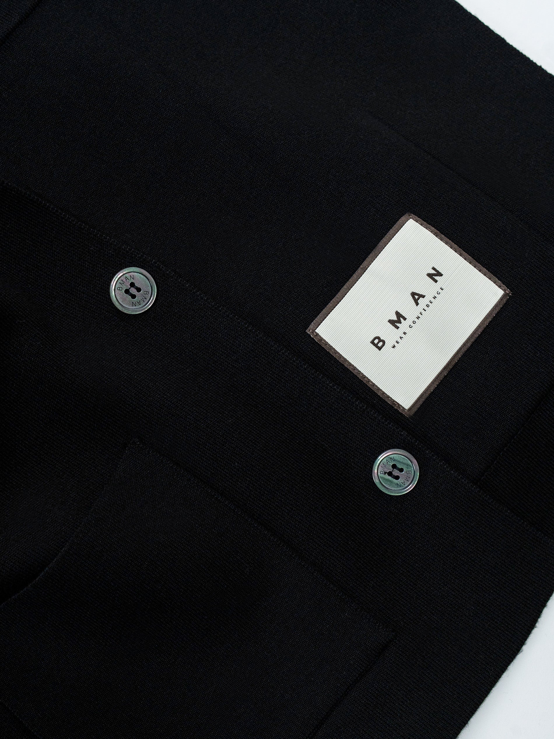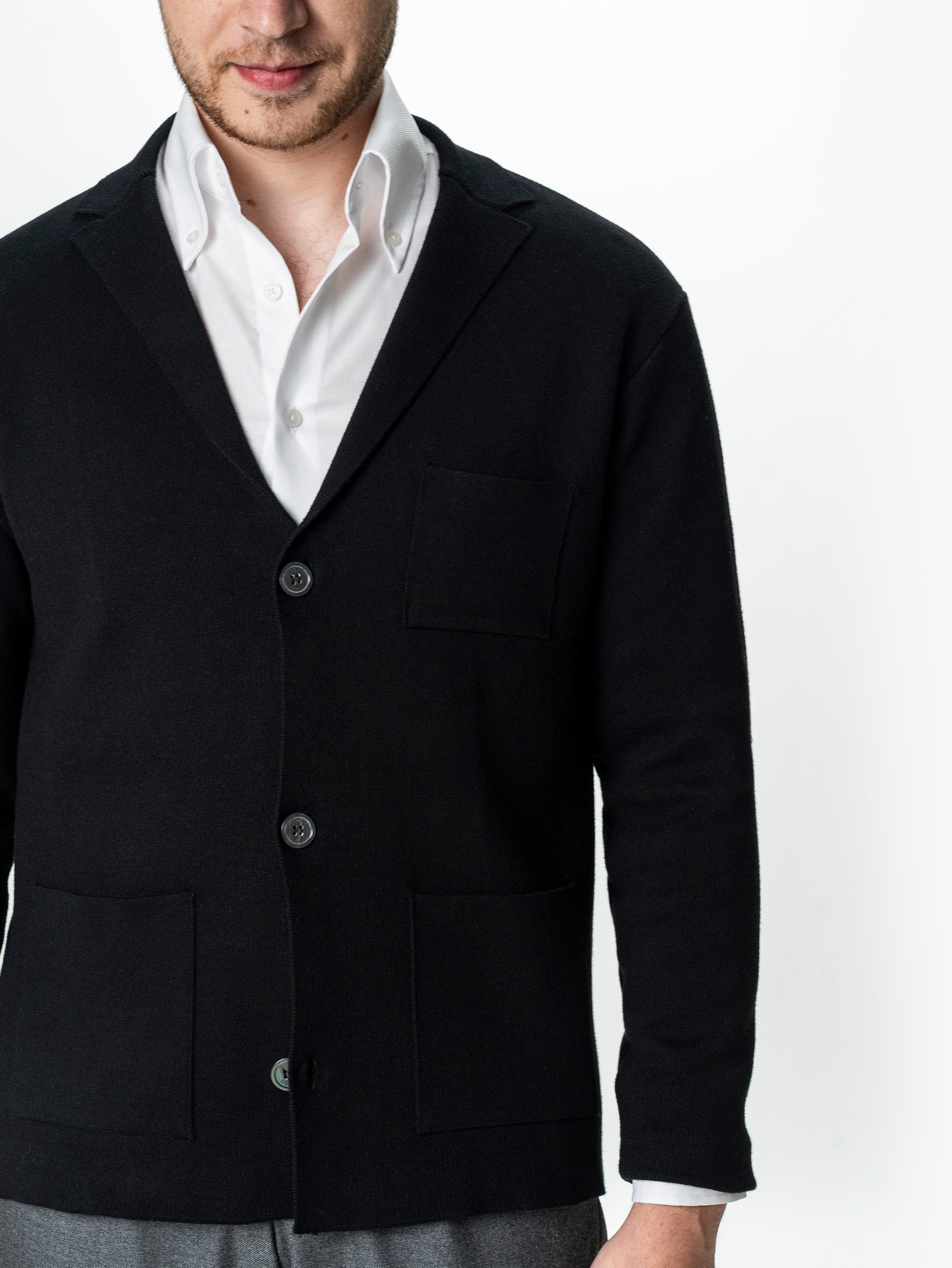 Pulover Cardigan Barbati Negru Cu Nasturi 100% Bumbac BMan0020 este realizat din bumbac pieptănat de înaltă calitate, ideal pentru zilele mai răcoroase. Cu un design de tip overshirt, este perfect pentru a înlocui o jachetă sau un sacou casual. Confecționat cu un guler crestat și trei nasturi pentru un aspect rafinat, puloverul se potrivește ușor cu un tricou sau o cămașă, fiind o alegere excelentă atât pentru un look relaxat, cât și pentru unul mai formal. Manecile au o terminatie simplă, fără elastic, oferind un aer curat și minimalist. În plus, puloverul dispune de două buzunare laterale capacibile și unul pe interior, pentru un plus de confort și funcționalitate.