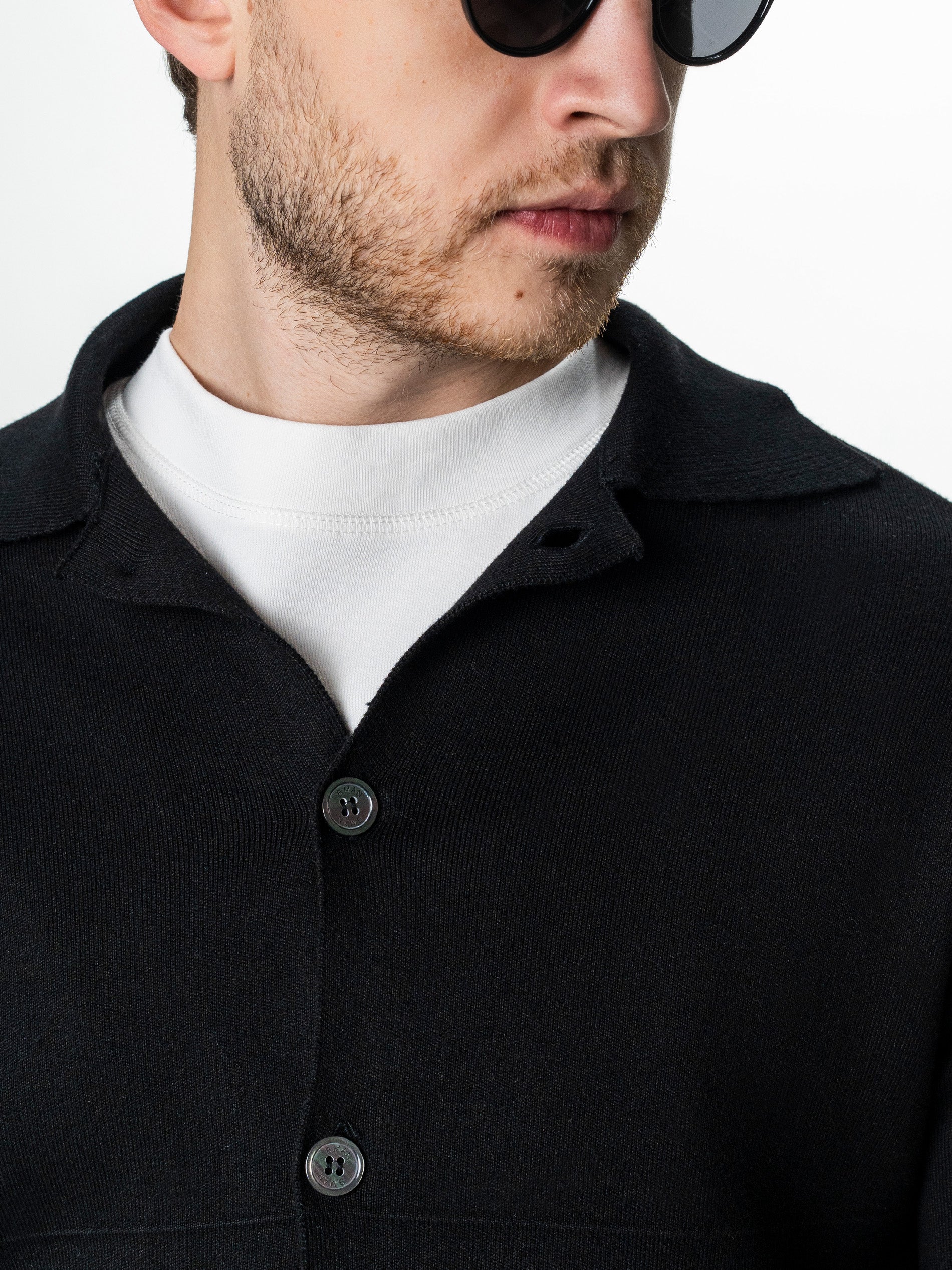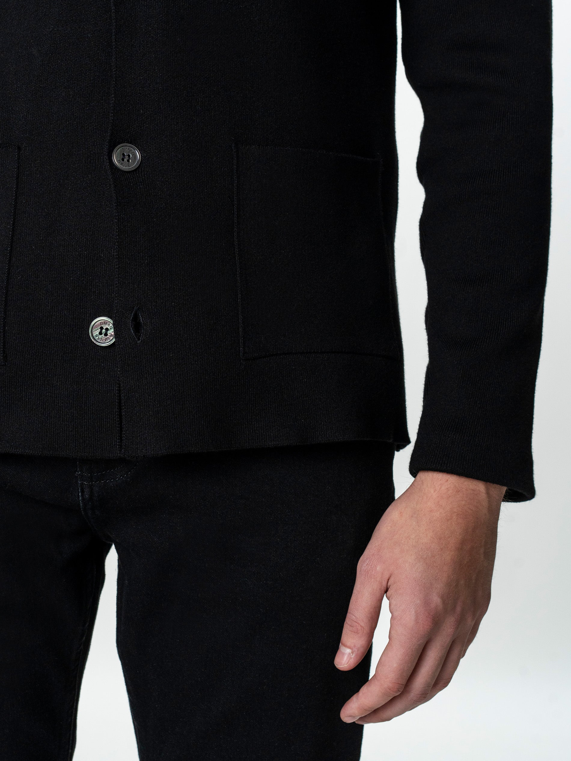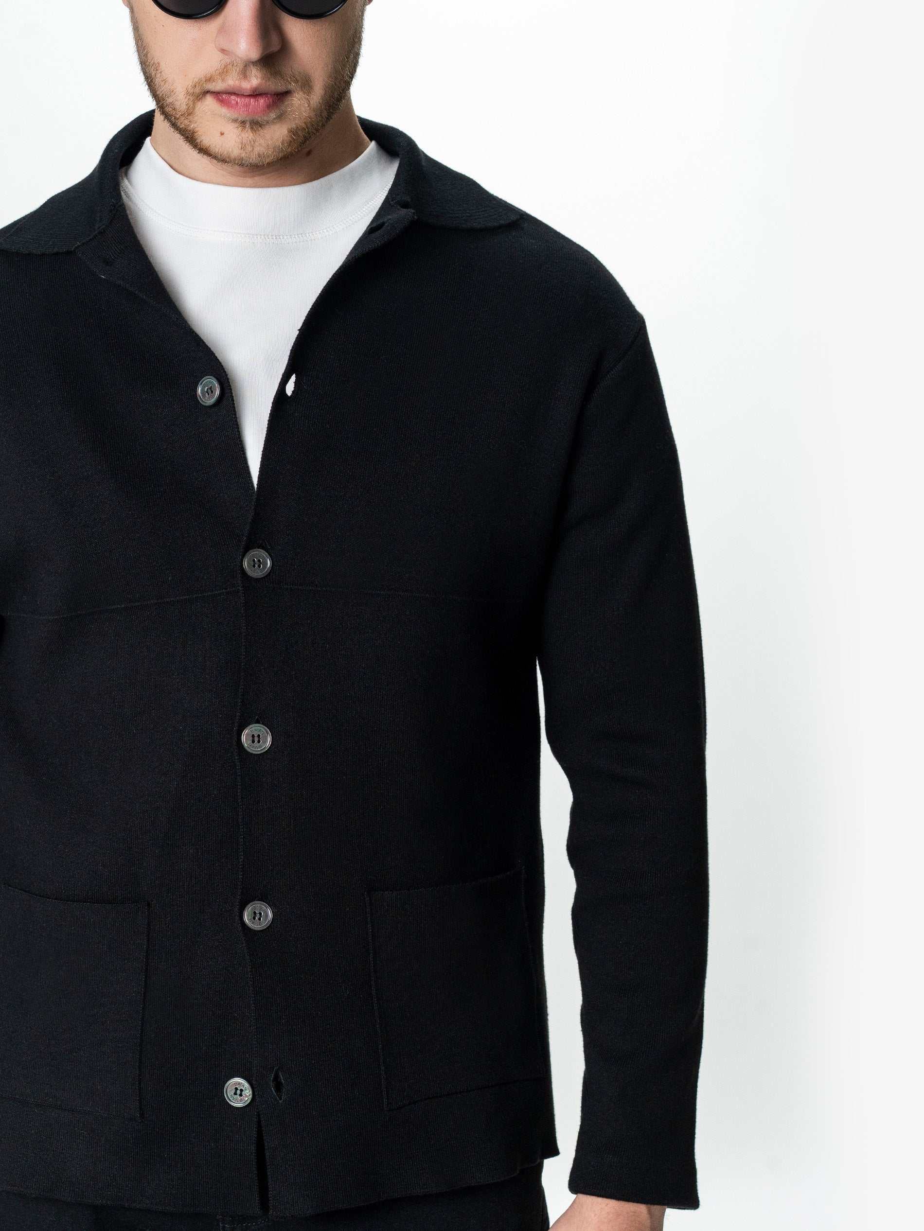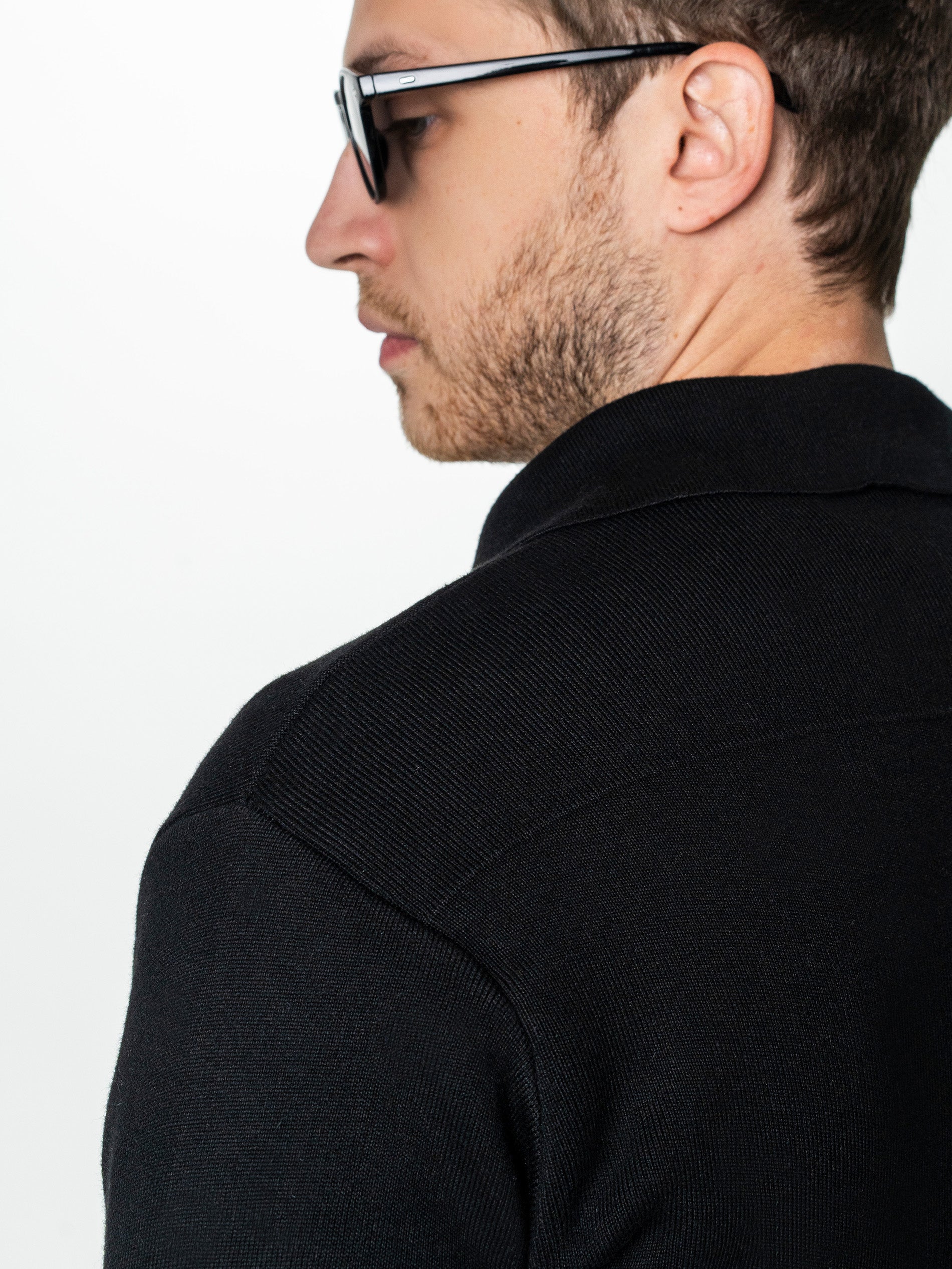 Pulover Lana Merinos Barbati Negru Tip Jacheta Cu Nasturi Bman0024