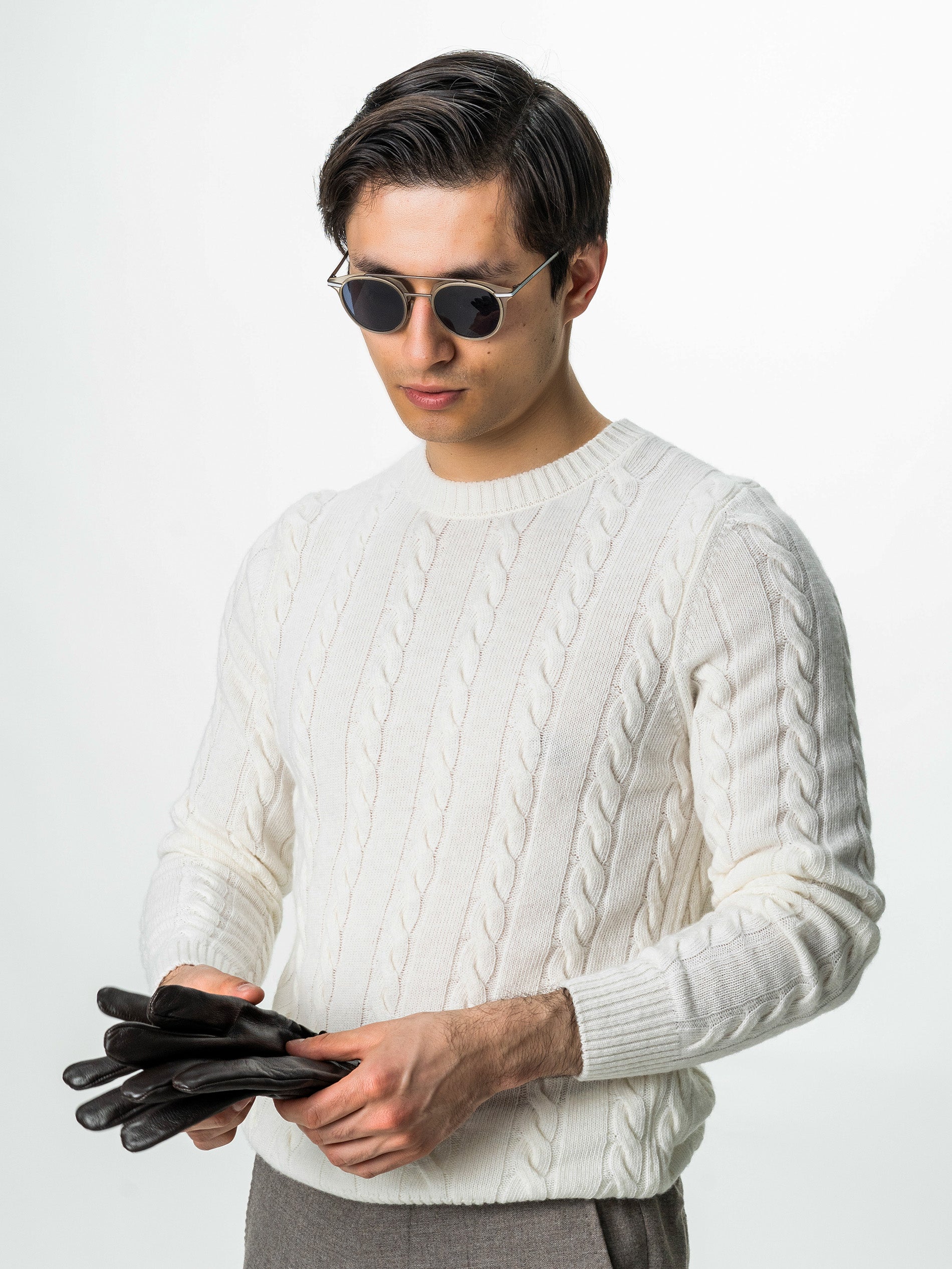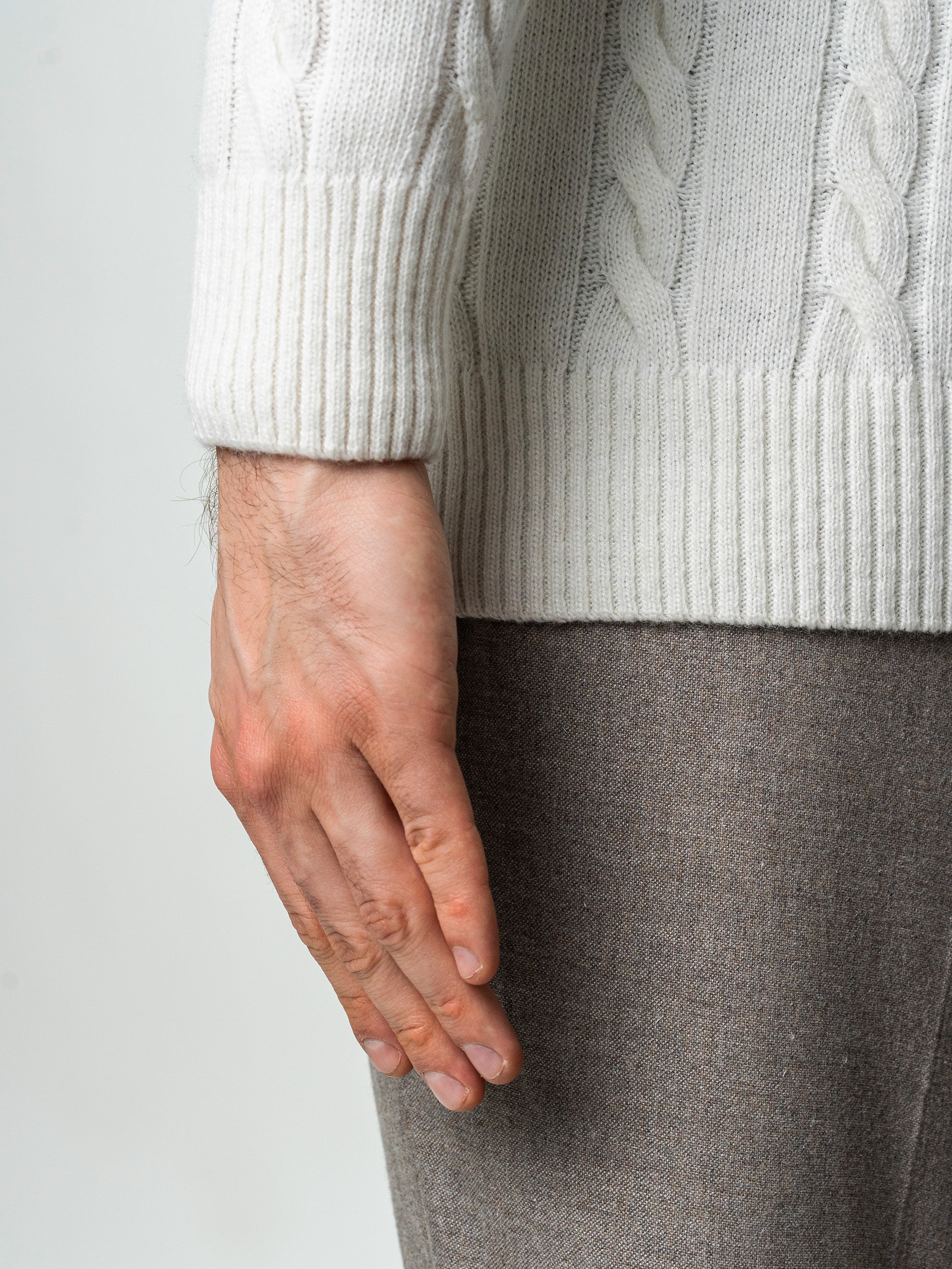 Pulover Barbati Crem Deschis Ecru Toamna & Iarna Din 100% Lambswool Torsada BMan0010, cu un sofisticat imprimeu torsadă, este alegerea ideală pentru a vă menține călduros și stilat în sezonul rece. Acest pulover din lână lambswool reprezintă un amestec perfect între eleganță și confort. Cu un design clasic și un material de cea mai înaltă calitate, acesta va deveni rapid o piesă de bază în garderoba dumneavoastră de iarnă.