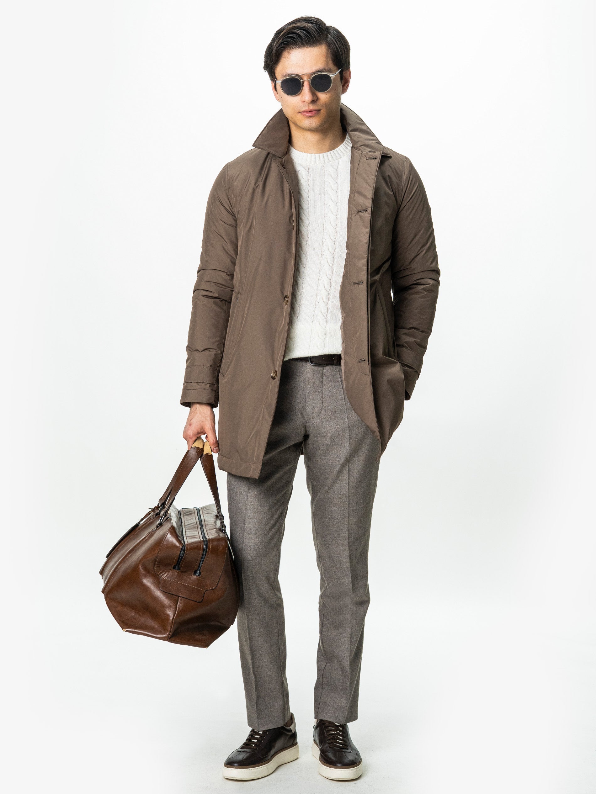 Modelul din imagine are înălțimea de 1,80 m, 76 kg și poartă mărimea S.