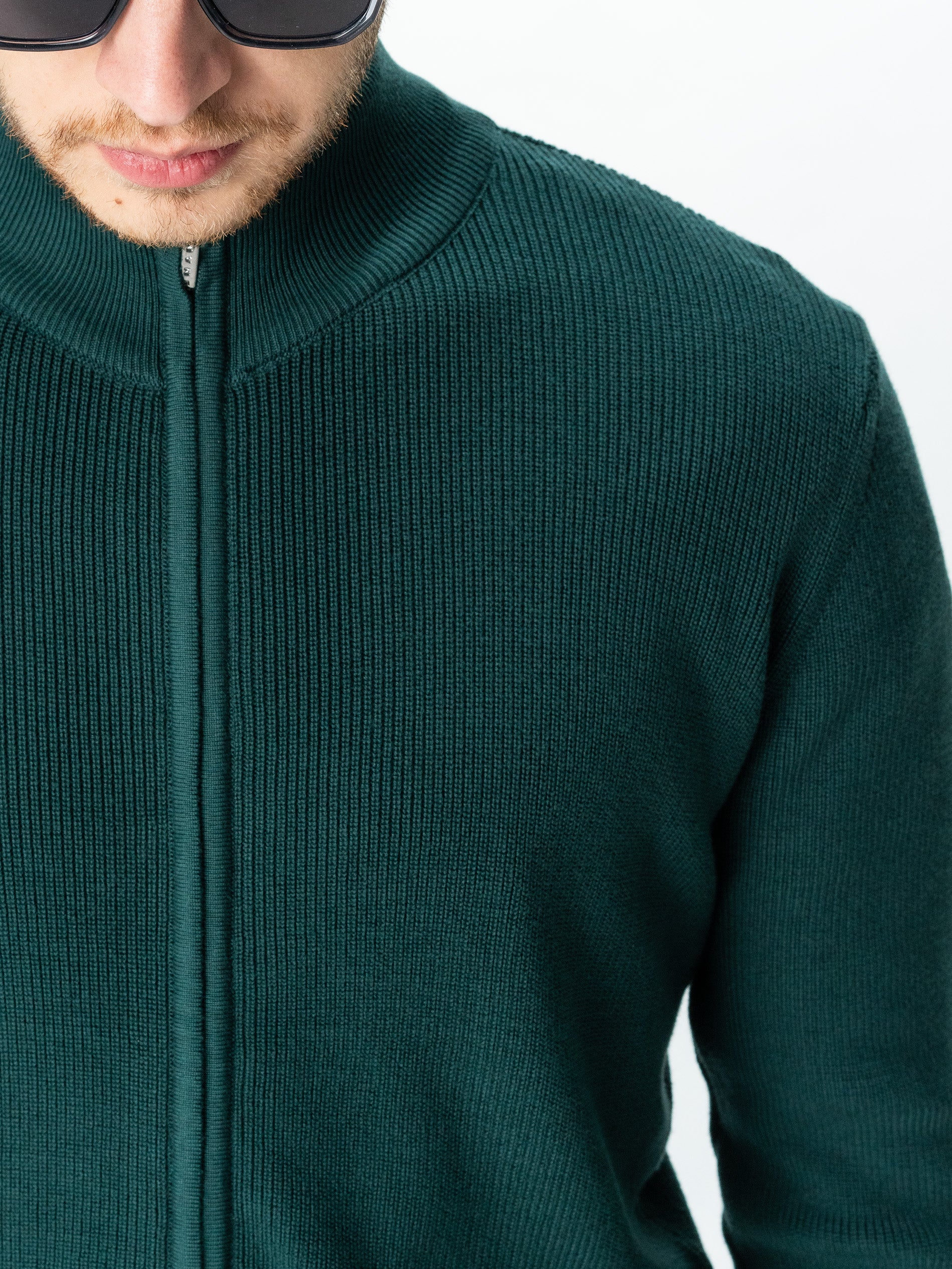 Pulover Cu Fermoar Lung Tip Cardigan Barbati Verde Bumbac Texturat BMan0004