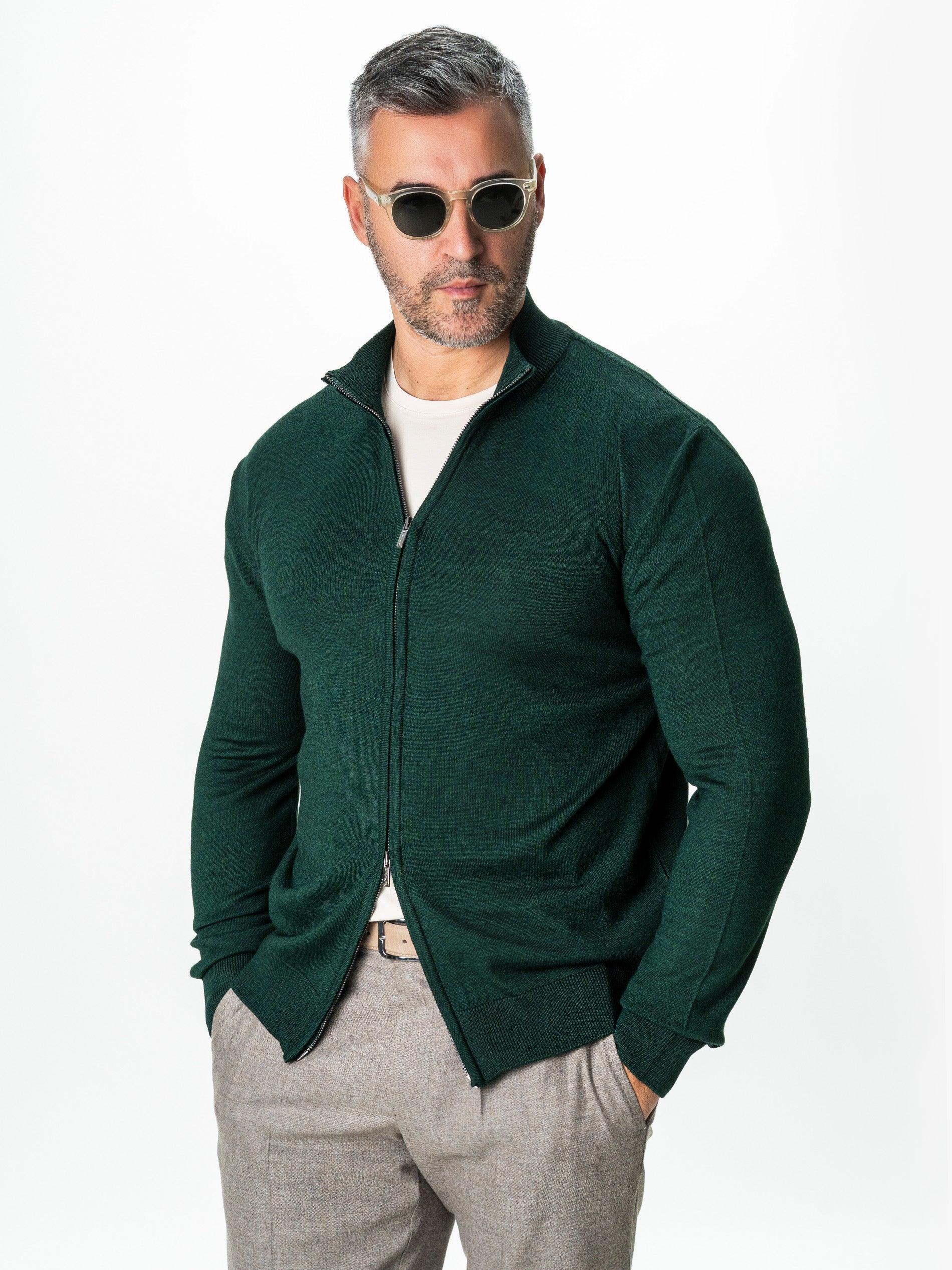 Pulover Cu Fermoar Lung Barbati Verde Din Lana Merinos Falco BMan0005 descoperă puloverul de bărbați cu fermoar dublu lung, un esențial pentru sezonul racoros de toamnă și iarnă, perfect adaptat pentru mediul de birou, business, și nu numai. Cu o croială modernă și o combinație de materiale de cea mai înaltă calitate, acest pulover reprezintă alegerea ideală pentru bărbații ce apreciază eleganța și confortul în fiecare detaliu.