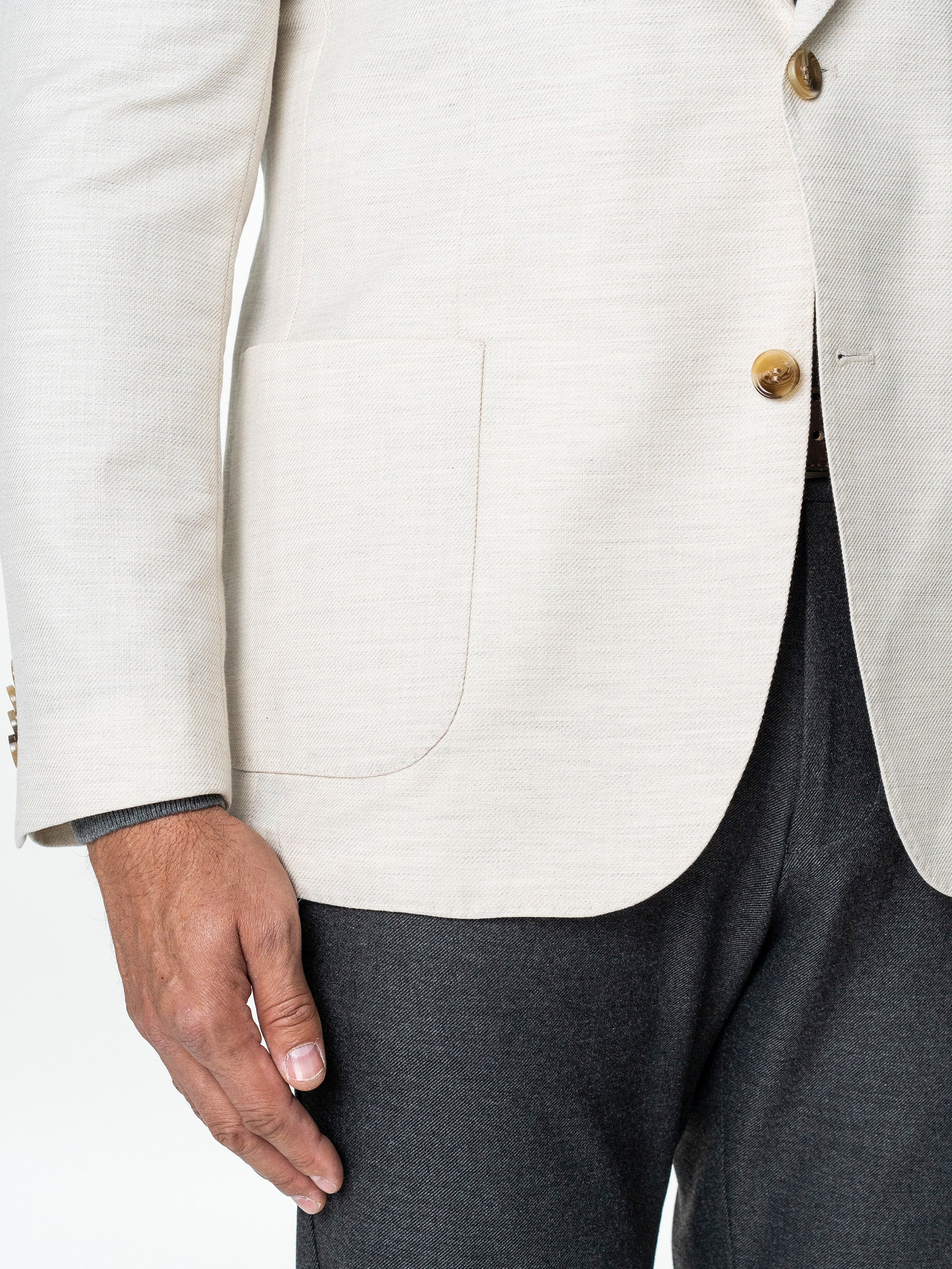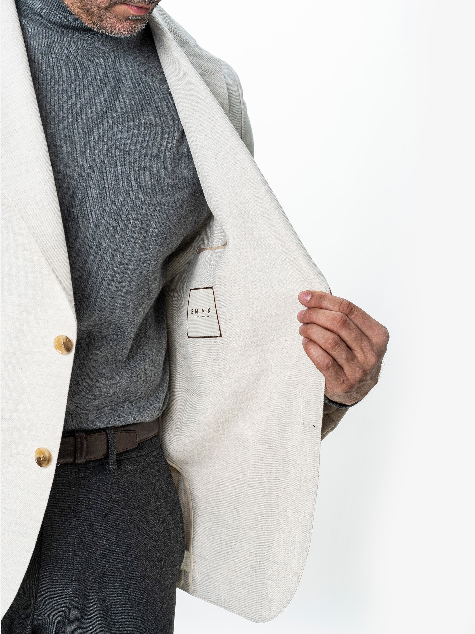 Sacou Barbati Crem Vara Necaptusit Lana Vitale Barberis BMan0050, cu rever crestat este confectionat dintr-o tesatura de înaltă calitate Made in Italy, 100% Lana Super 110 de la Vitale Barberis Canonico. Este un element de Vara esențial în garderoba oricărui bărbat și poate fi purtat la diferite evenimente, inclusiv la cele formale sau casual.Sacoul dispune de două buzunare laterale la nivelul pieptului și două buzunare laterale. Este o alegere potrivită pentru bărbații care doresc să aibă un look elegant format din piese diferite.