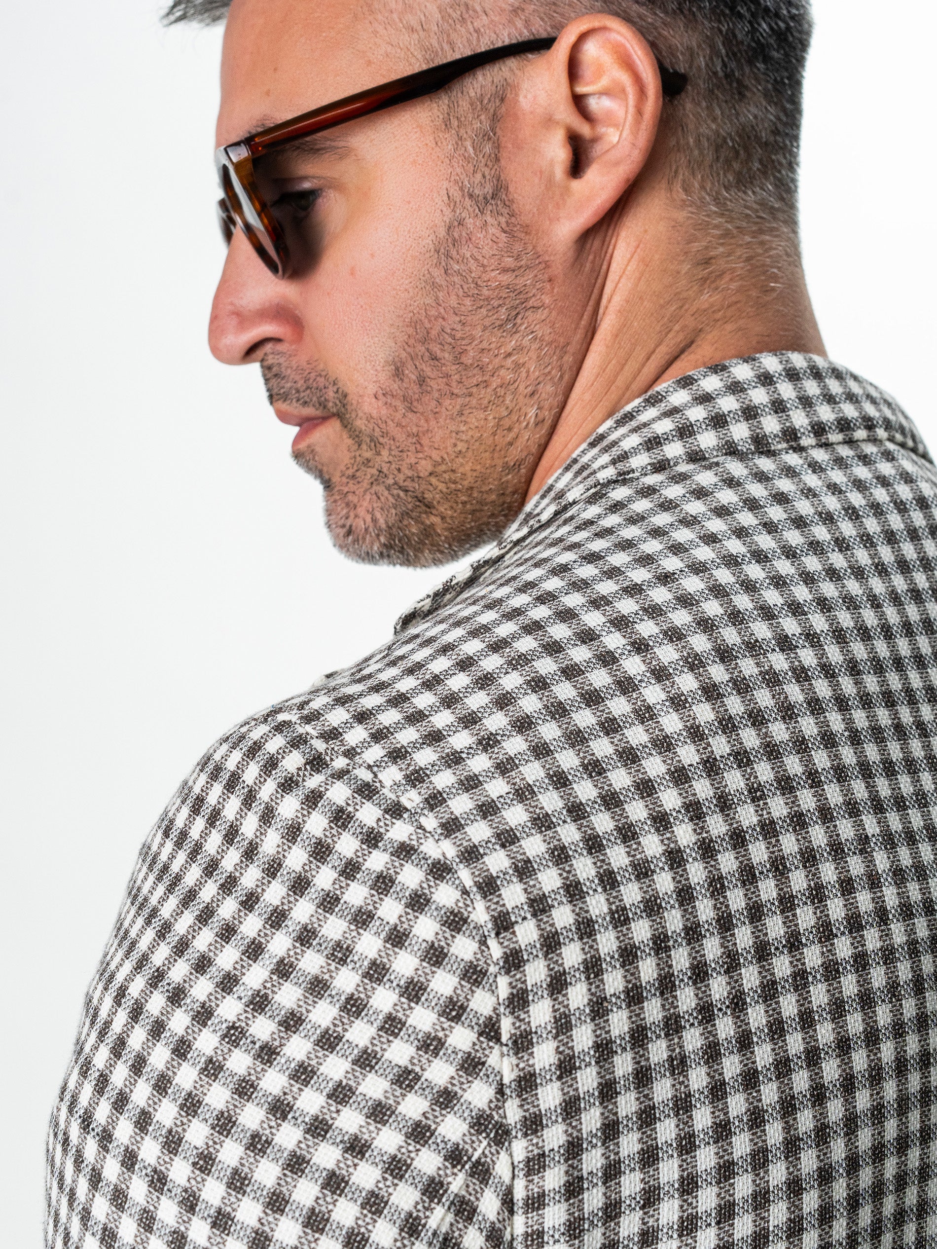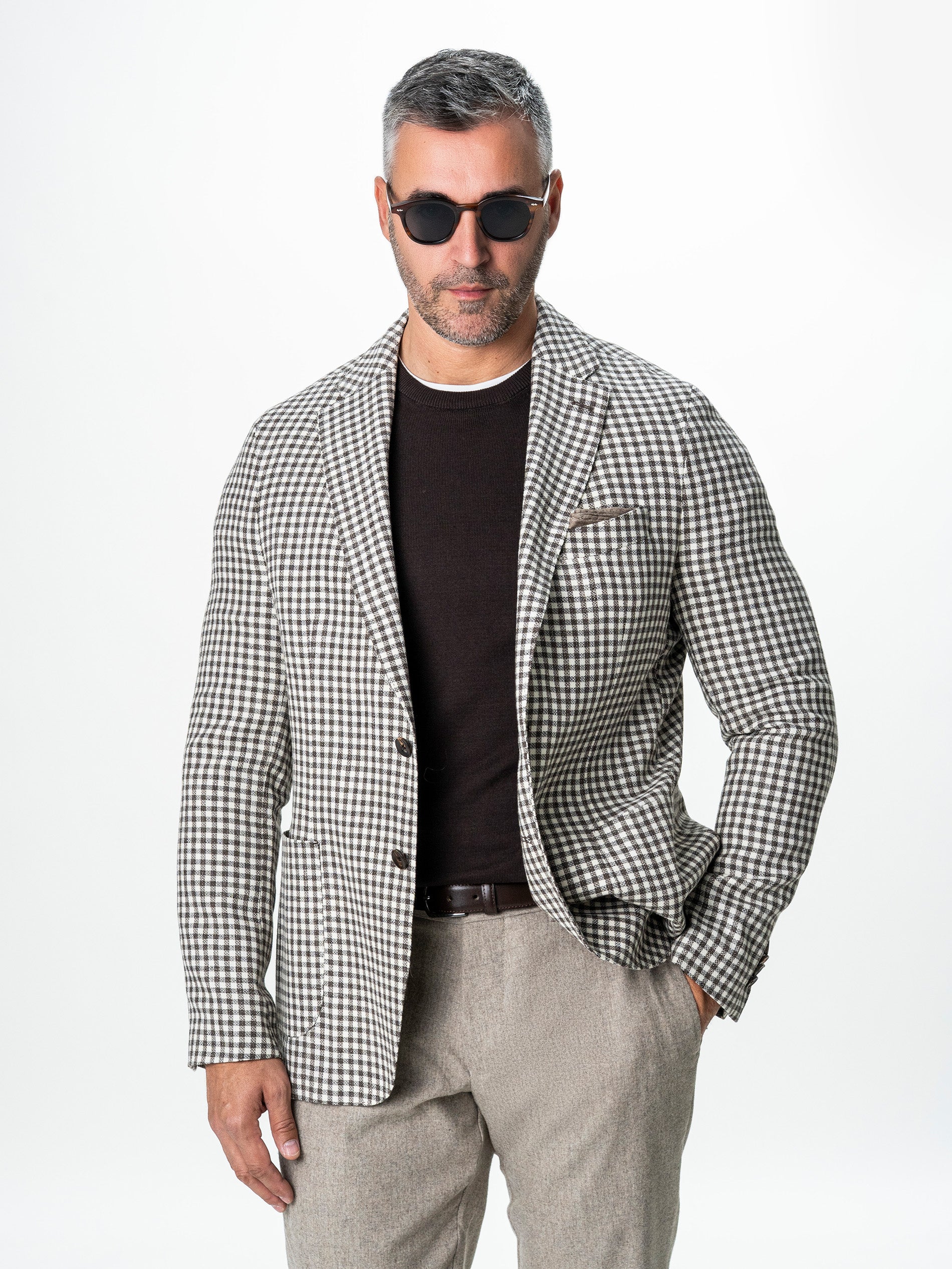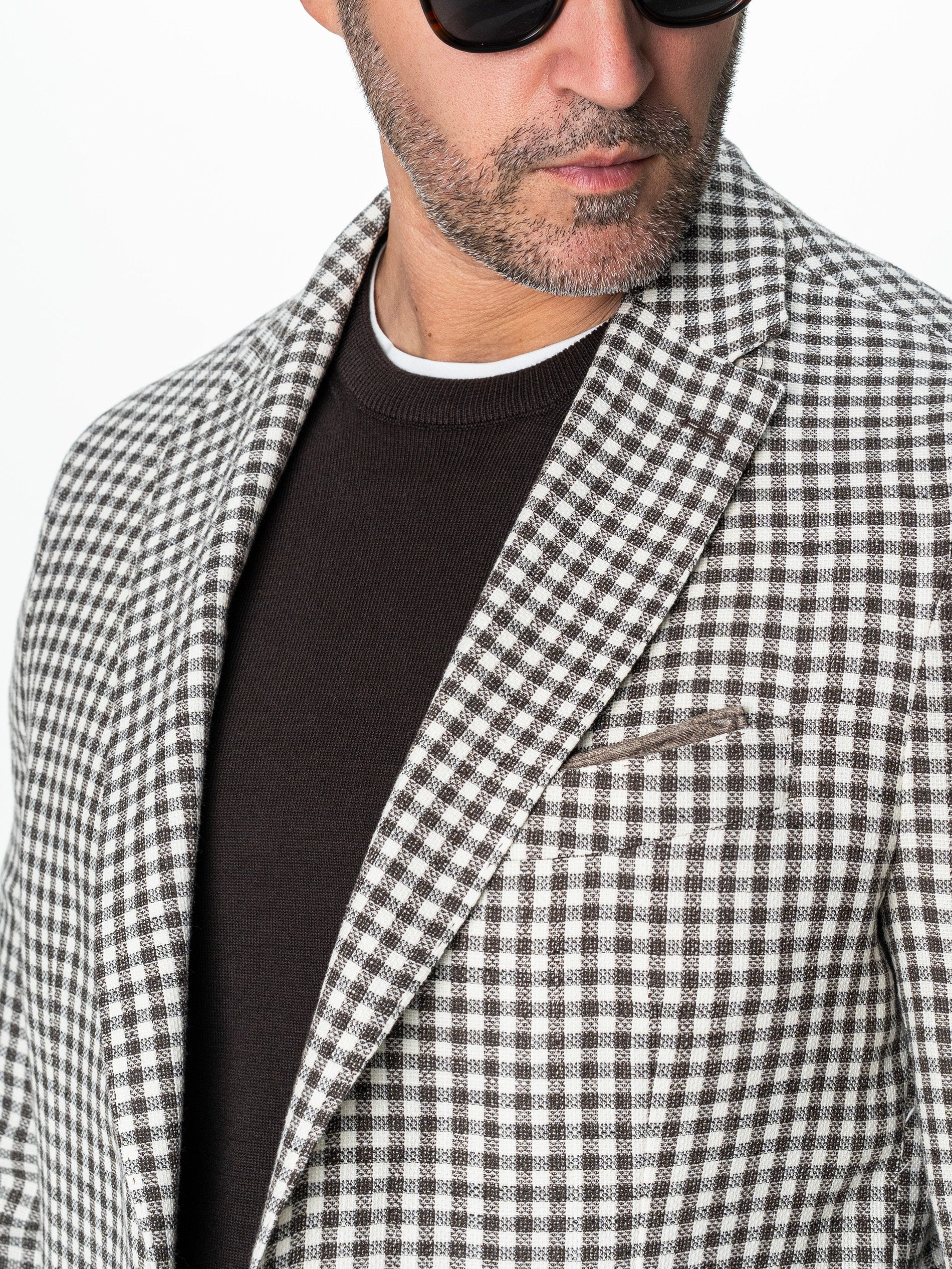 Sacou Barbati Maro în Carouri Bman0025 reprezintă o alegere rafinată pentru sezonul de vară. Confectionat dintr-o tesatura de înaltă calitate Made in Italy, amestec de 60% In Natural cu 40% lână Super110 de la Drago Lanificio In Biella, acest sacou oferă confort și eleganță. Necaptusit pentru a fi potrivit pentru zilele călduroase de vară, are un rever crestat de 8.5 cm și buzunare aplicate pentru un aspect clasic și rafinat. Croiala comfort fit cu două slituri la spate asigură o libertate de mișcare optimă și un aspect impecabil. Nasturii din os, ton în ton, completează aspectul premium al acestui sacou, care este perfect pentru evenimentele de zi.
