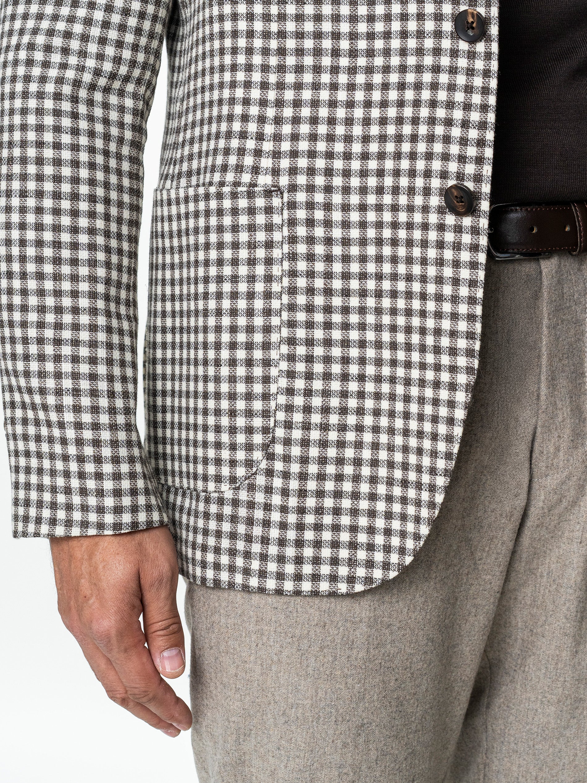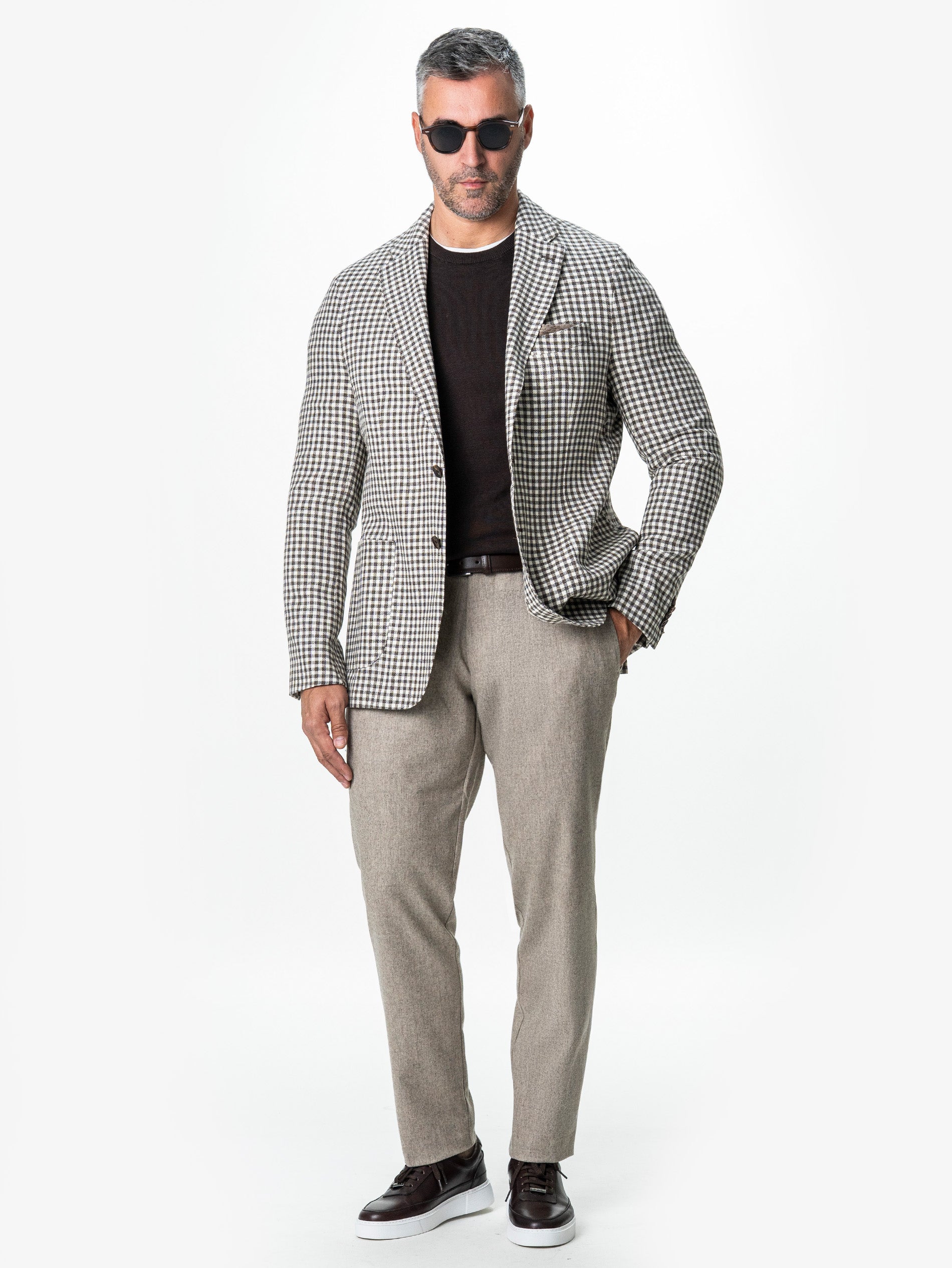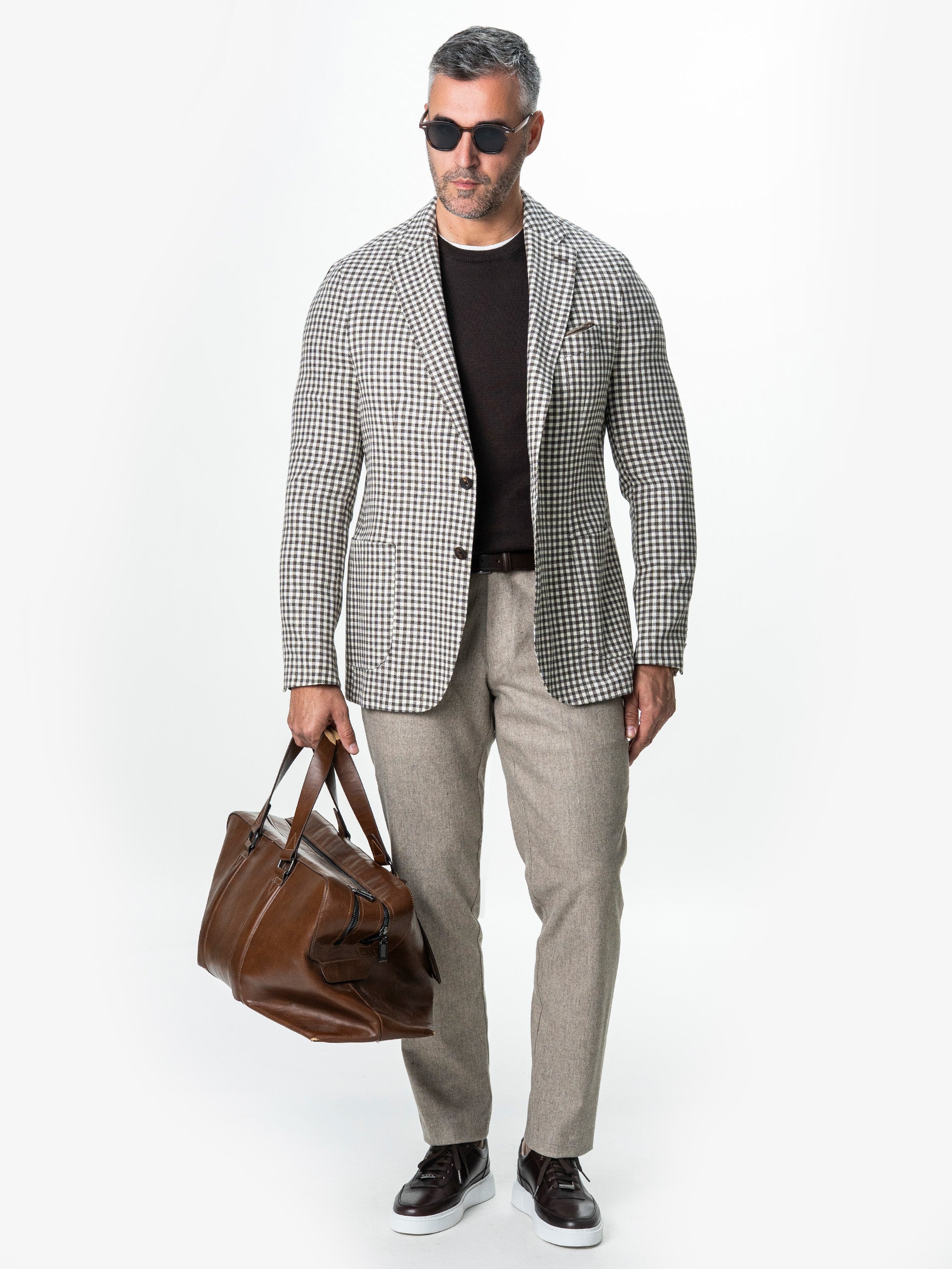 Sacou Barbati Maro în Carouri Bman0025 reprezintă o alegere rafinată pentru sezonul de vară. Confectionat dintr-o tesatura de înaltă calitate Made in Italy, amestec de 60% In Natural cu 40% lână Super110 de la Drago Lanificio In Biella, acest sacou oferă confort și eleganță. Necaptusit pentru a fi potrivit pentru zilele călduroase de vară, are un rever crestat de 8.5 cm și buzunare aplicate pentru un aspect clasic și rafinat. Croiala comfort fit cu două slituri la spate asigură o libertate de mișcare optimă și un aspect impecabil. Nasturii din os, ton în ton, completează aspectul premium al acestui sacou, care este perfect pentru evenimentele de zi.
