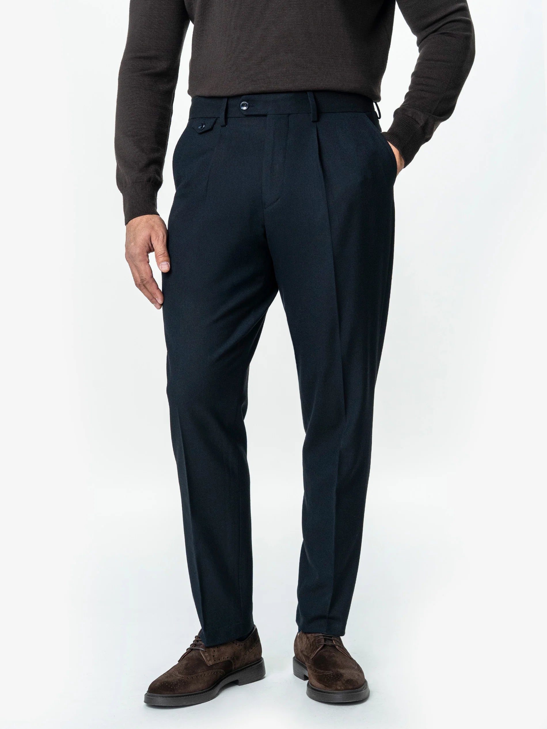3. Pantalonii Eleganti Barbati Bleumarin Din Lana Pentru Toamna BMan0103 cu o compozitie echilibrata pentru confort si structura sunt conceputi pentru tinute smart casual sau business relaxat.