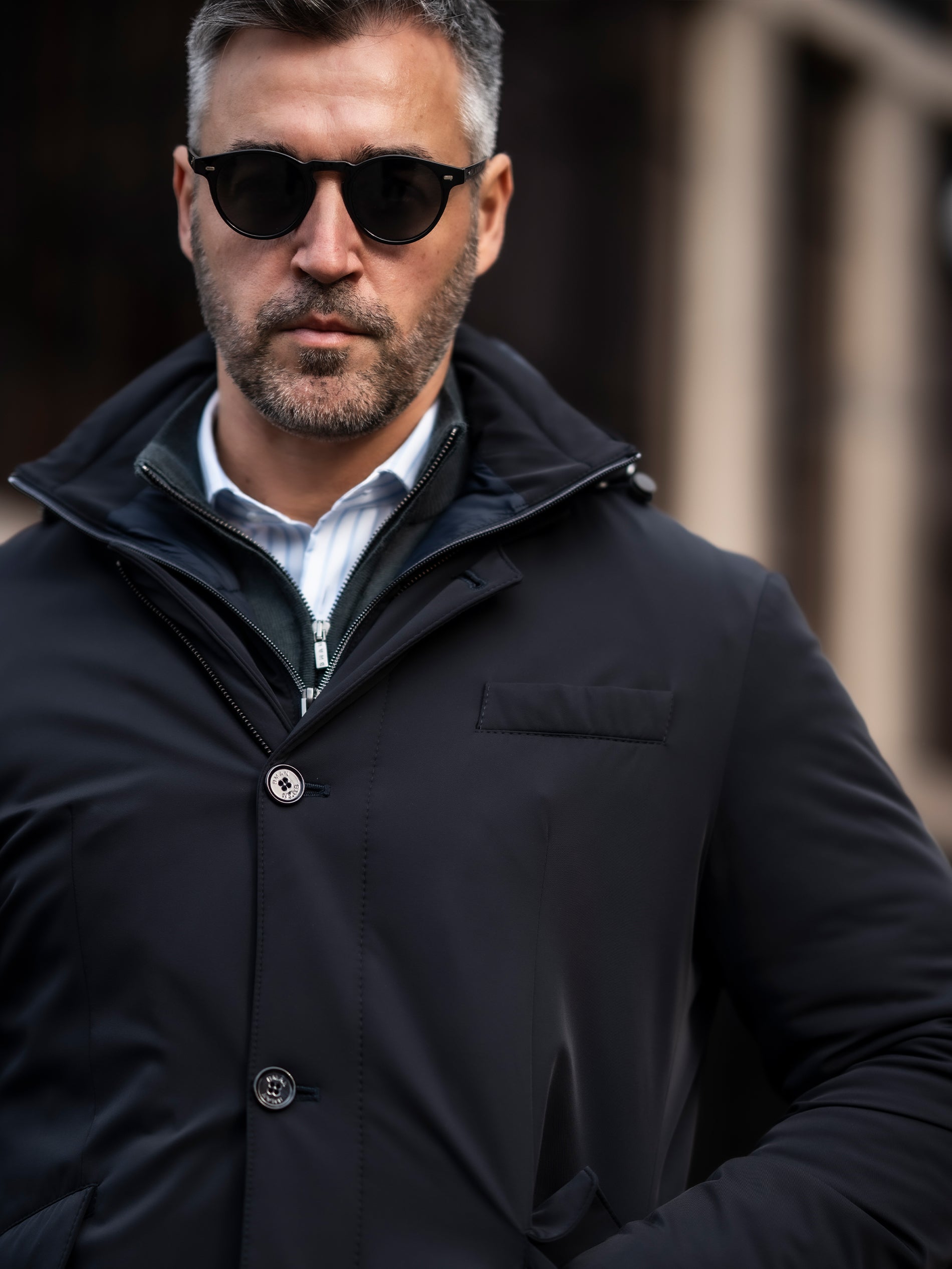 1. Geaca Barbati Tip Parka Bleumarin Cu Gluga BMan0200 reprezinta sinteza perfecta intre rafinament si utilitate. Realizata dintr-un material tehnic cu finisaj mat, geaca combina eleganta discreta cu performanta moderna.