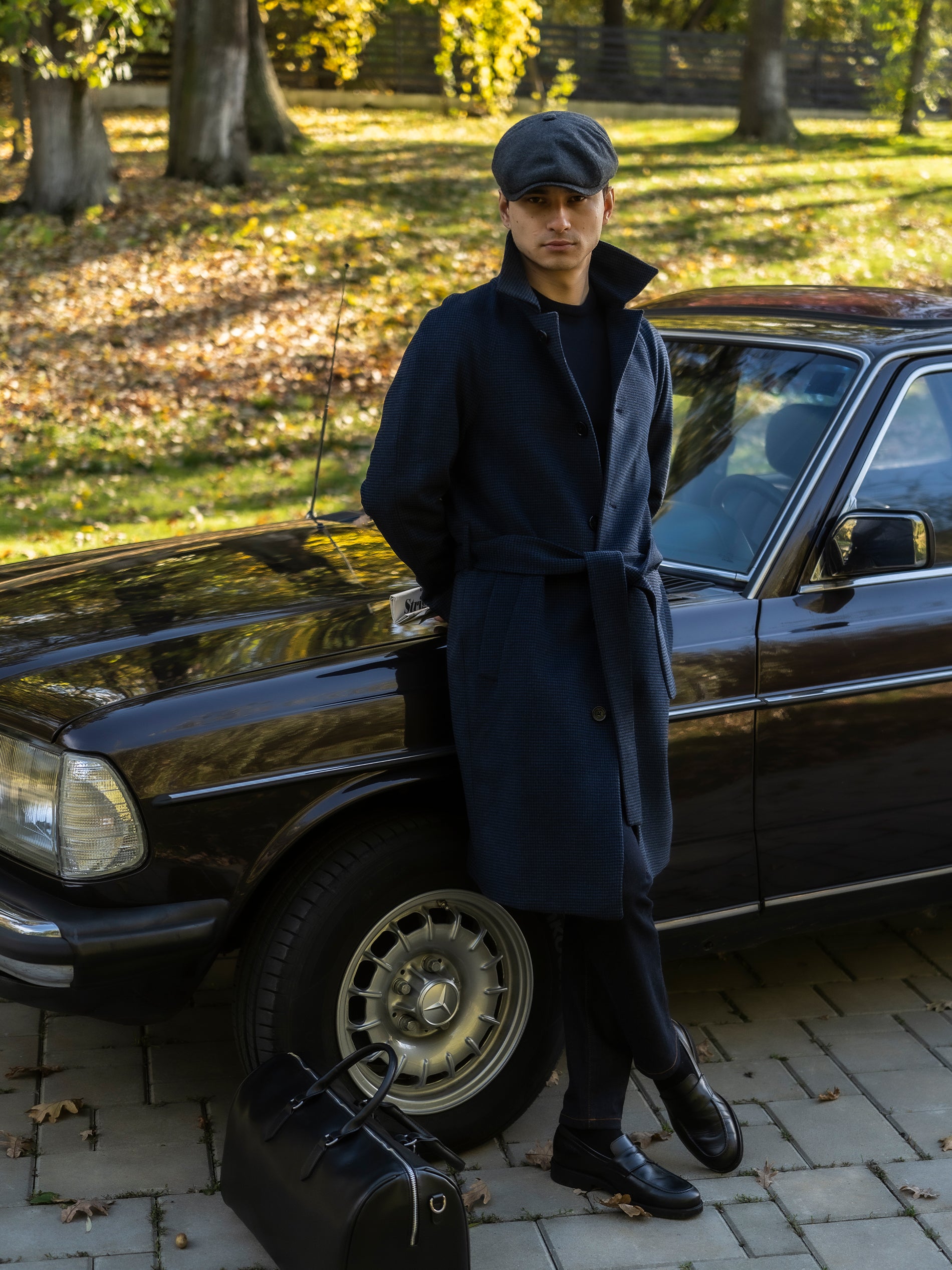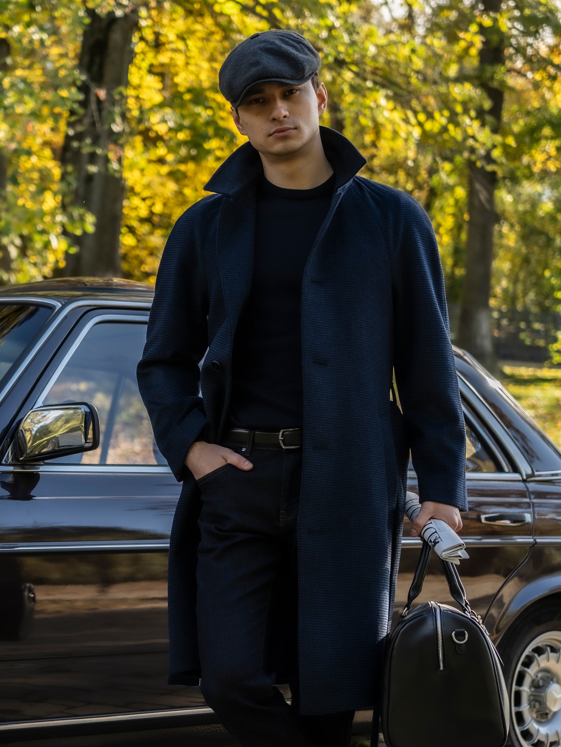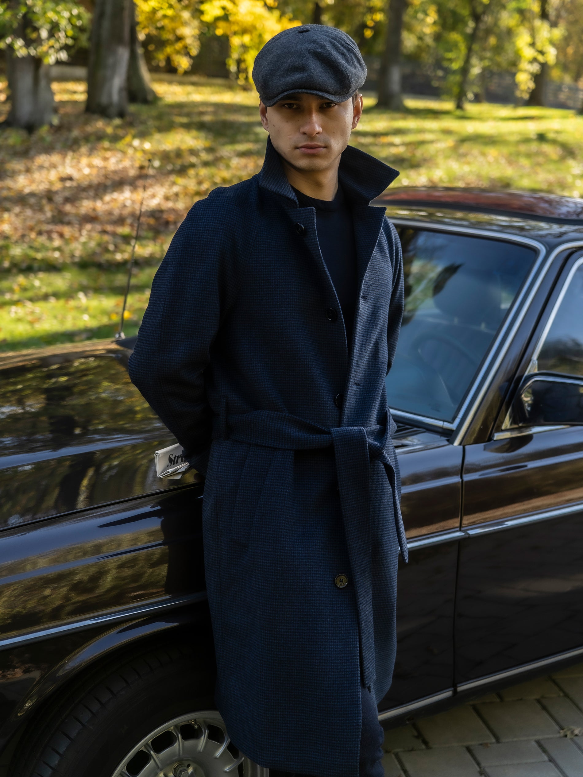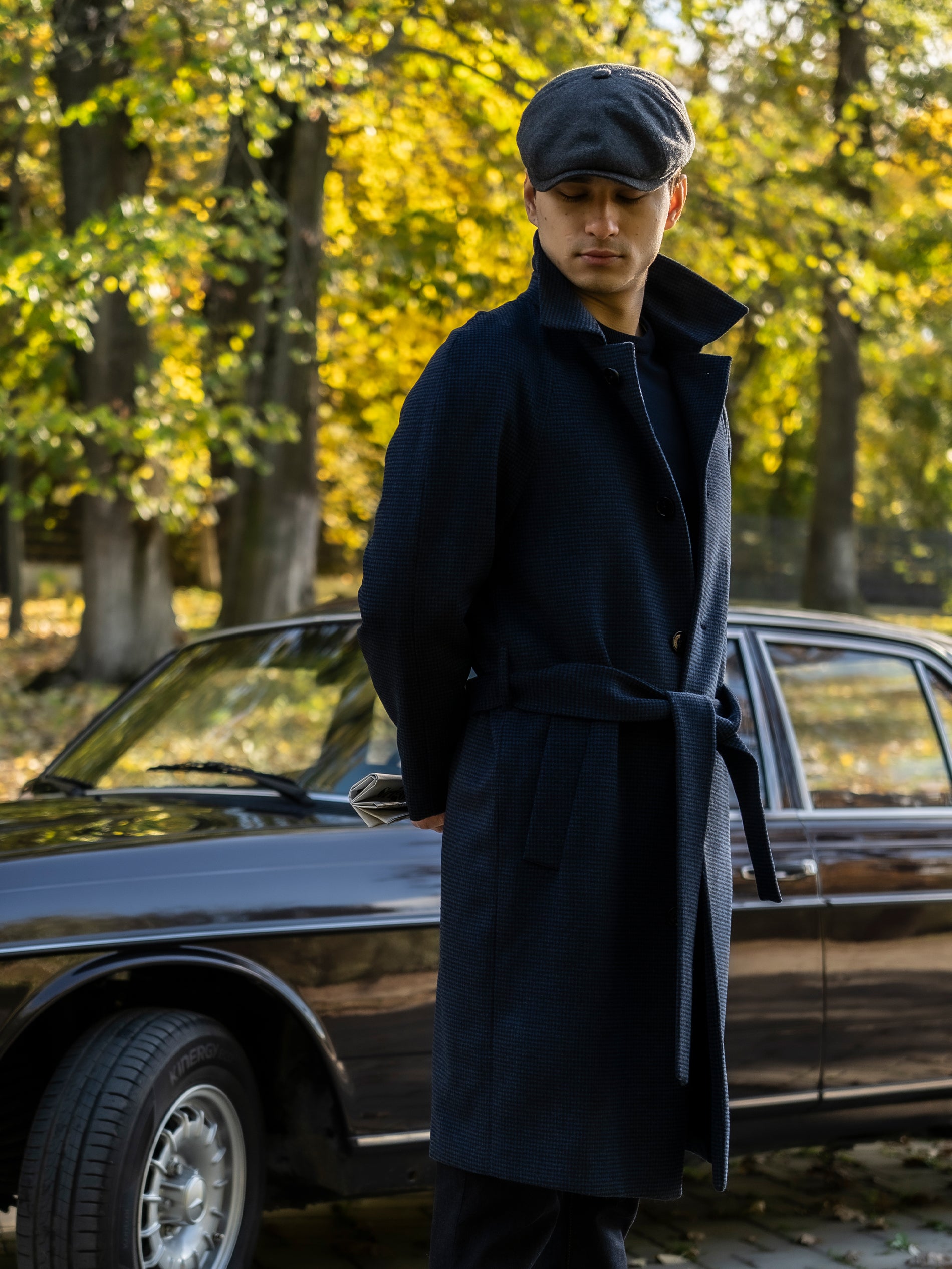 1. Palton Barbati Iarna Bleumarin 100% Lana Houndstooth BMan0005 realizat intr-un rafinat model houndstooth in nuante de bleumarin si negru. Croiala dreapta, completata de umeri raglan fara cusaturi, ofera libertate naturala de miscare si o linie fluida, specifica paltoanelor de inspiratie sartoriala italiana.