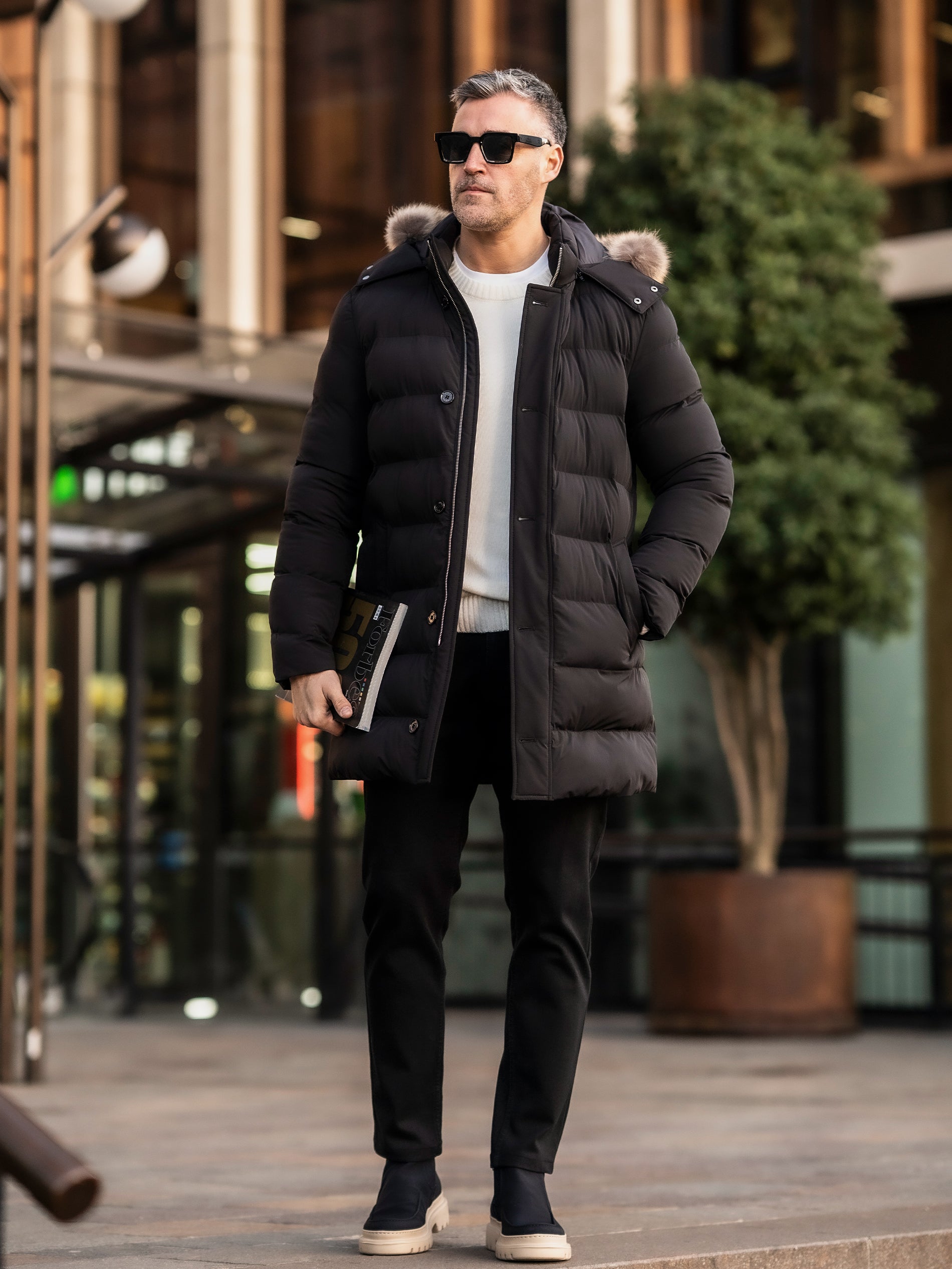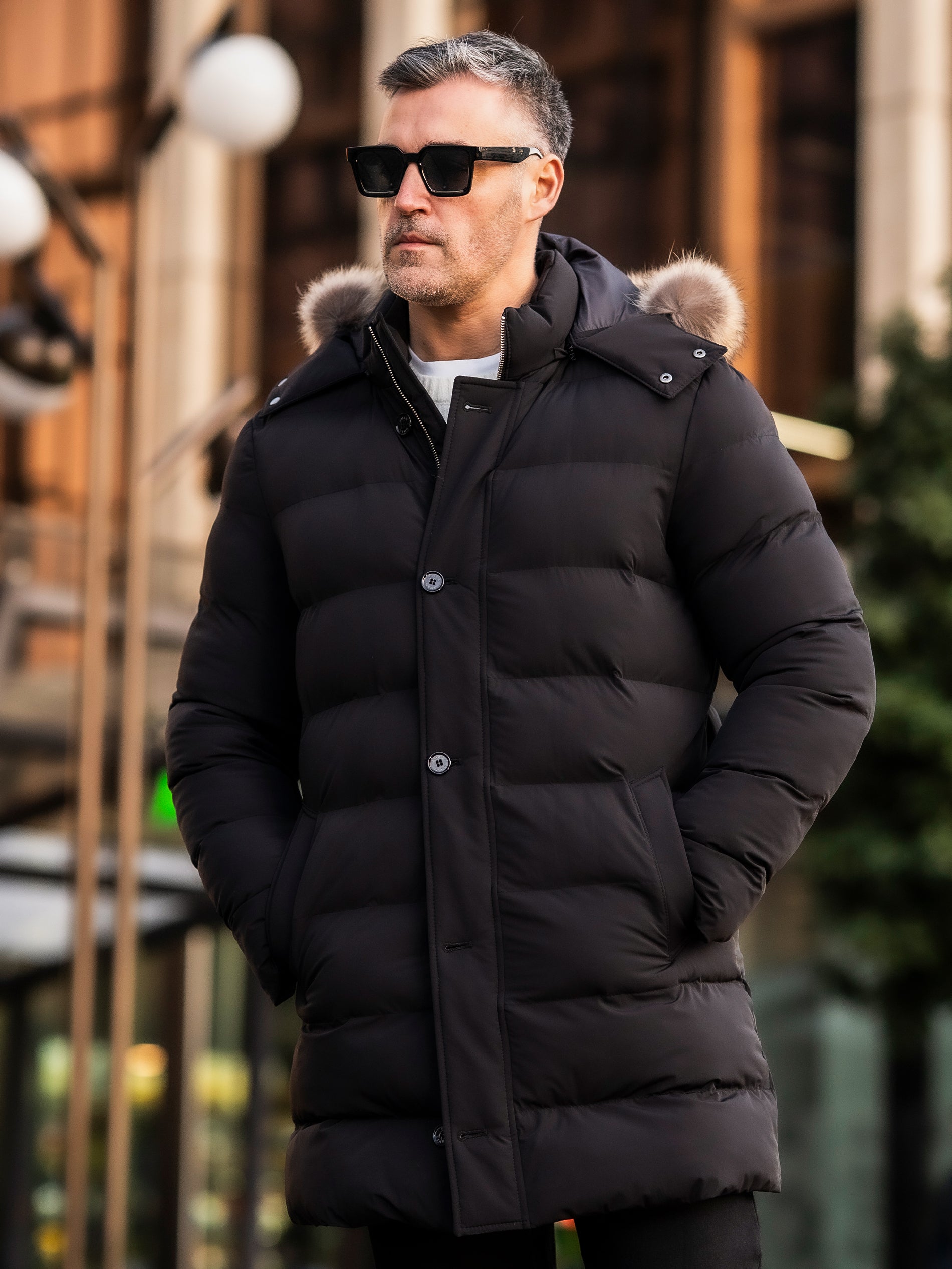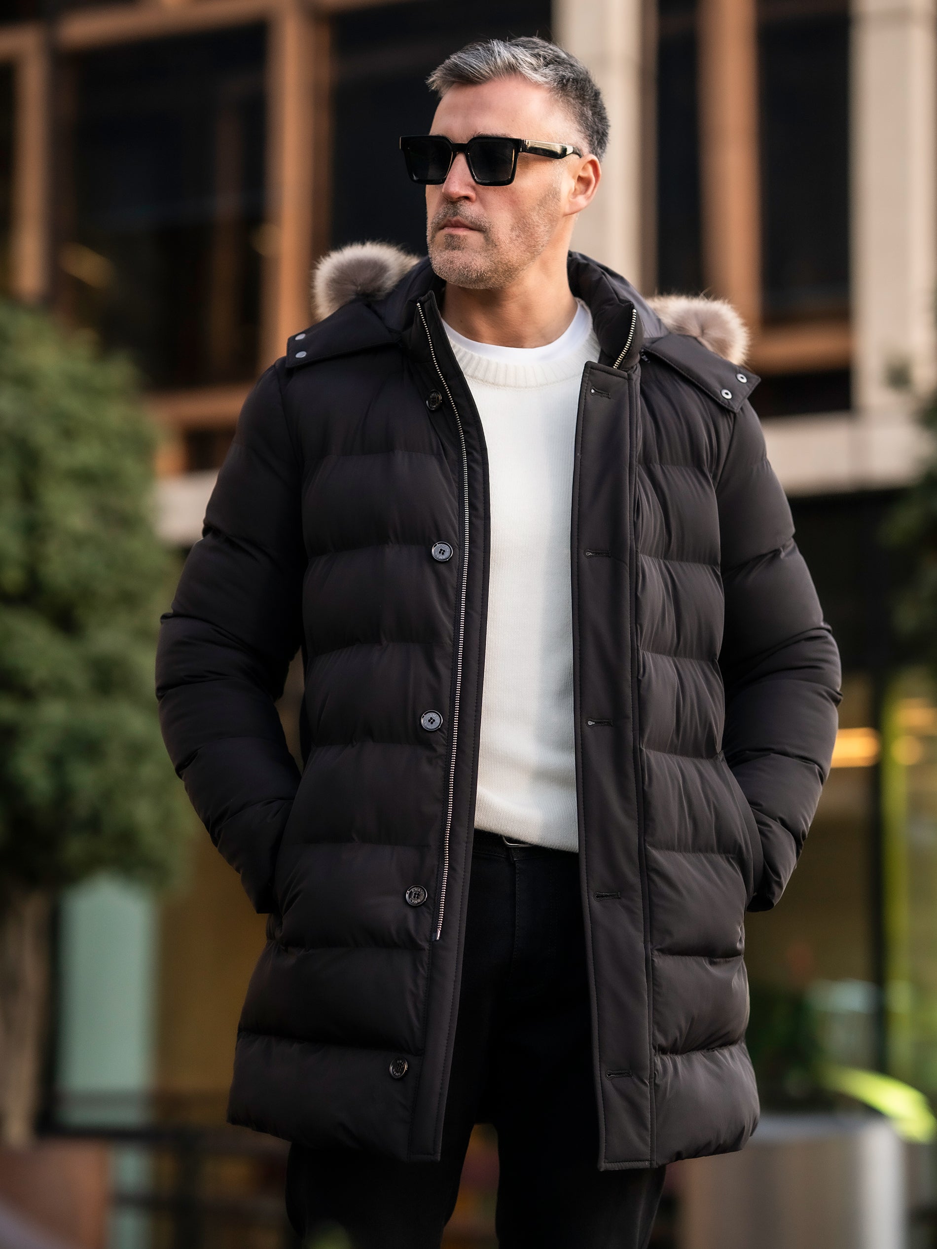 1. Geaca Barbati Neagra de Iarna cu Blana Naturala si Softshell BMan0199 este conceputa pentru zile reci, cu un design care imbina protectia termica serioasa cu o estetica moderna si curata.
