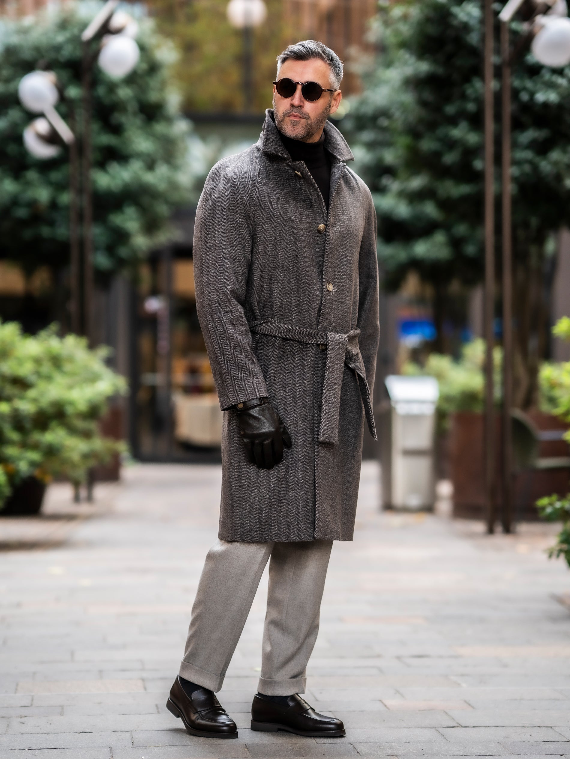1. Palton Barbati Iarna Cafeniu 100% Lana Herringbone BMan0005. Eleganta functionala defineste acest palton din lana 100%, realizat intr-un rafinat model herringbone in nuante de gri si negru. Croiala dreapta, completata de umeri raglan fara cusaturi, ofera libertate naturala de miscare si o linie fluida, specifica paltoanelor de inspiratie sartoriala italiana.