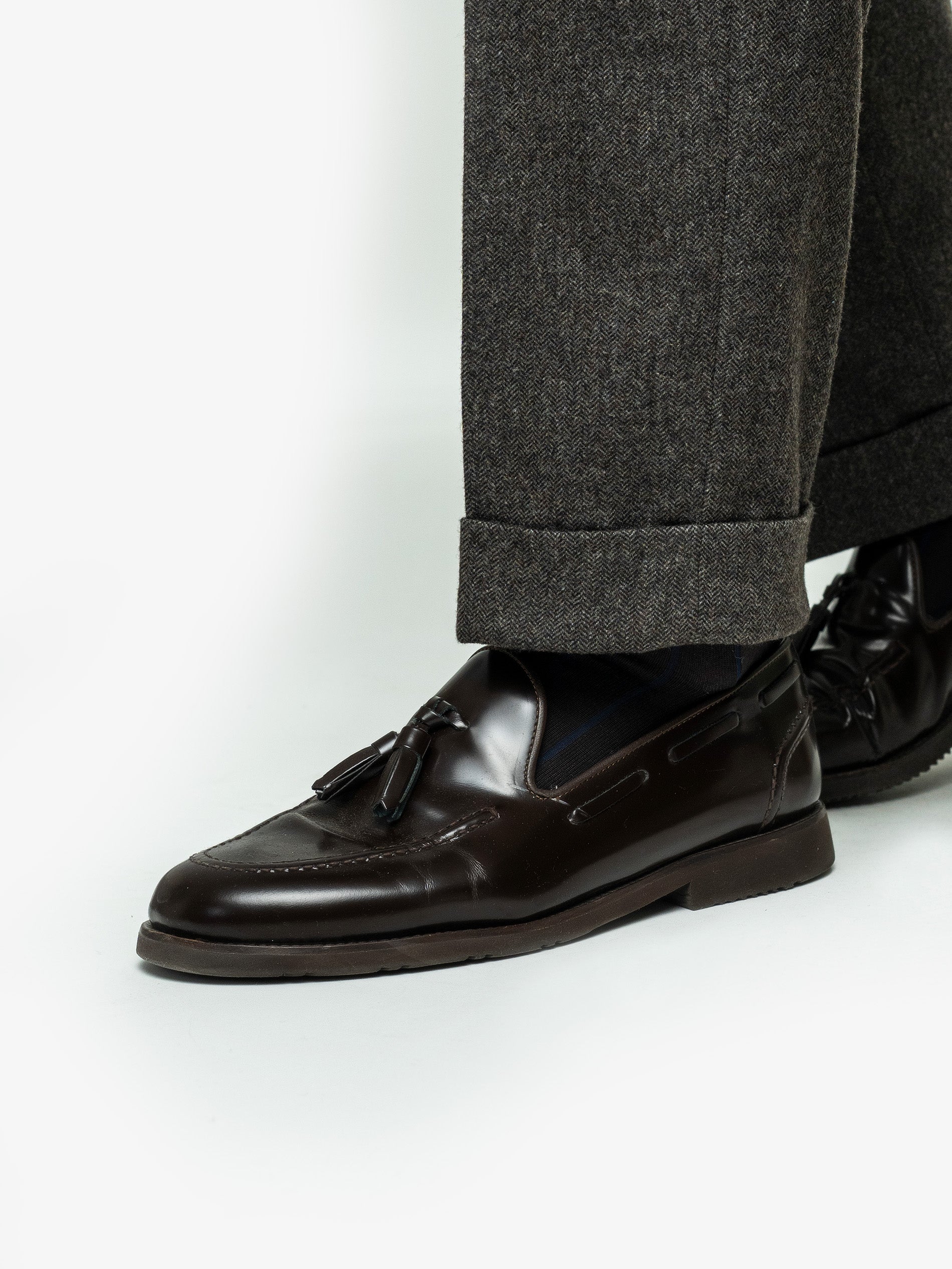 3. Pantaloni Barbati Cafenii British Model Gurkha Din Lana Herringbone BMan725 din lana herringbone sunt o declaratie de stil pentru barbatii care apreciaza croitoria autentica. Talia inalta si pensele adanci ofera volum controlat si o linie impecabila, iar lipsa gaicilor de curea accentueaza estetica sartoriala britanica veritabila.