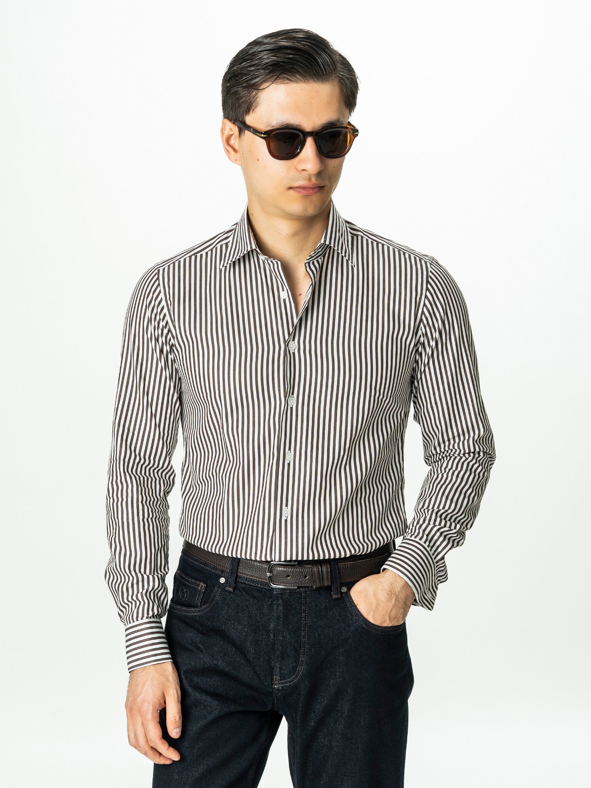 2. Camasa Barbati Alba cu Dungi Cafenii Smart Casual BMan0002 este confectionata dintr-o tesatura de bumbac, material usor de calcat ce nu se sifoneaza in timpul purtarii. Un alt avantaj o reprezinta faptul ca-si pastrezeaza o atingere fina si o elasticitate minima pentru un confort sporit.