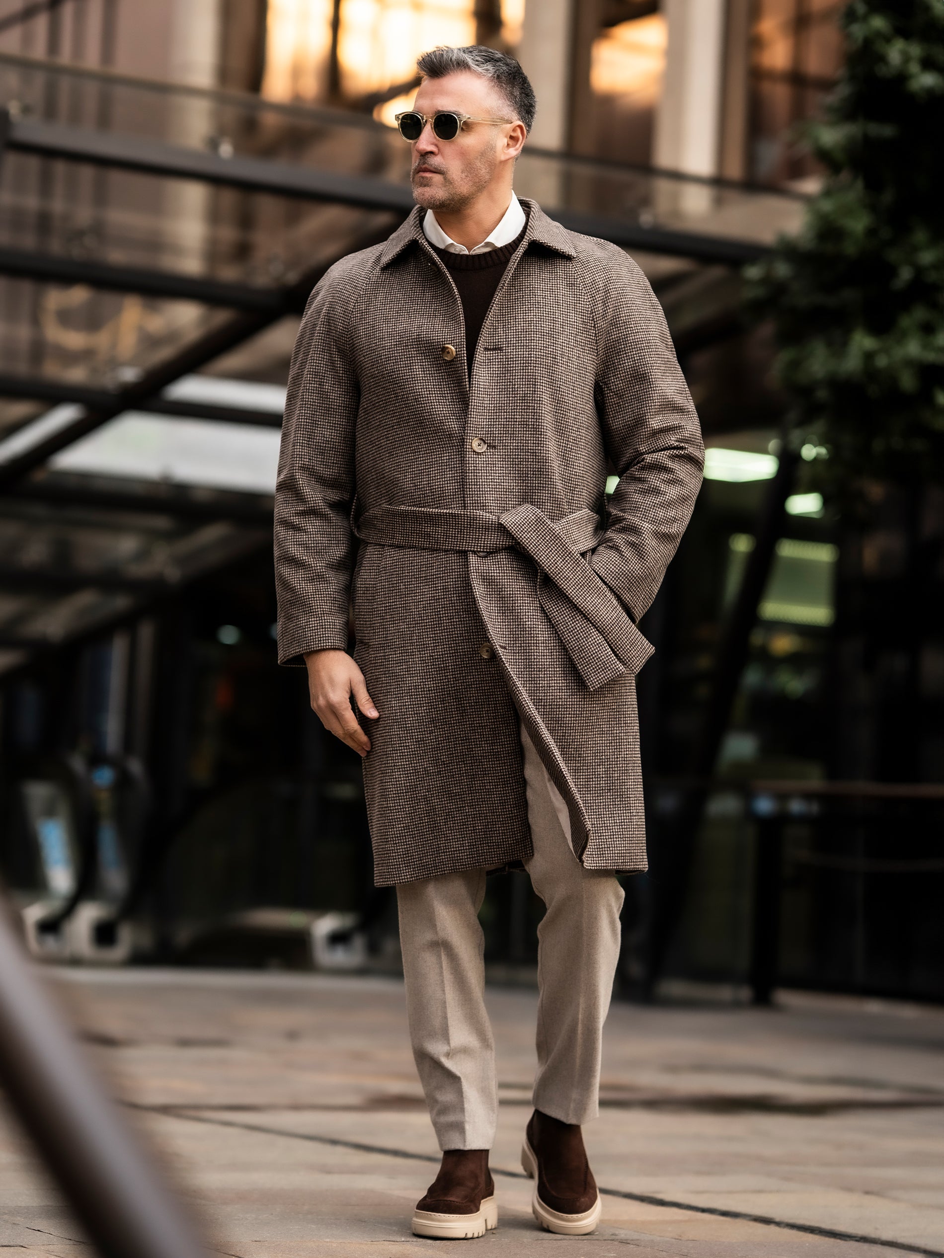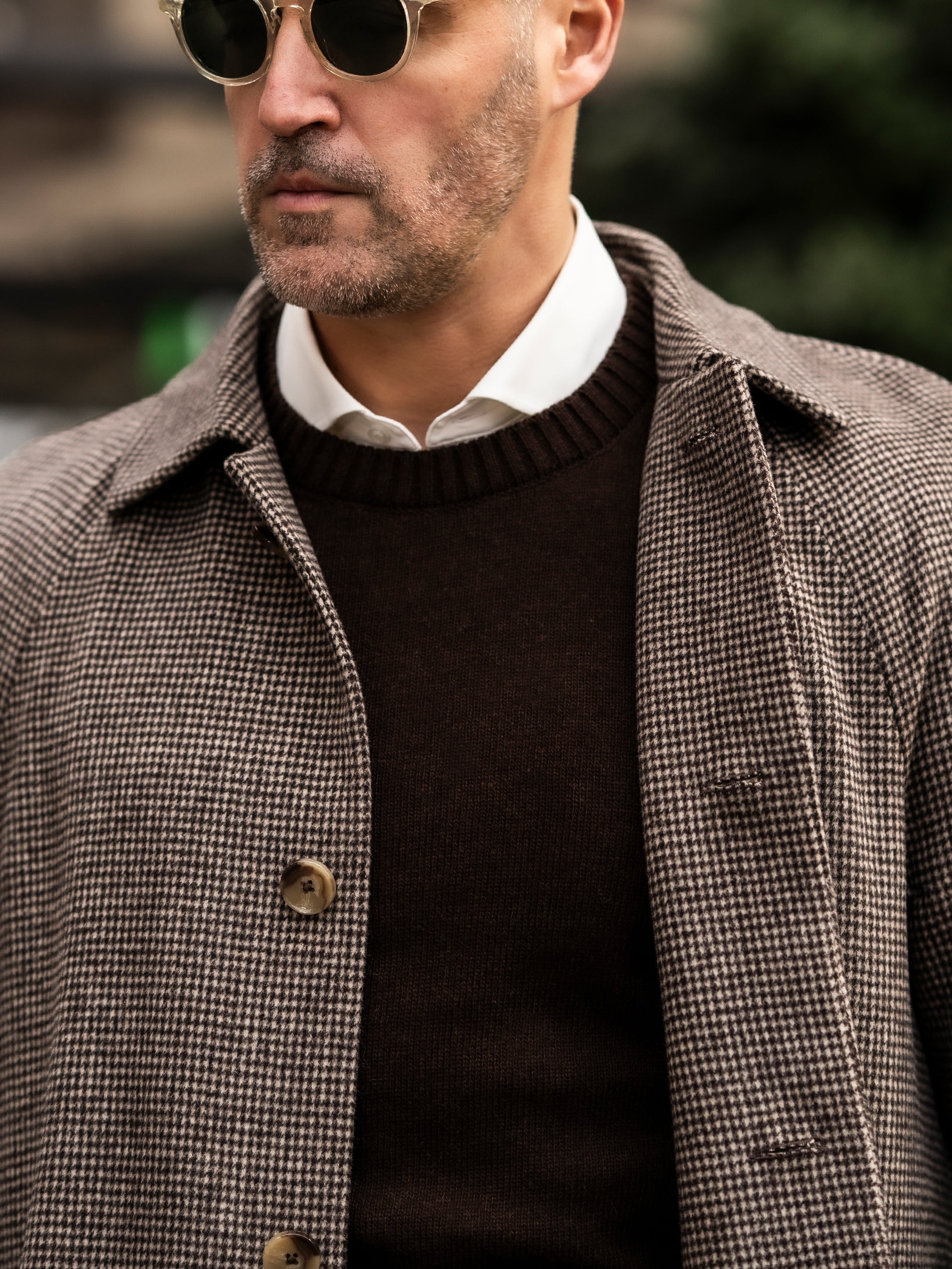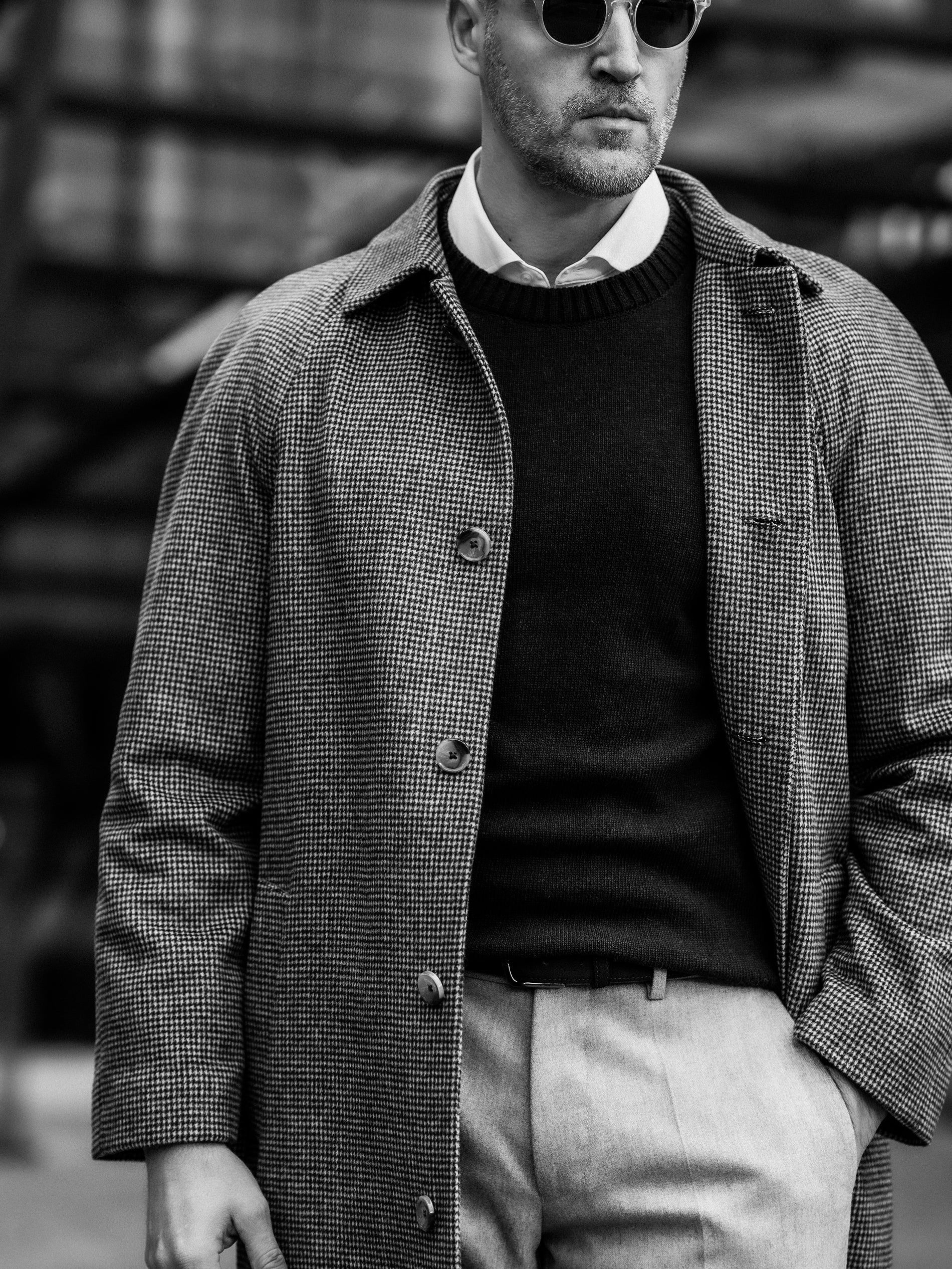 1. Palton Barbati Iarna Maro 100% Lana Houndstooth BMan0005 eleganta functionala defineste acest palton din lana 100%, realizat intr-un rafinat model houndstooth in nuante de gri si negru. Croiala dreapta, completata de umeri raglan fara cusaturi, ofera libertate naturala de miscare si o linie fluida, specifica paltoanelor de inspiratie sartoriala italiana.