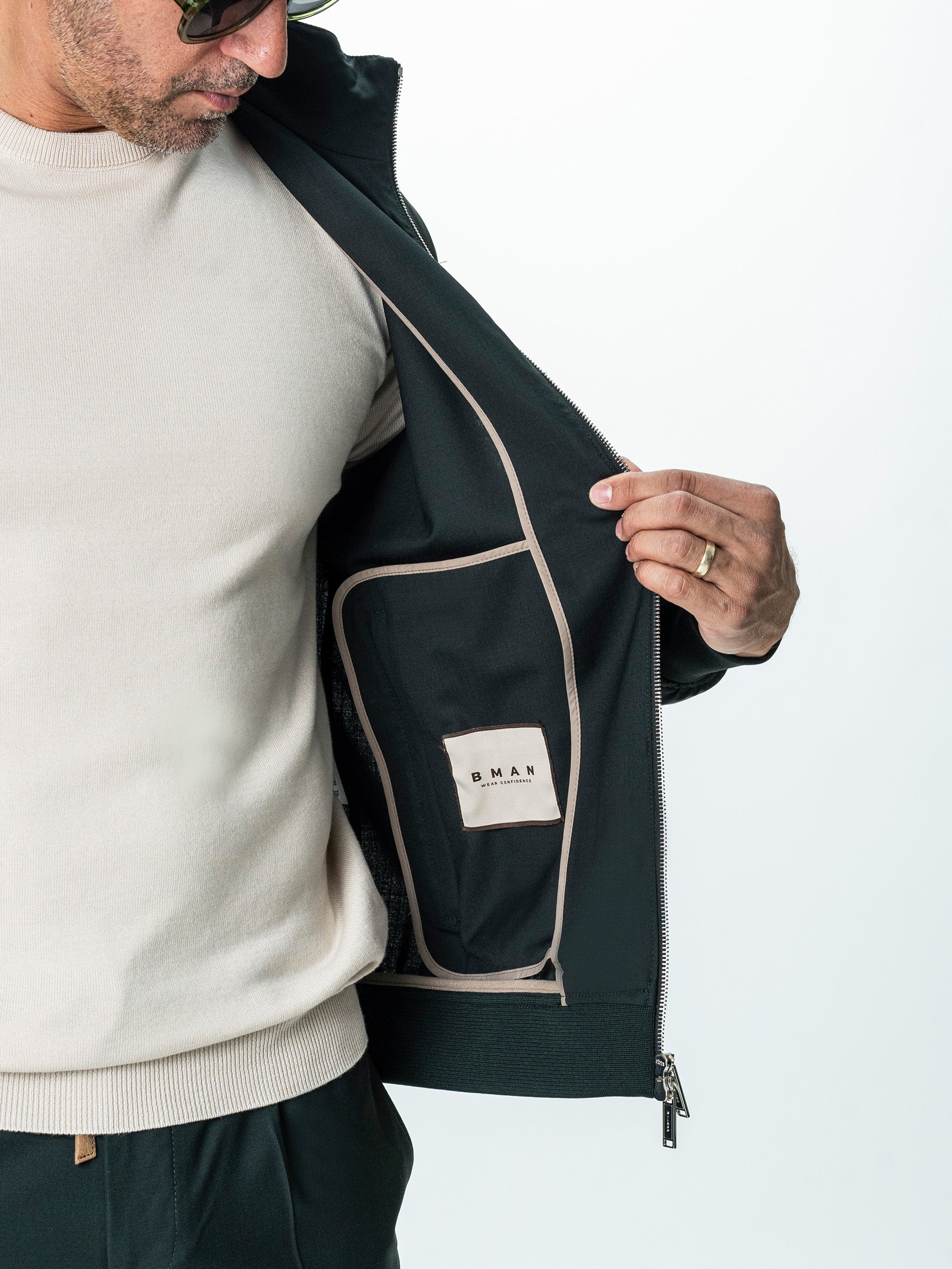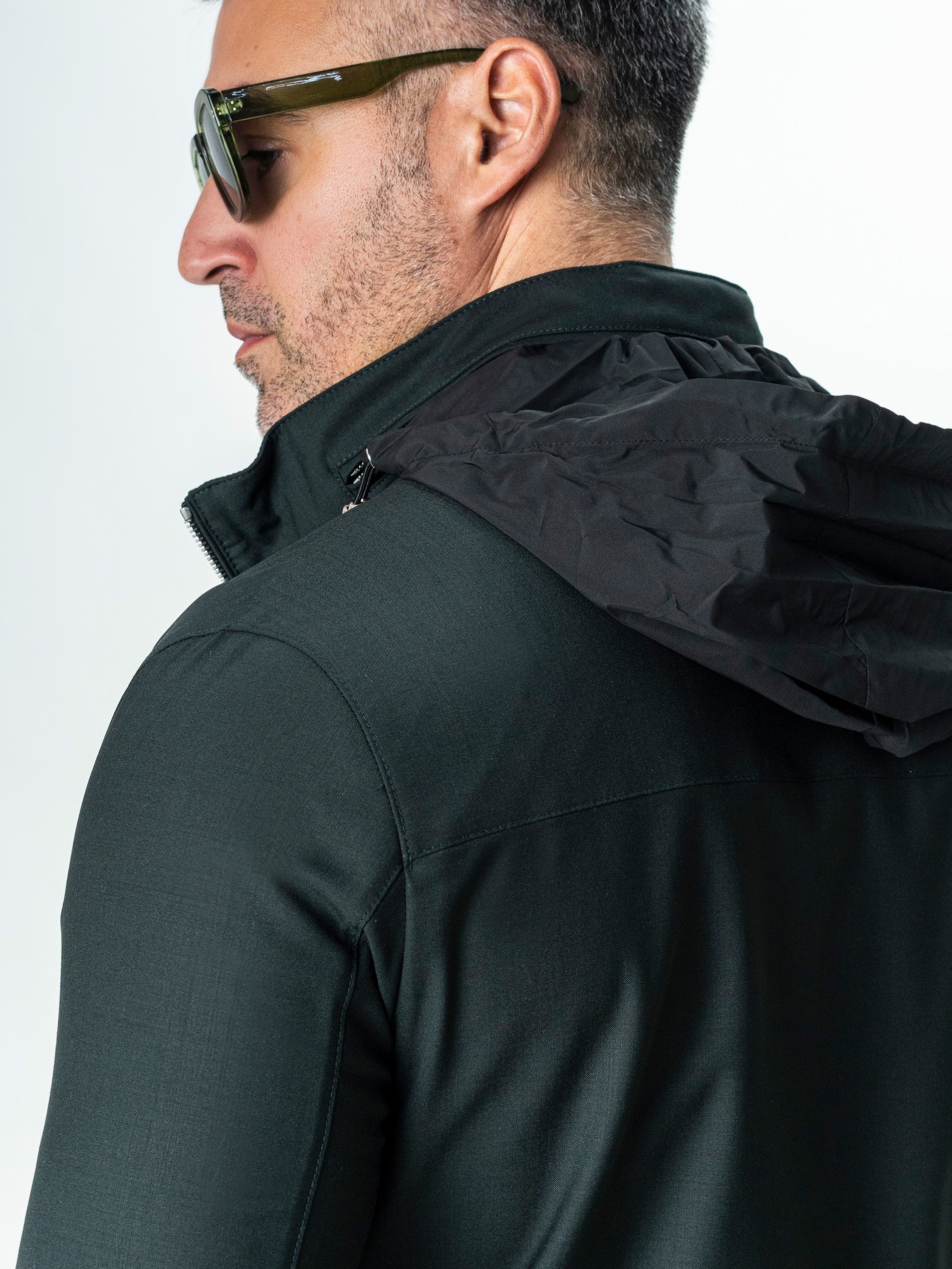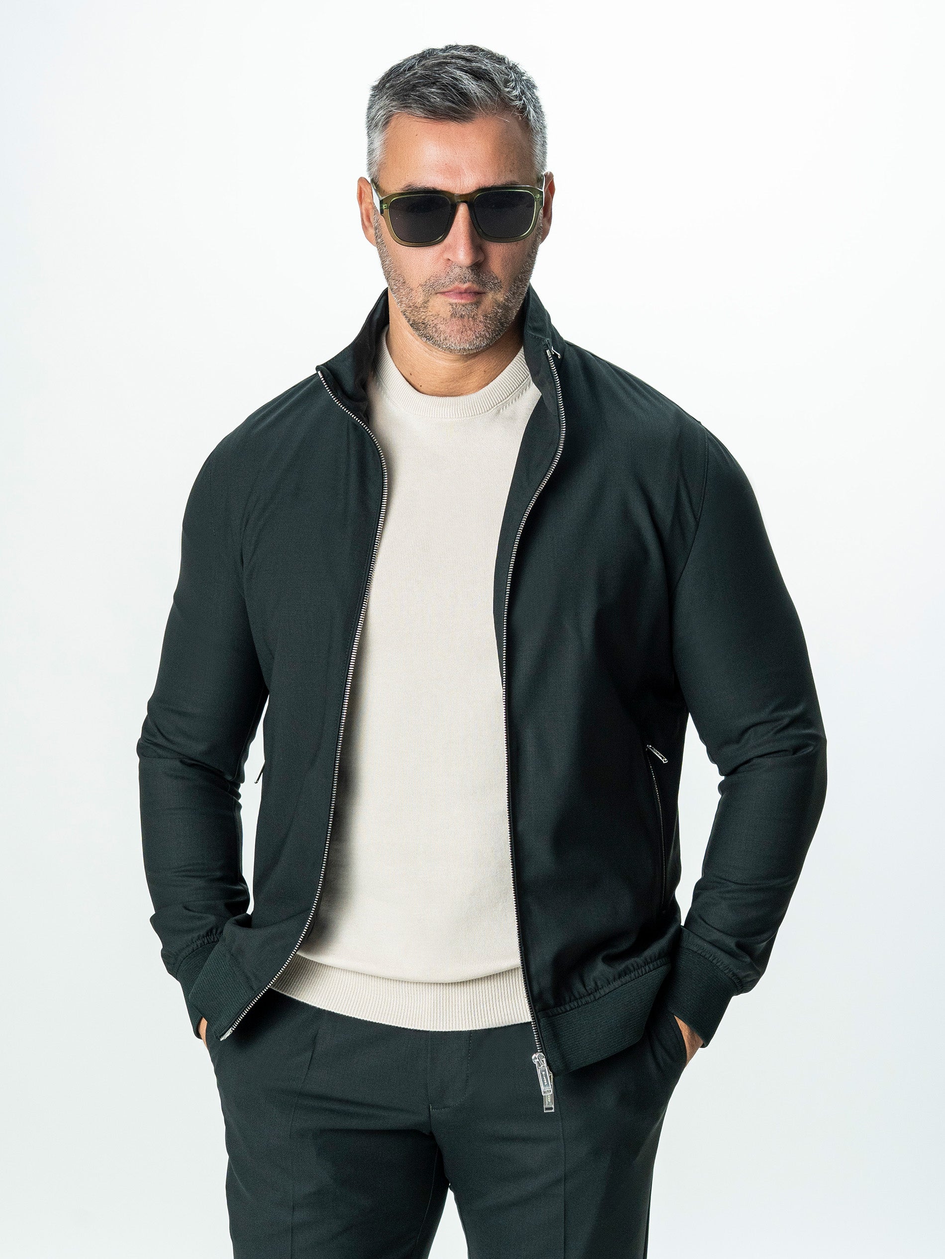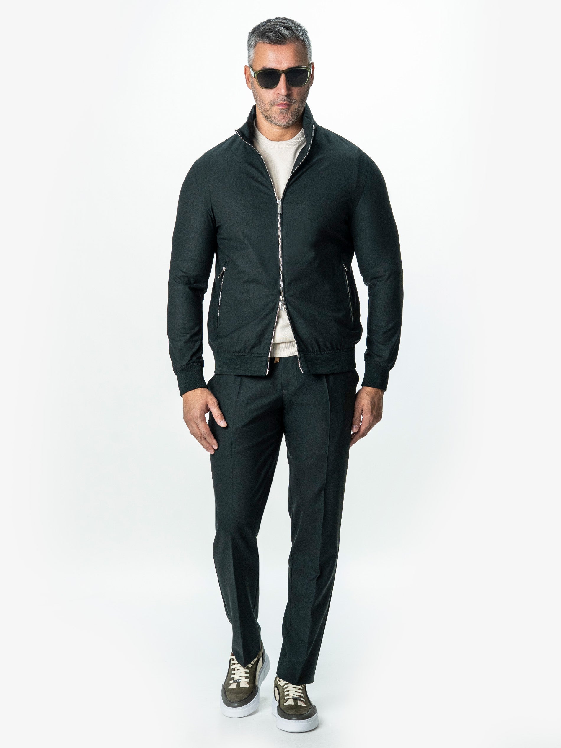Jacheta este prevazuta cu gluga ascunsa elegant in guler, un detaliu functional discret, ideal pentru zilele imprevizibile. Fermoarul dublu, mansetele elastice si croiala lejera asigura libertate de miscare si un look rafinat in acelasi timp. Pantalonii completeaza perfect ansamblul prin linia dreapta si talia confortabila, facand din acest set o alegere versatila — smart casual pentru oras sau outfit relaxat cu un aer sofisticat.