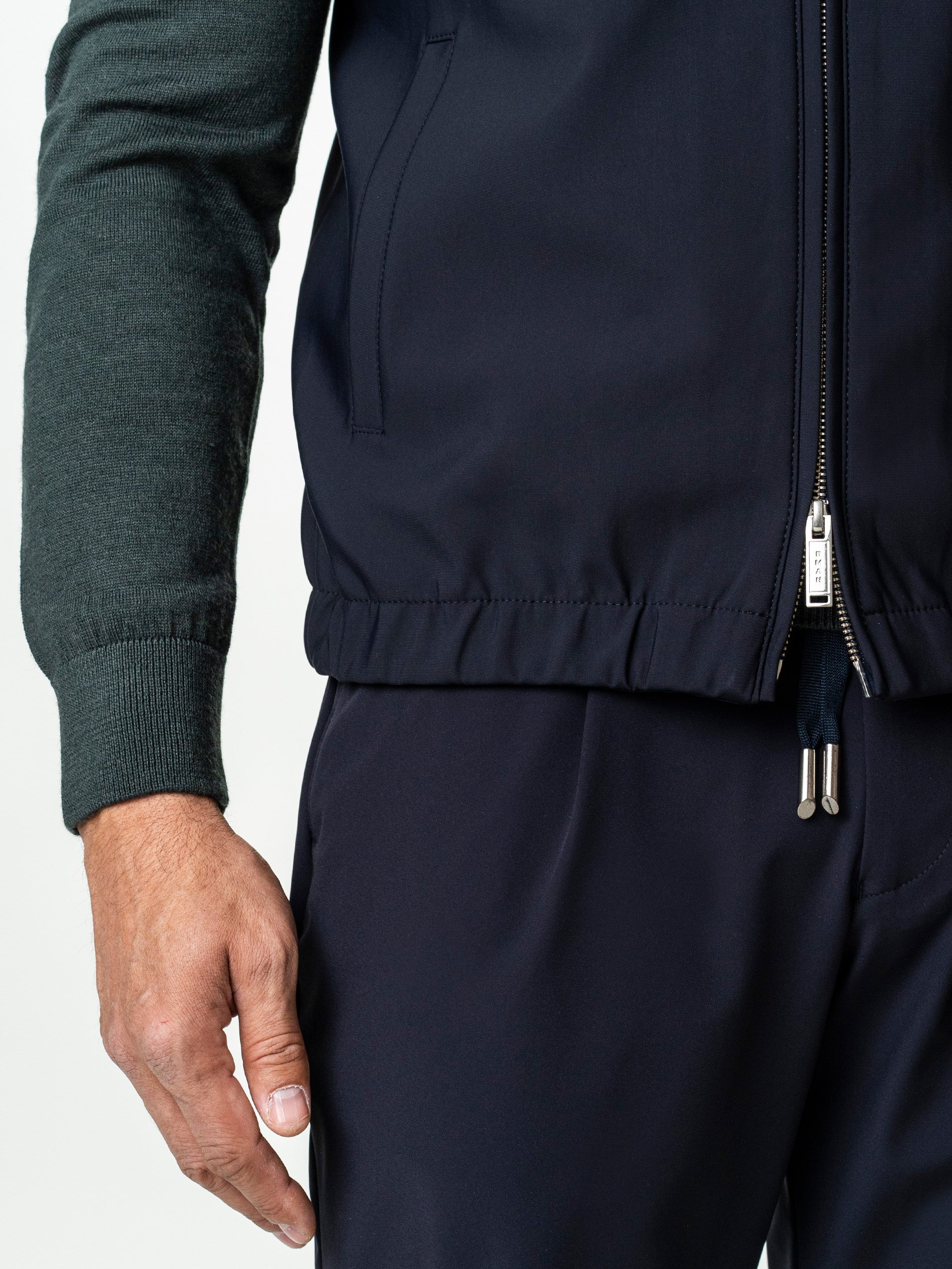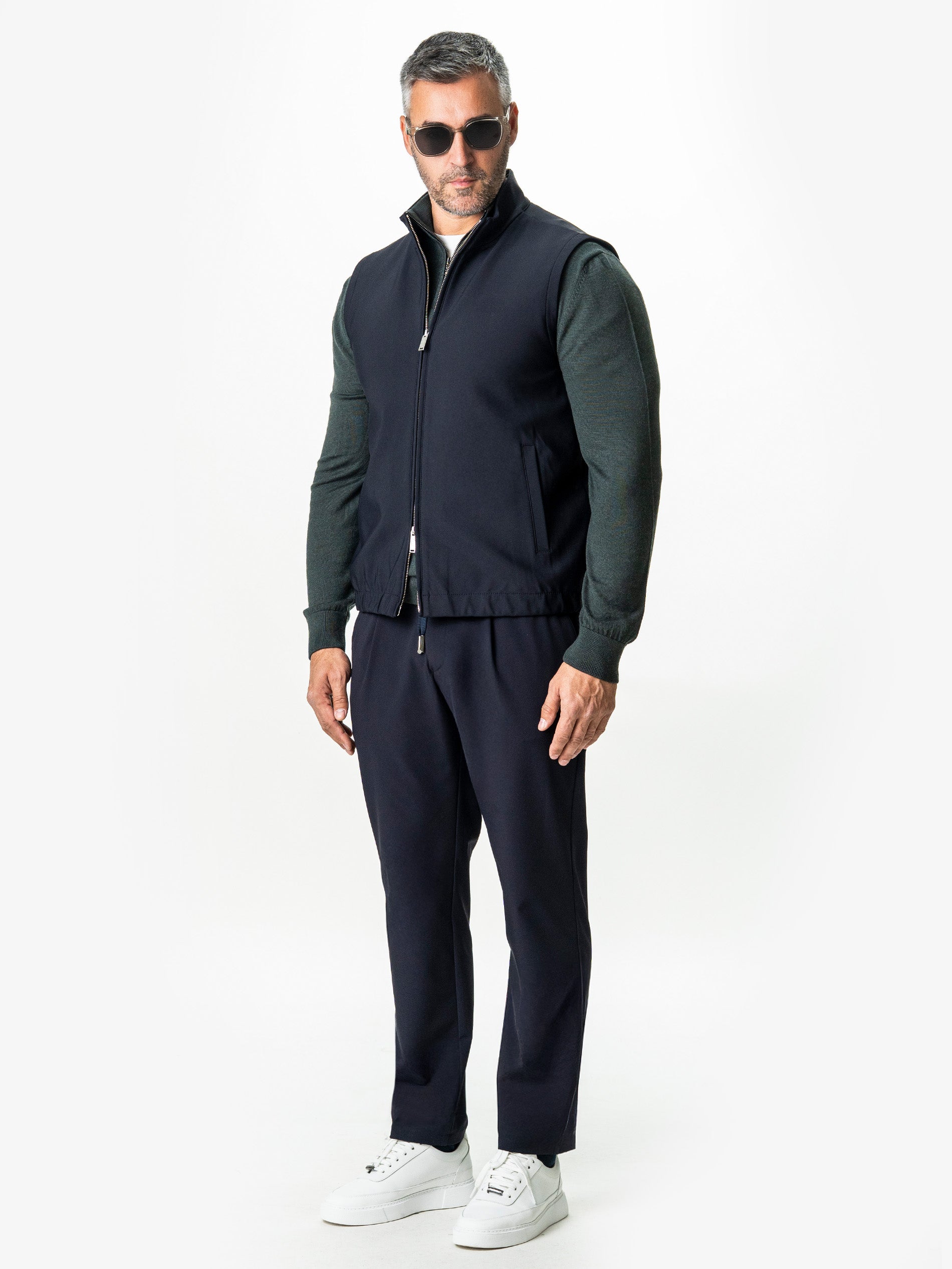 Vesta Premium Tip Jacketa Fara Maneci Bleumarin BMan0003 imbina estetica moderna cu functionalitatea premium, oferind o silueta curata si rafinata. Tesatura tehnica, cu o compozitie echilibrata de poliamida, poliester si elastan, asigura elasticitate, rezistenta si confort pe tot parcursul zilei. Designul minimalist, completat de inchiderea cu fermoar metalic si terminatia elastica, transforma piesa intr-o alegere ideala pentru un look contemporan, versatil si sofisticat.